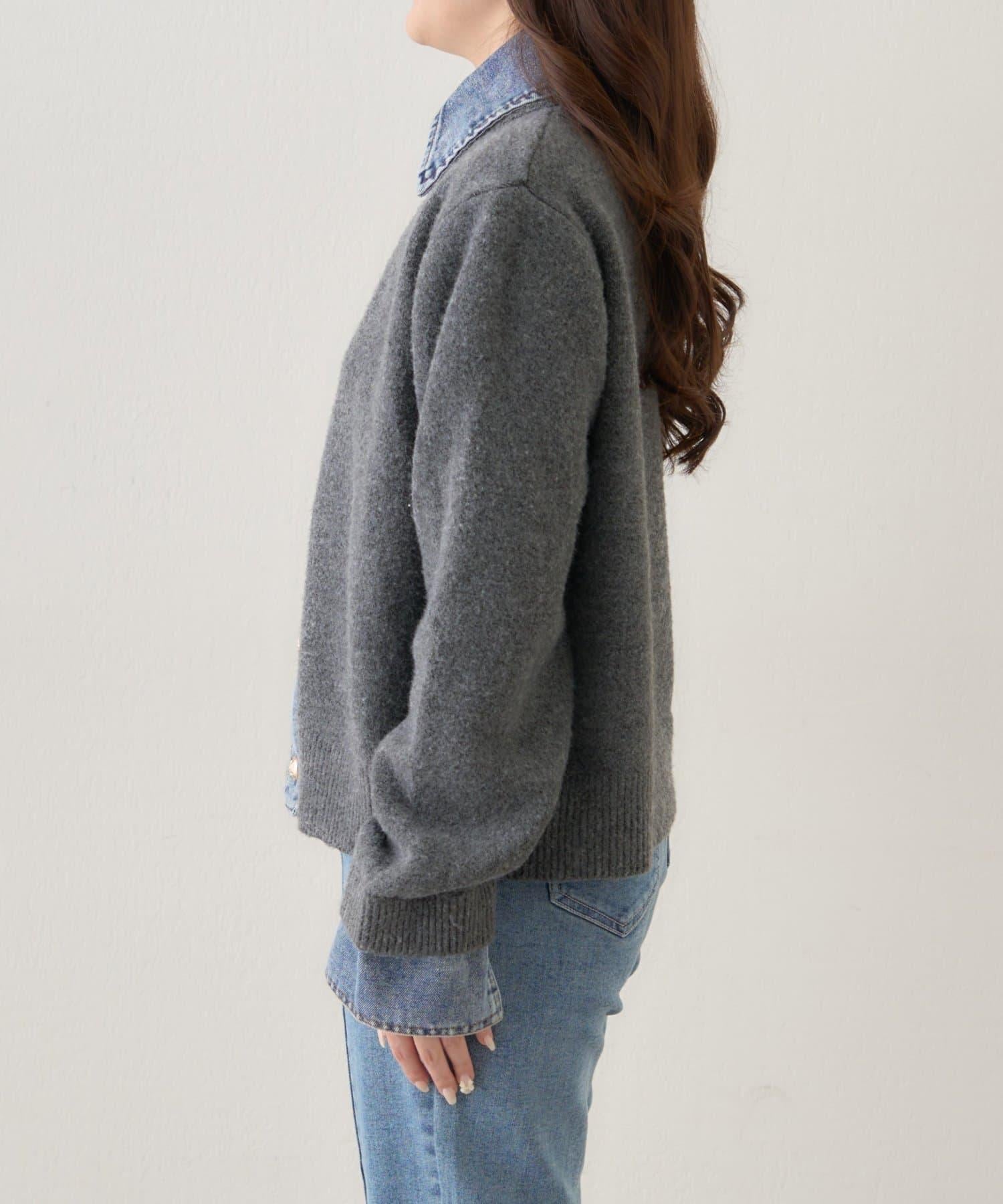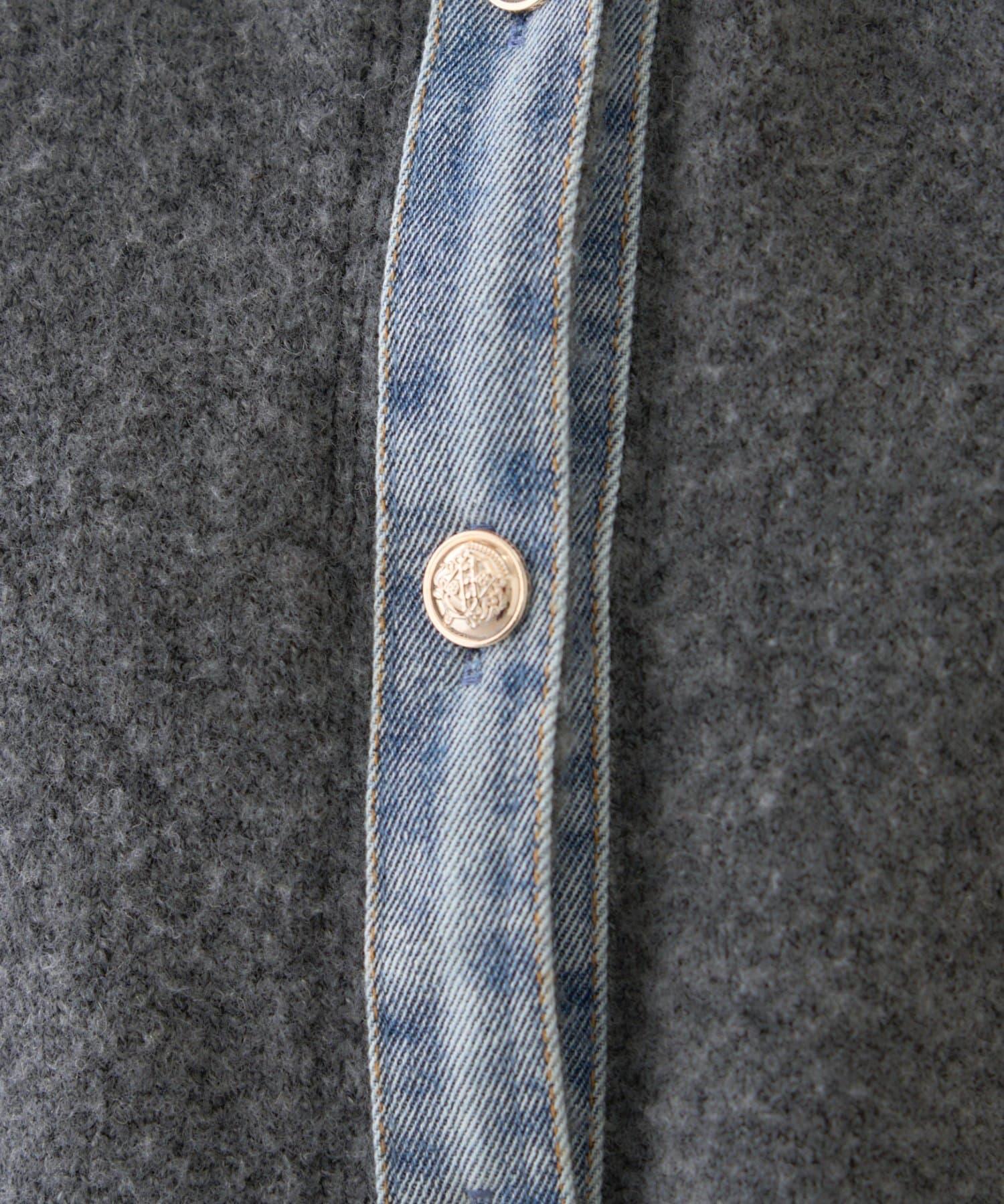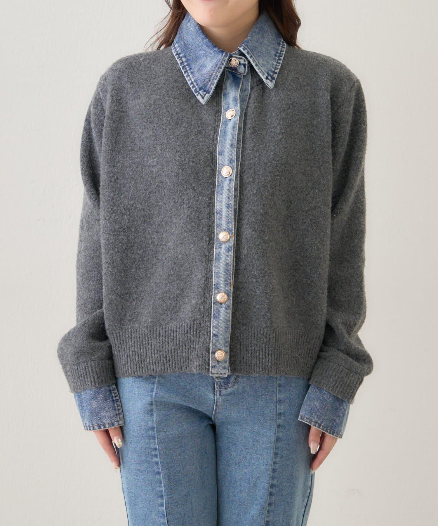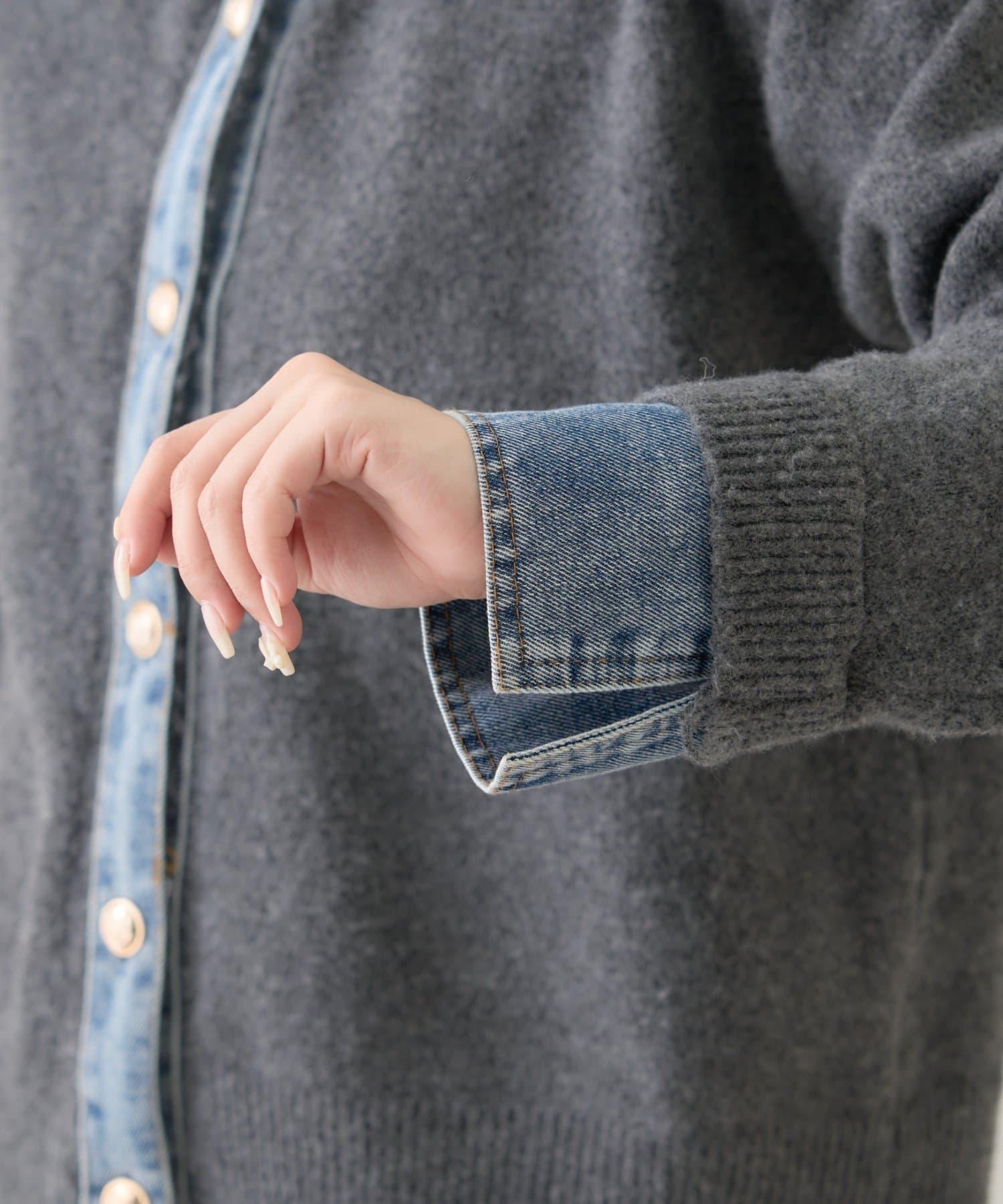 牛仔布僅在領口和袖口處設計,穿著柔軟舒適。