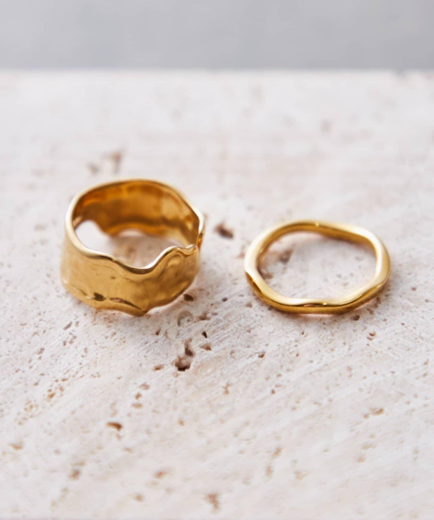 這兩款戒指的設計各不相同,因此您可以將它們疊放在一起,或者與手頭的其他戒指搭配使用。