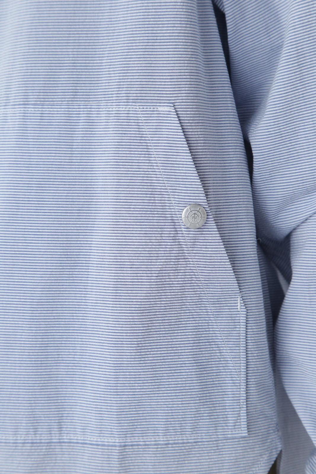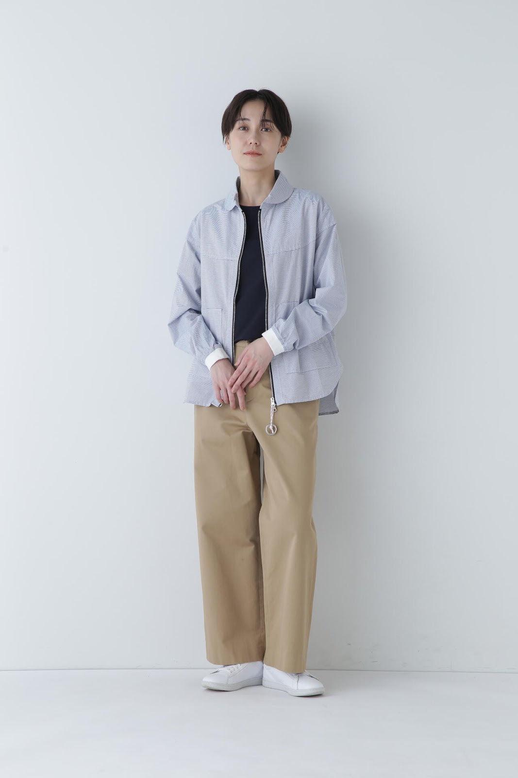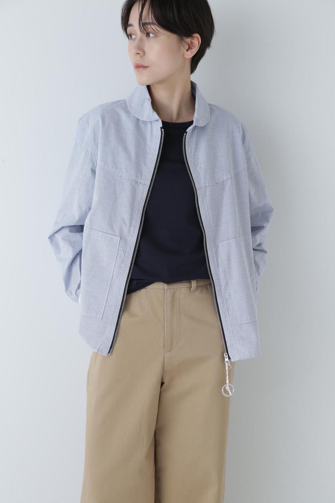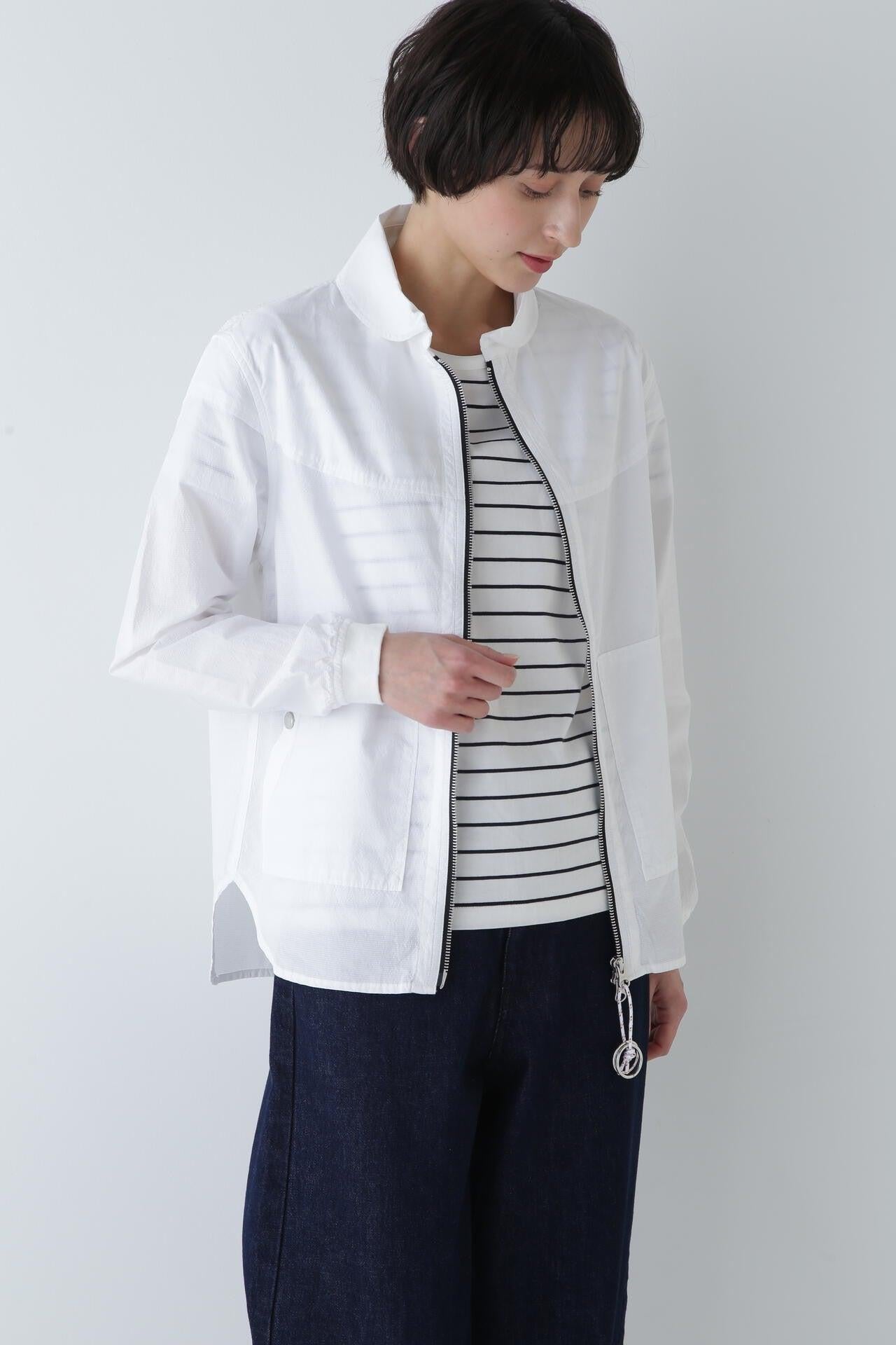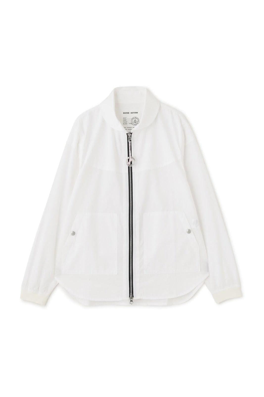 這是一款非常輕便的罩衫,可通過拉鍊開合,從胸後到肩部的拉鍊改為帽肩式。面料為邊框形,圓點紐扣上印有船錨標誌。這是一款從春天到初夏都活躍著海洋氣息的單品。面料為涼爽的棉質微足球,質地細膩,凹凸有致。