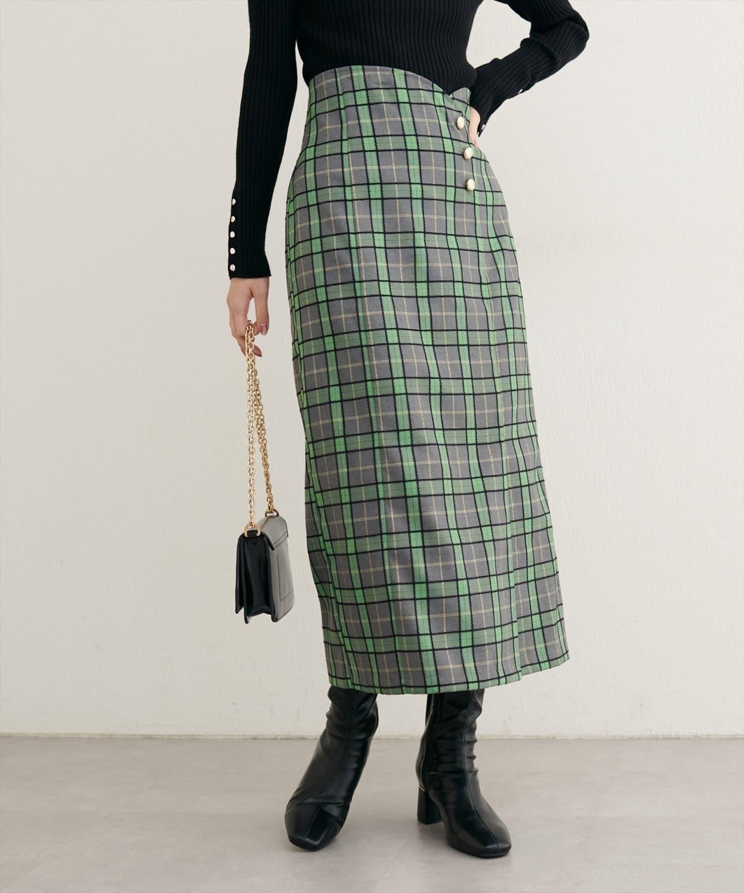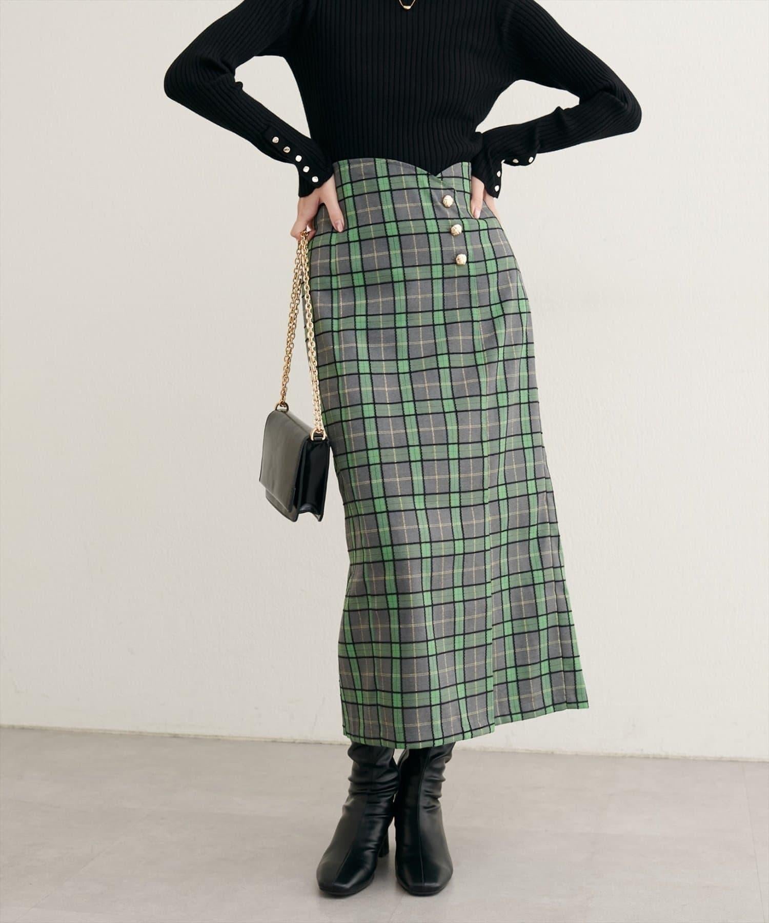 正面的設計鈕釦為裙子增添了微妙的點睛之筆。