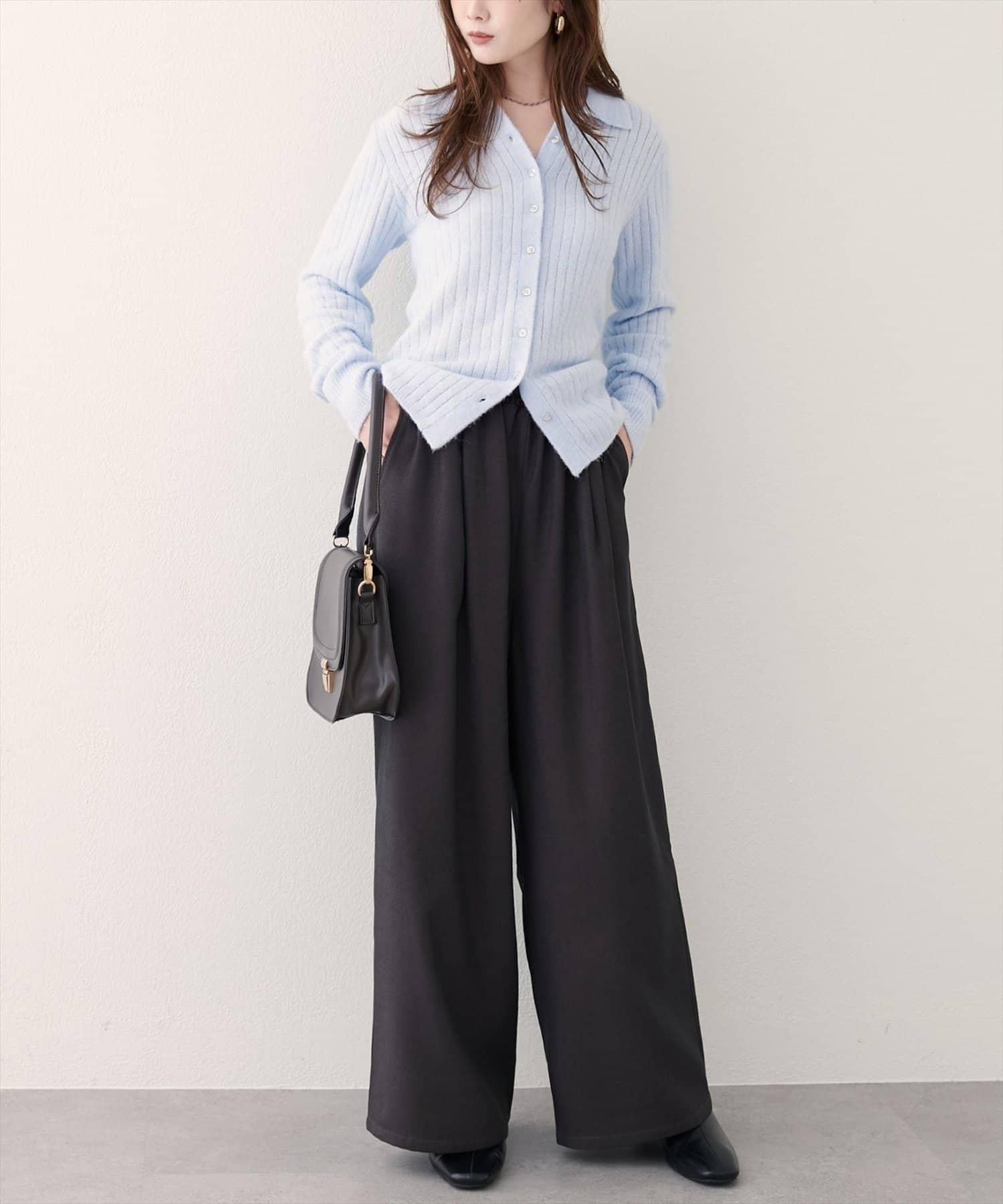 如圖所示,搭配一件小巧的針織開衫,會給人一種優雅、柔美的印象。