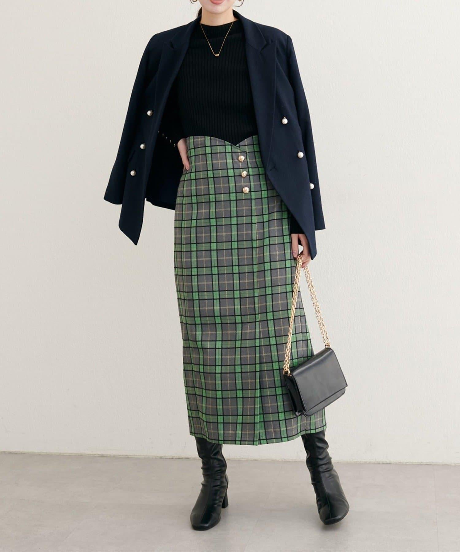 正面的設計鈕釦為裙子增添了微妙的點睛之筆。