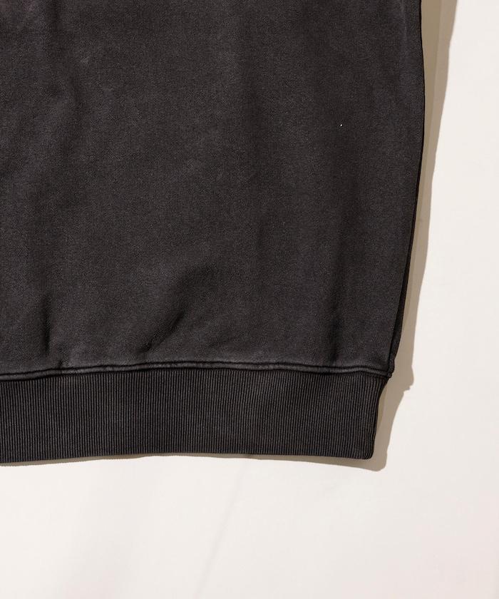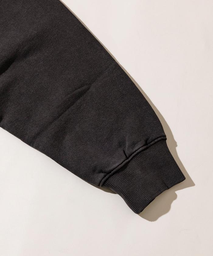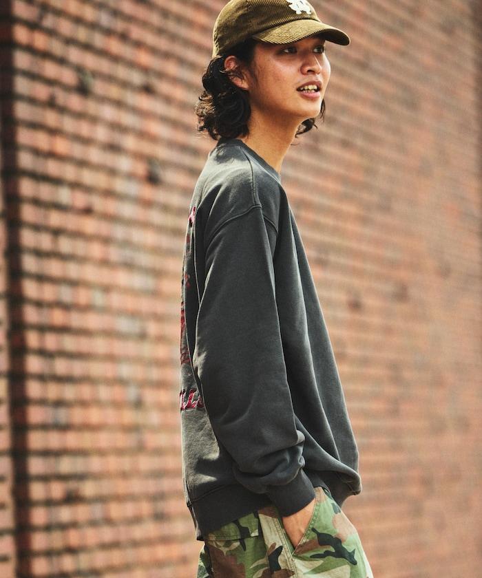 顏料塗層和磨邊背面印花賦予了該單品破舊的復古外觀和感覺。