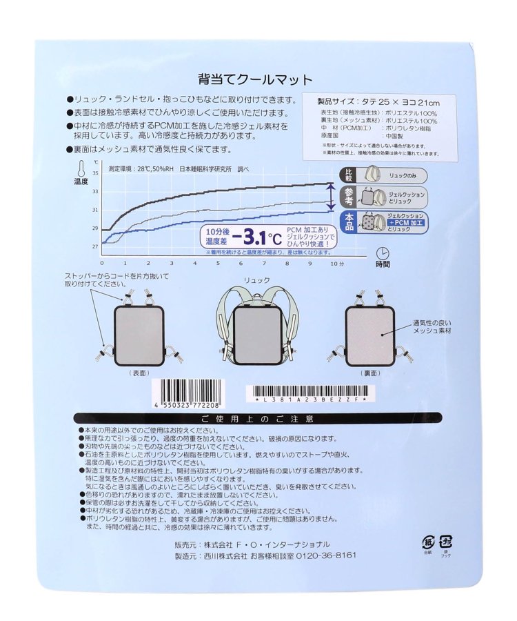 內含經 PCM 處理的清涼凝膠材料,可帶來持久的清涼感,建議用作防中暑措施。