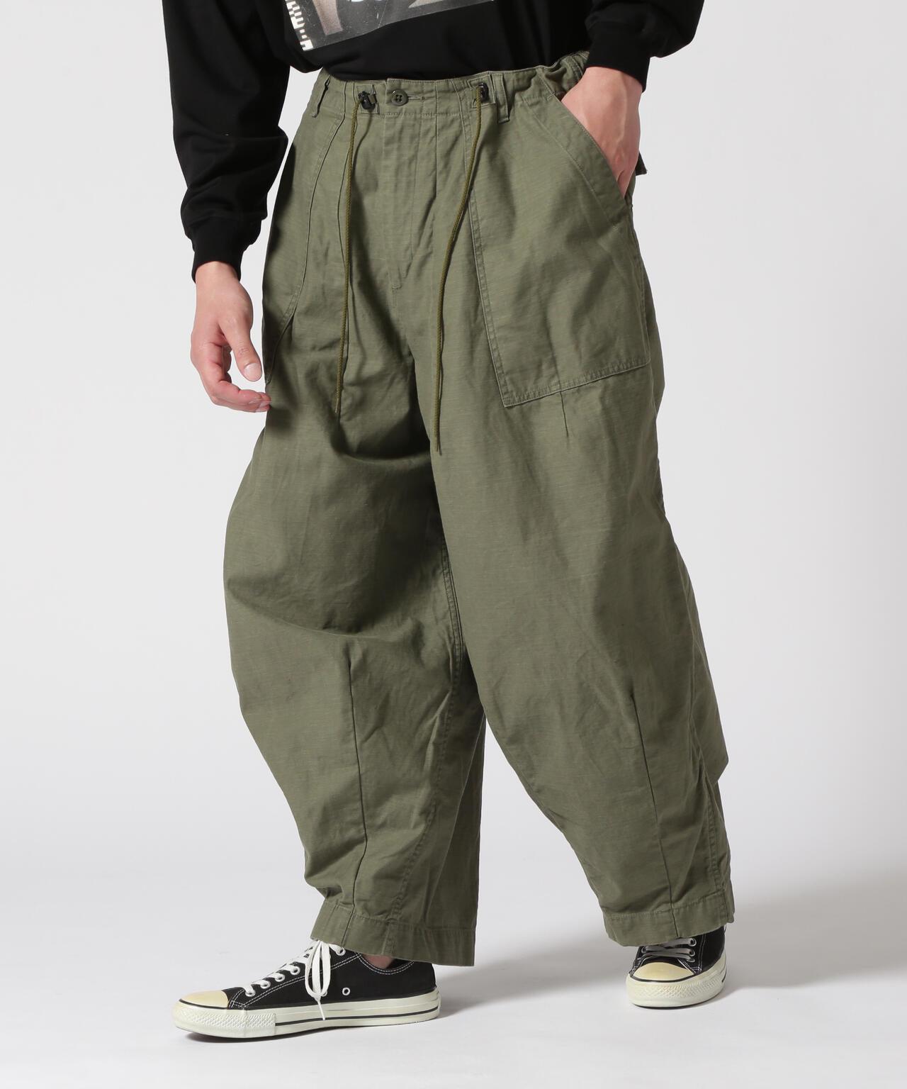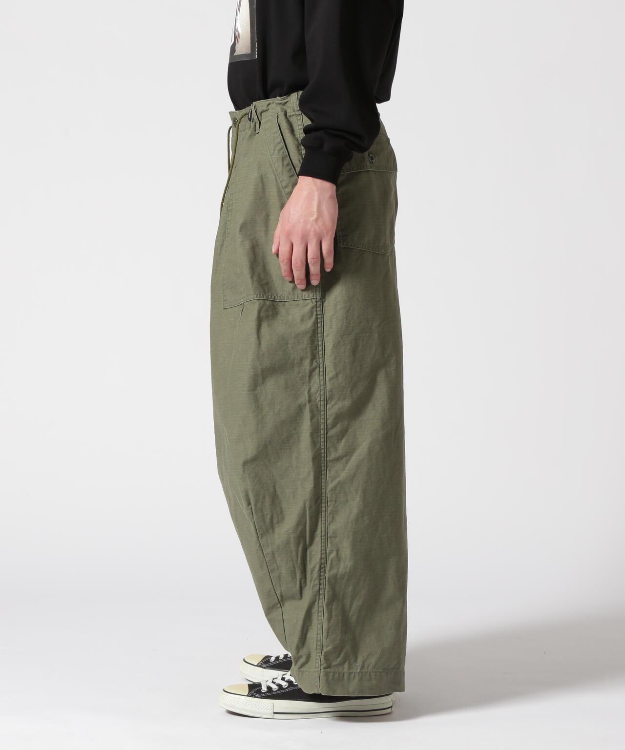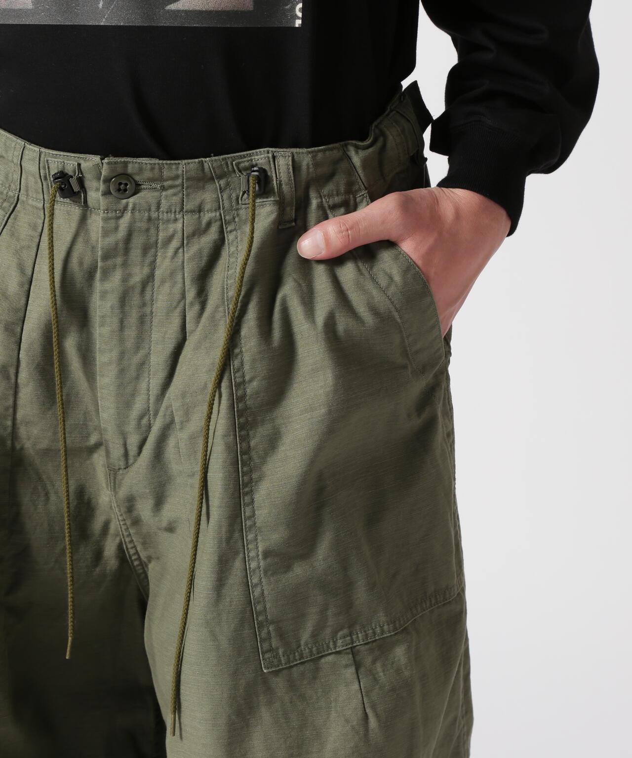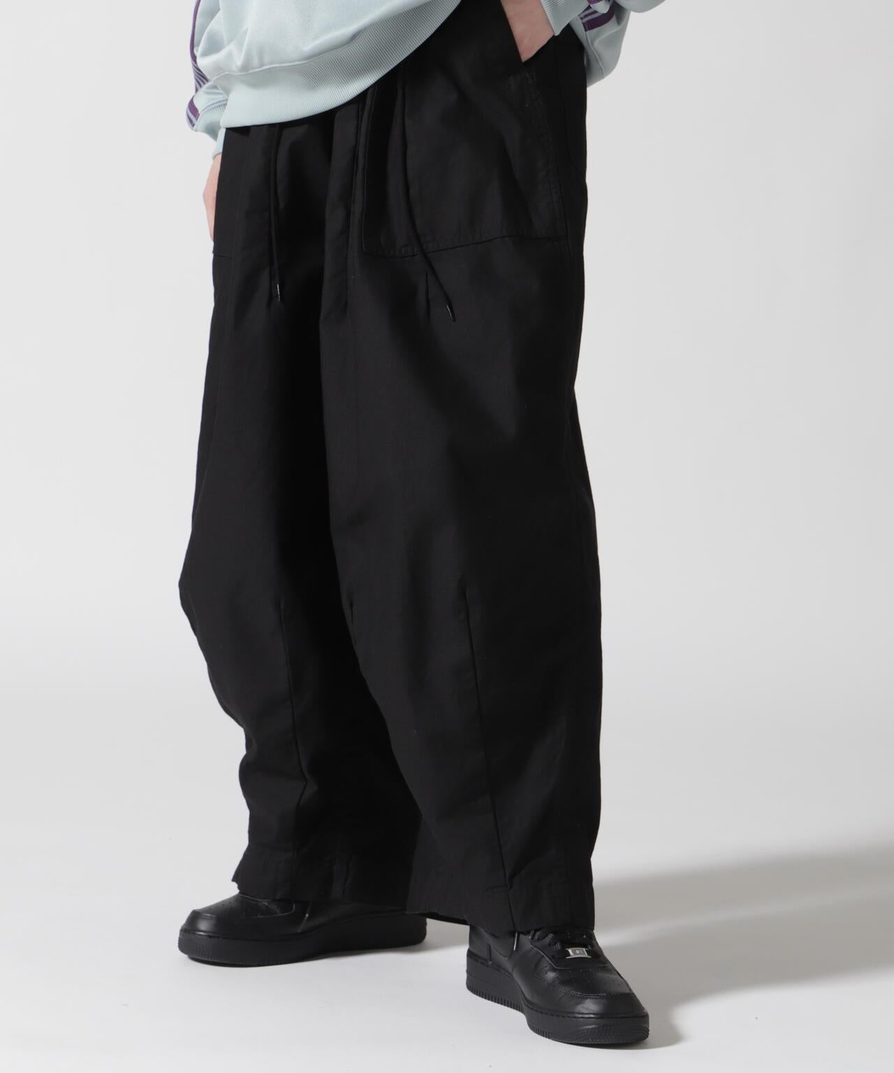 Needles H.D. Pant - FATIGUET人氣單品 H.D. 褲型獨特,腰部和下襬處的褶皺處理使前部隆起較大,現已重新上架。寬鬆的版型和開放感也很吸引人。L 形前袋和側面調節器的設計採用了疲勞褲的設計。採用棉背緞面料製成,具有彈性感。Needles 是 NEPENTHES 創始人清水敬三設計的品牌。該品牌由引領日本進口時裝 20 年之久的 NEPENTHES 創始人清水敬三設計。