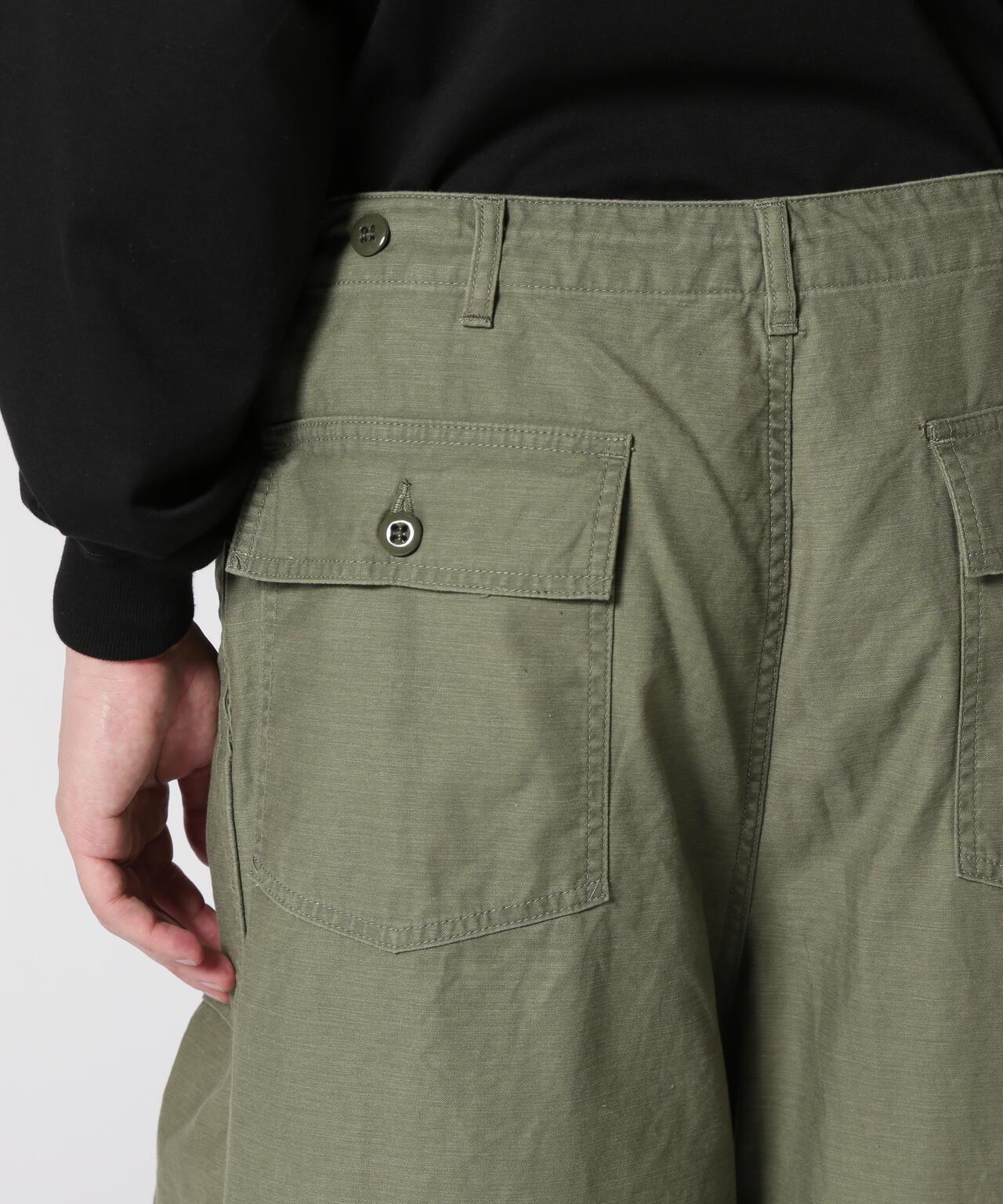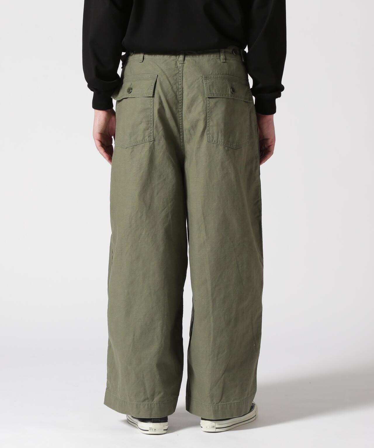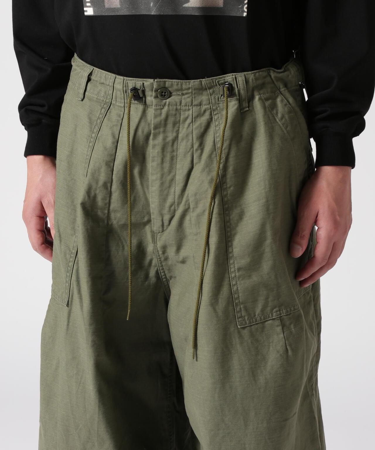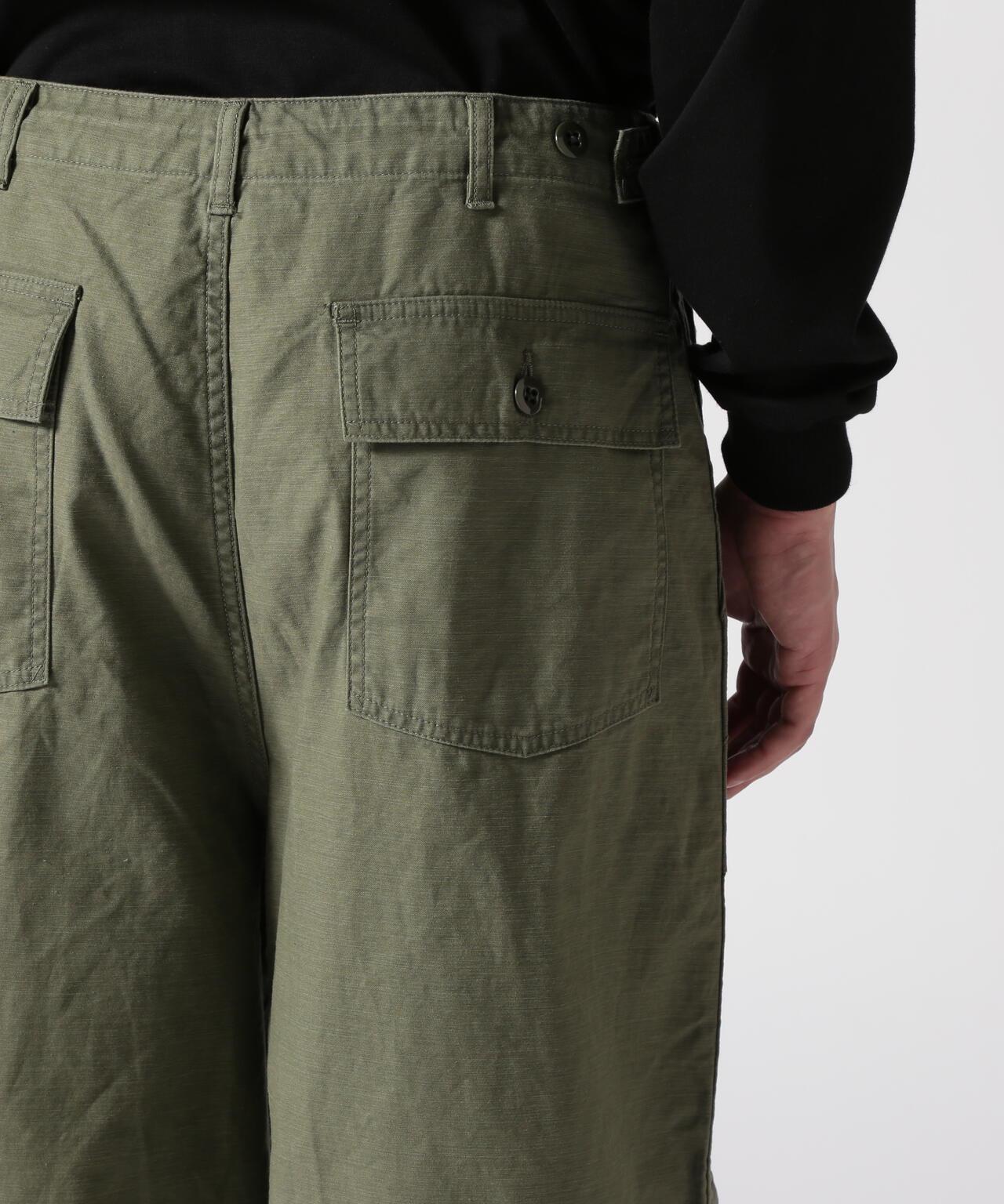 Needles H.D. Pant - FATIGUET人氣單品 H.D. 褲型獨特,腰部和下襬處的褶皺處理使前部隆起較大,現已重新上架。寬鬆的版型和開放感也很吸引人。L 形前袋和側面調節器的設計採用了疲勞褲的設計。採用棉背緞面料製成,具有彈性感。Needles 是 NEPENTHES 創始人清水敬三設計的品牌。該品牌由引領日本進口時裝 20 年之久的 NEPENTHES 創始人清水敬三設計。