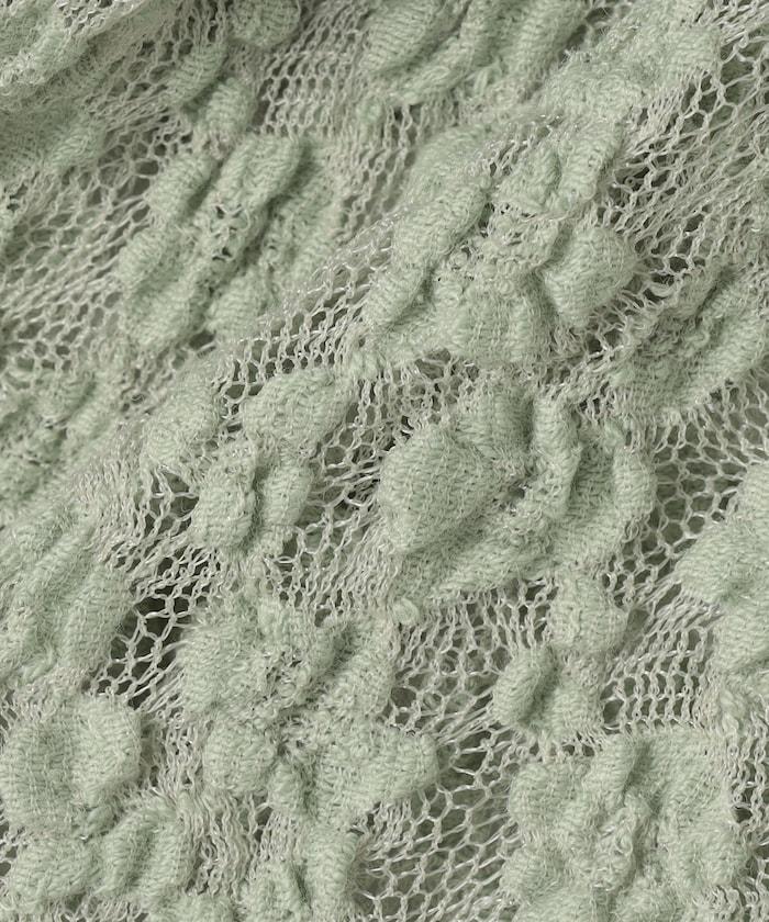 肩部的蕾絲給肌膚帶來透明感,營造出自然柔和的氛圍。