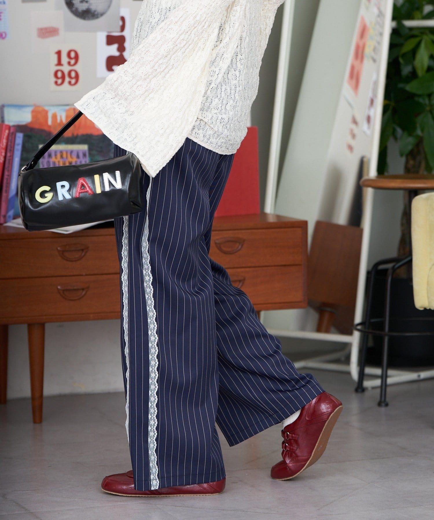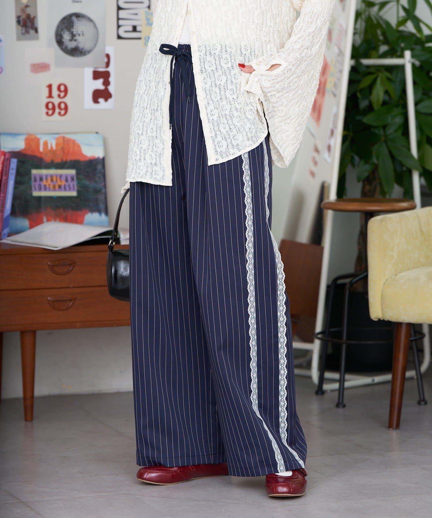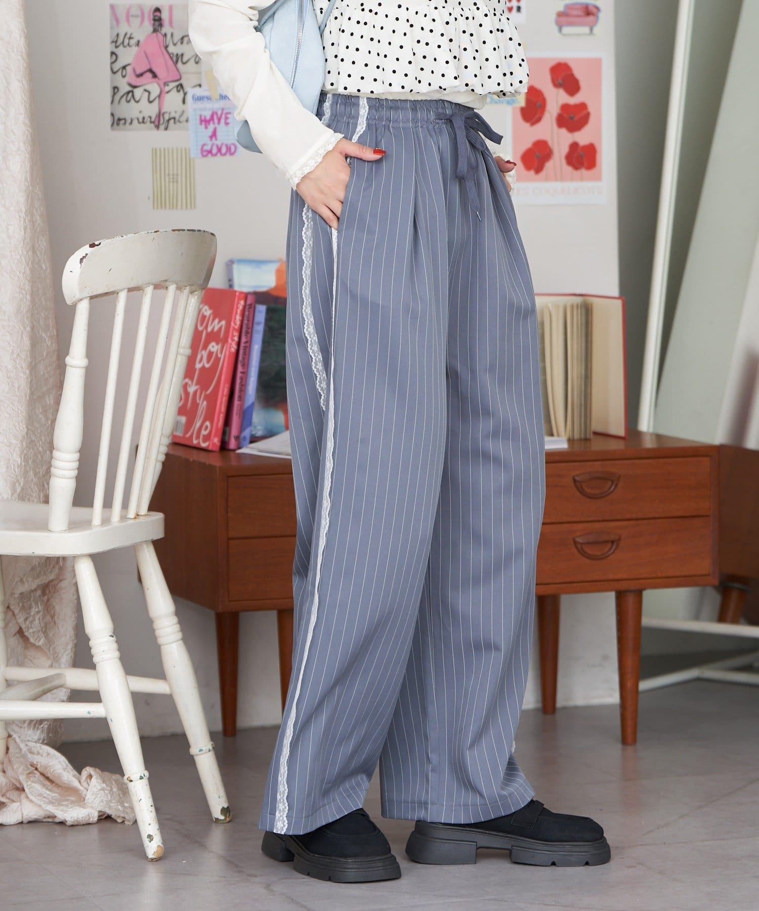 簡易休閒褲,側邊蕾絲設計,造型可愛