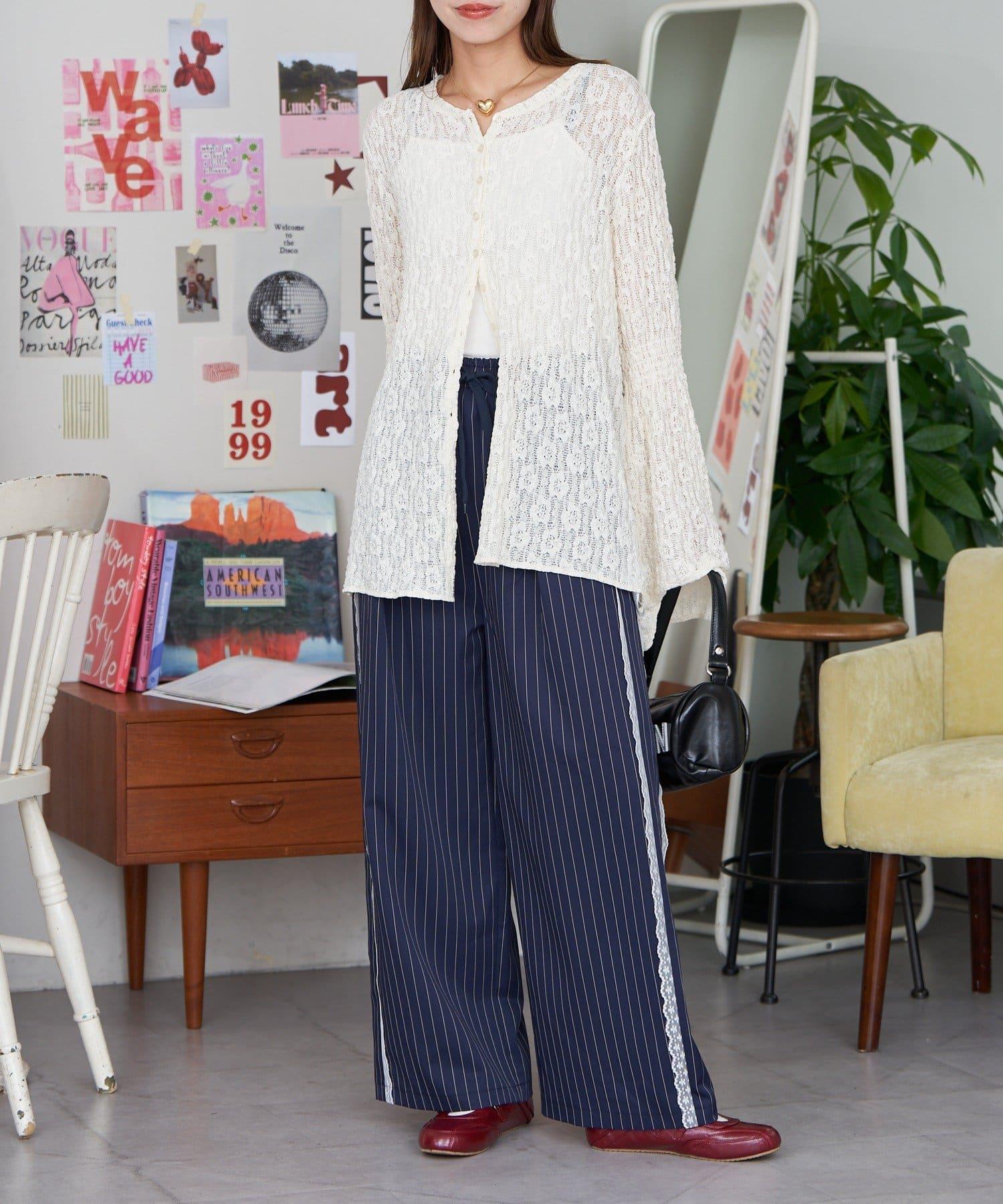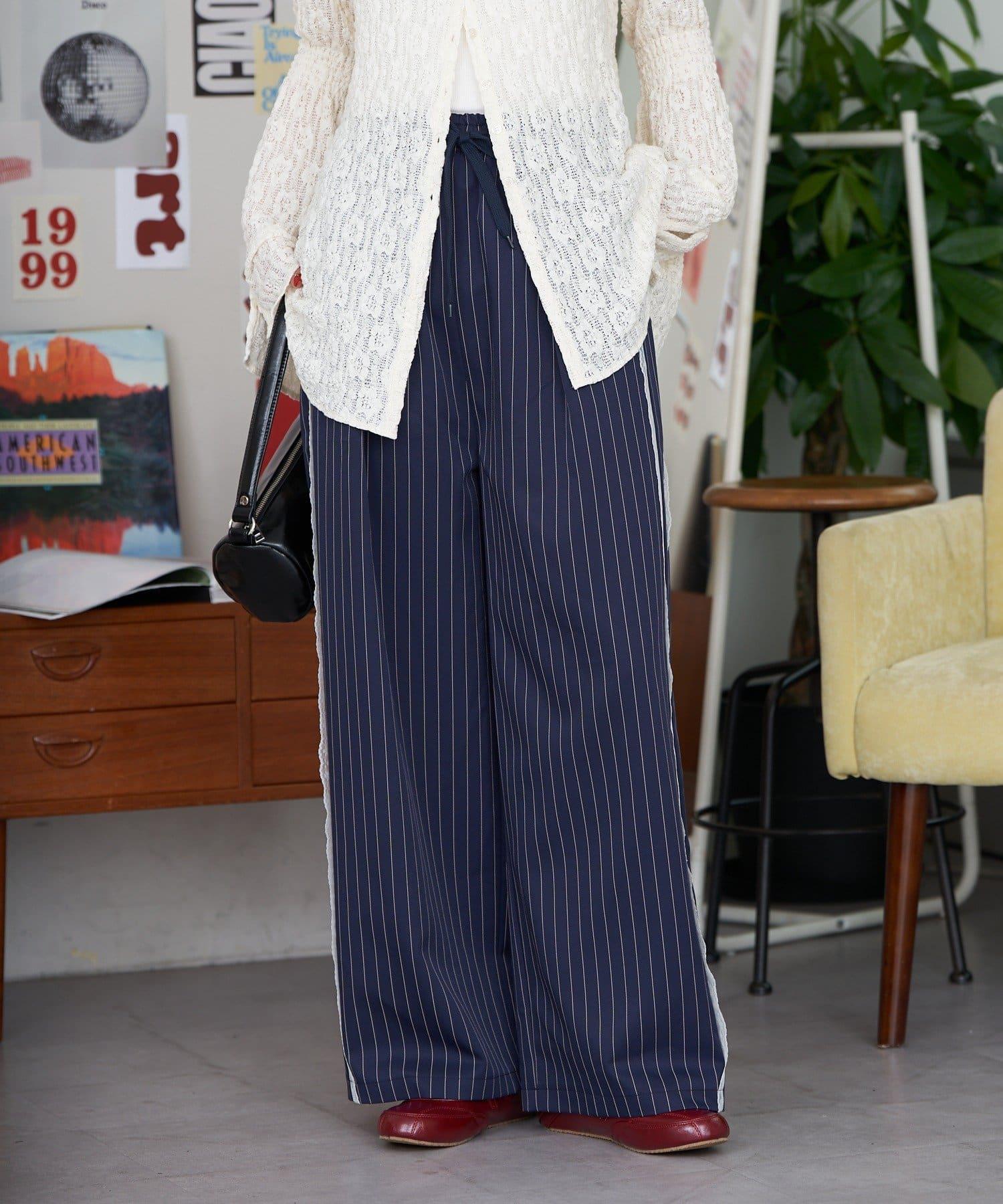 細條紋寬鬆休閒褲,寬大的廓形帶來輕鬆舒適的穿著體驗。