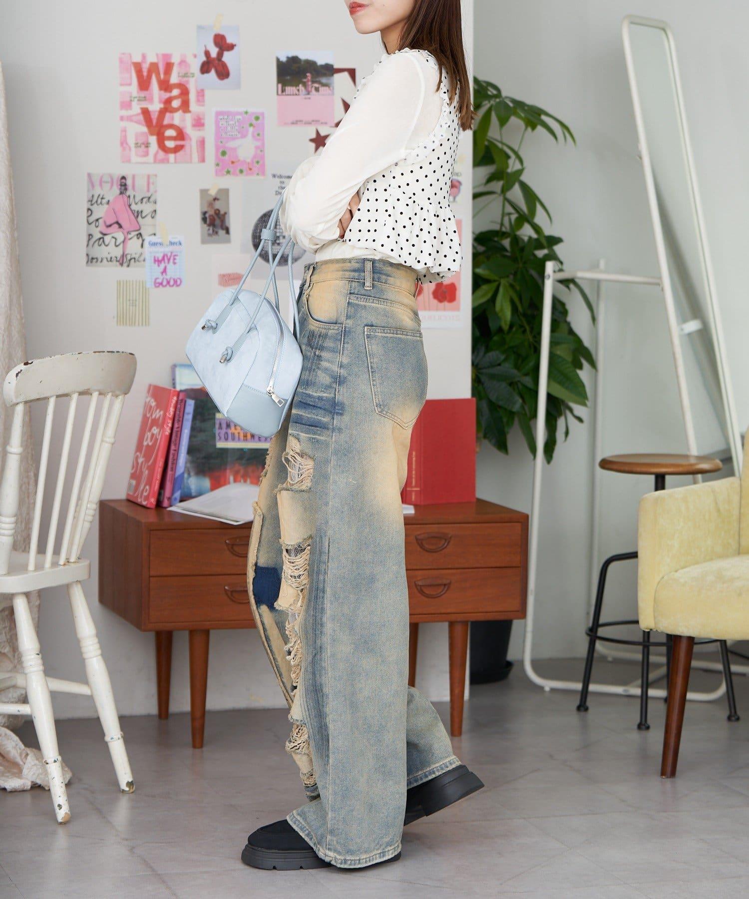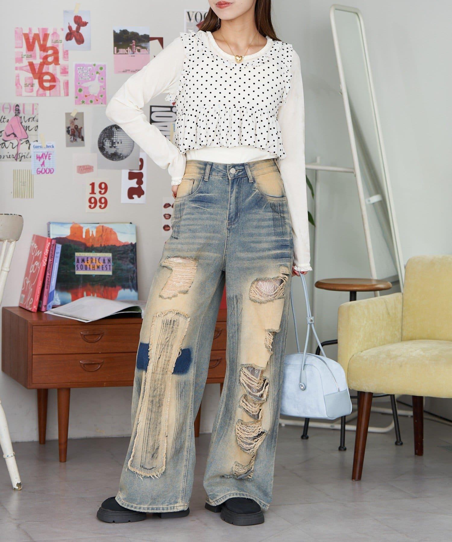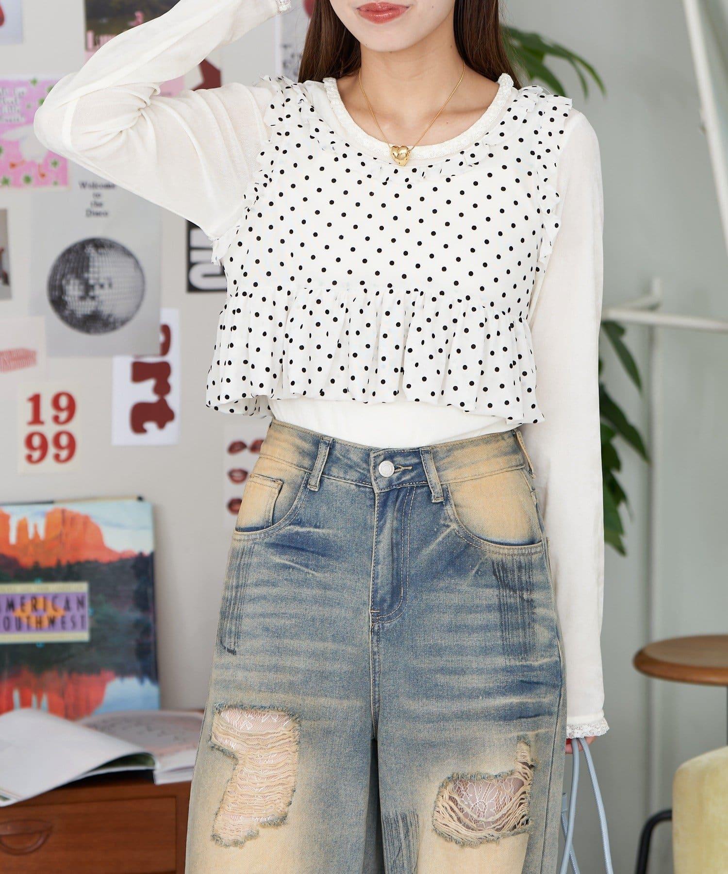 【neutral by ciaopanic】套裝單品波點網紗吊帶背心拼接T恤