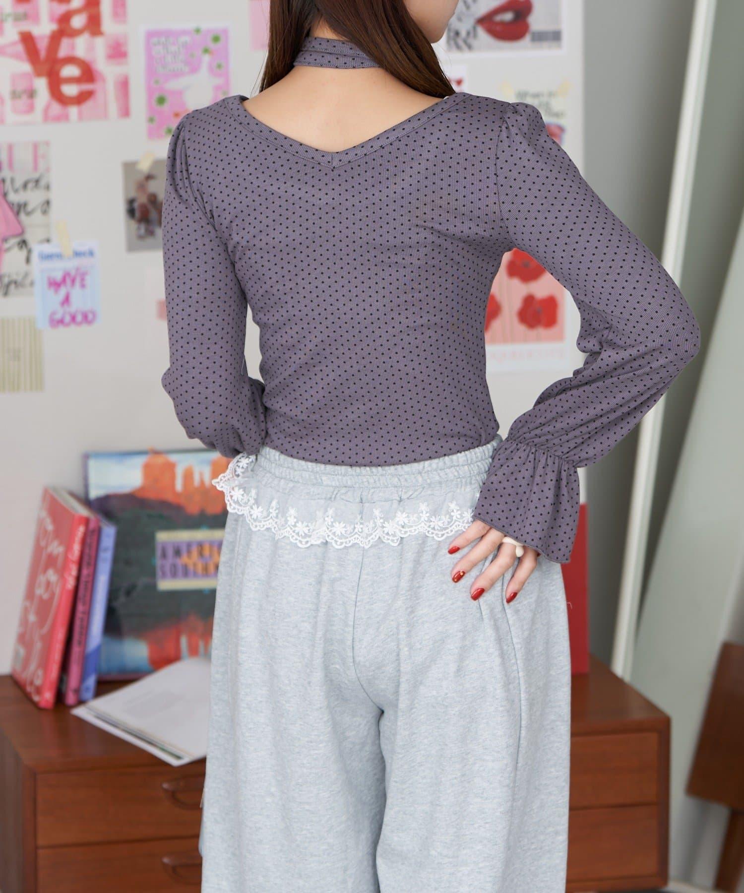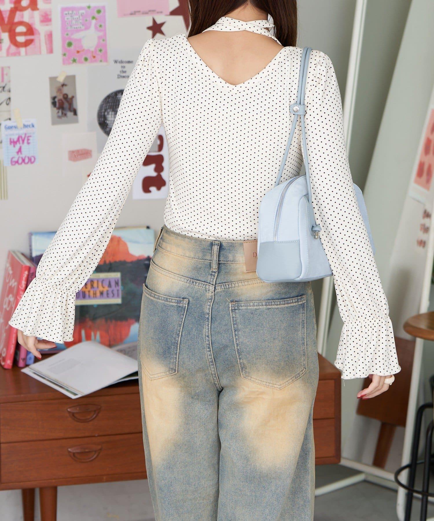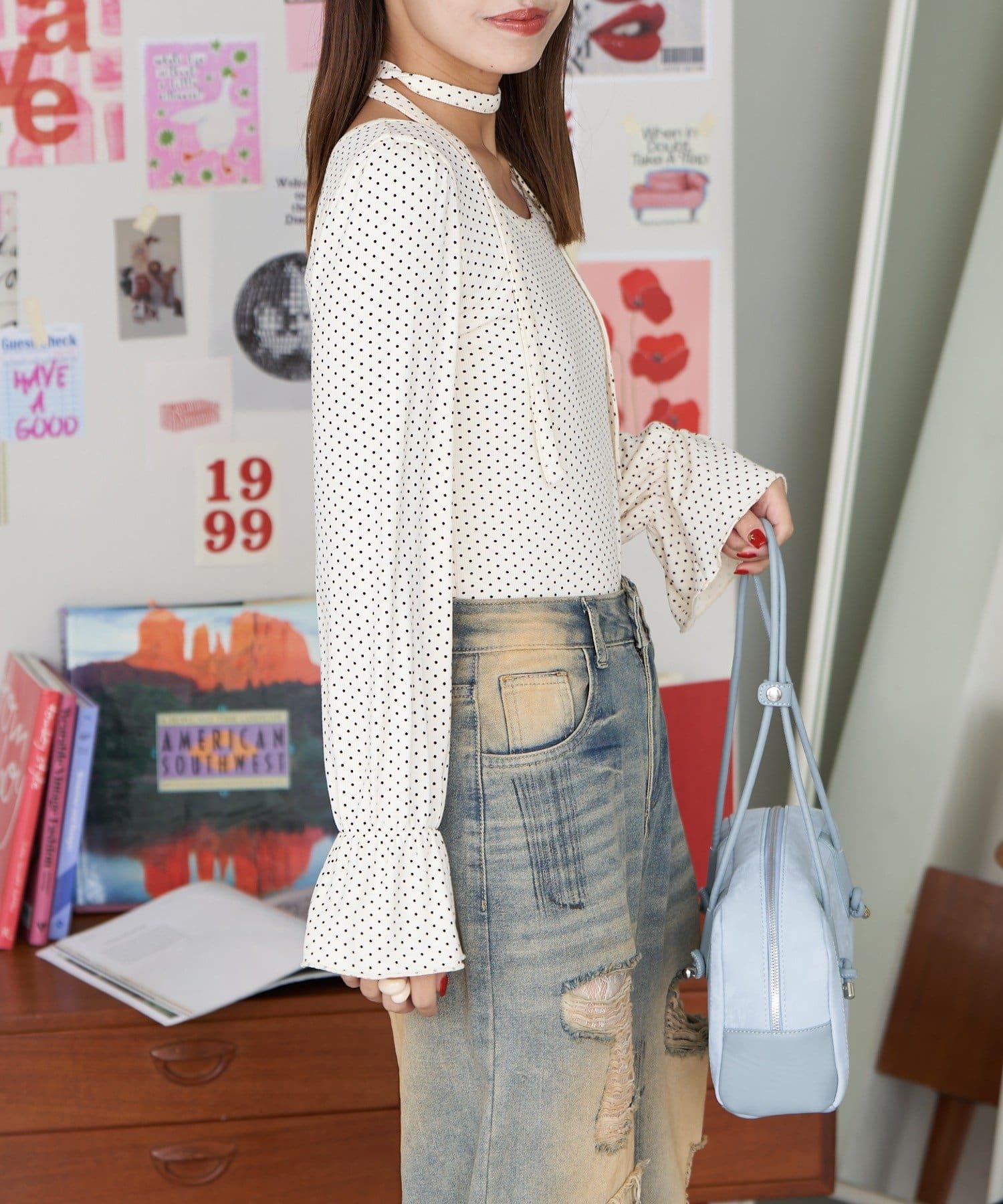 【neutral by ciaopanic】帶頸圈泡泡袖波點上衣