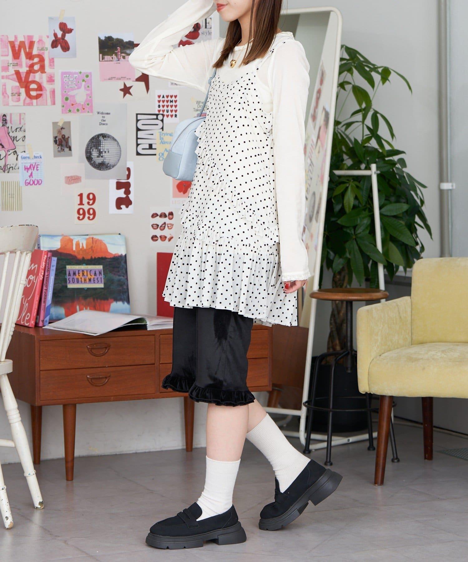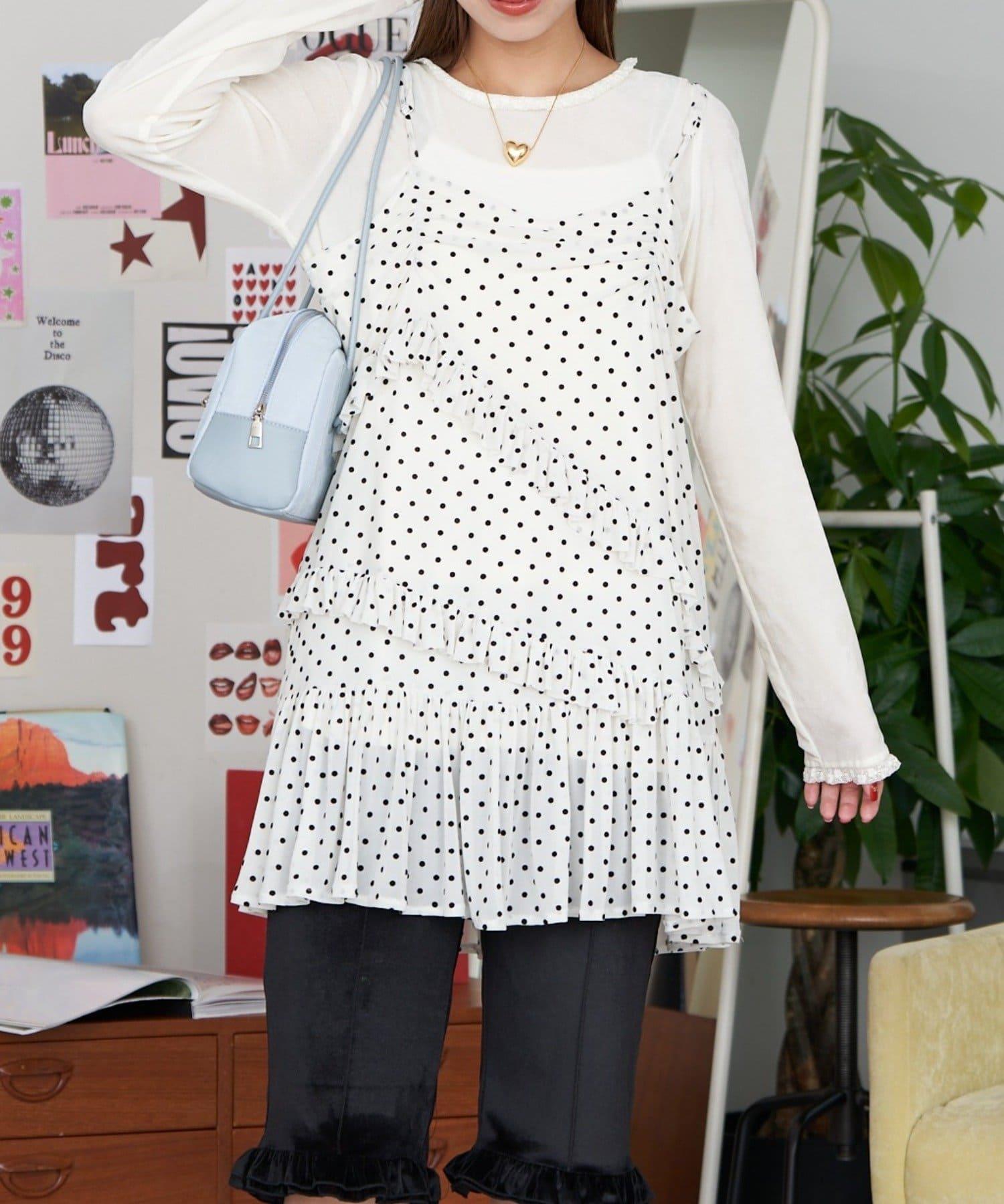 【neutral by ciaopanic】波點荷葉邊吊帶長款上衣