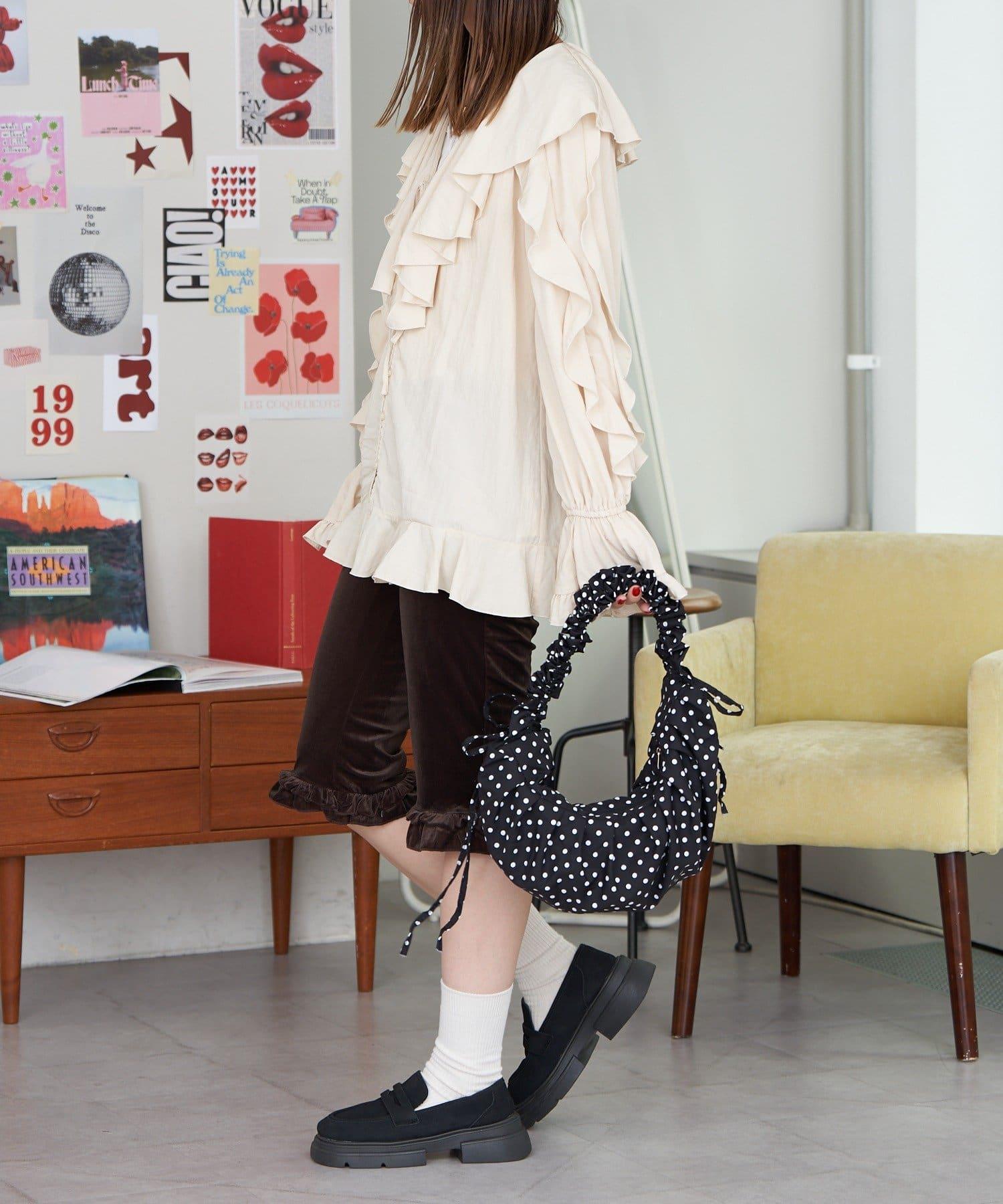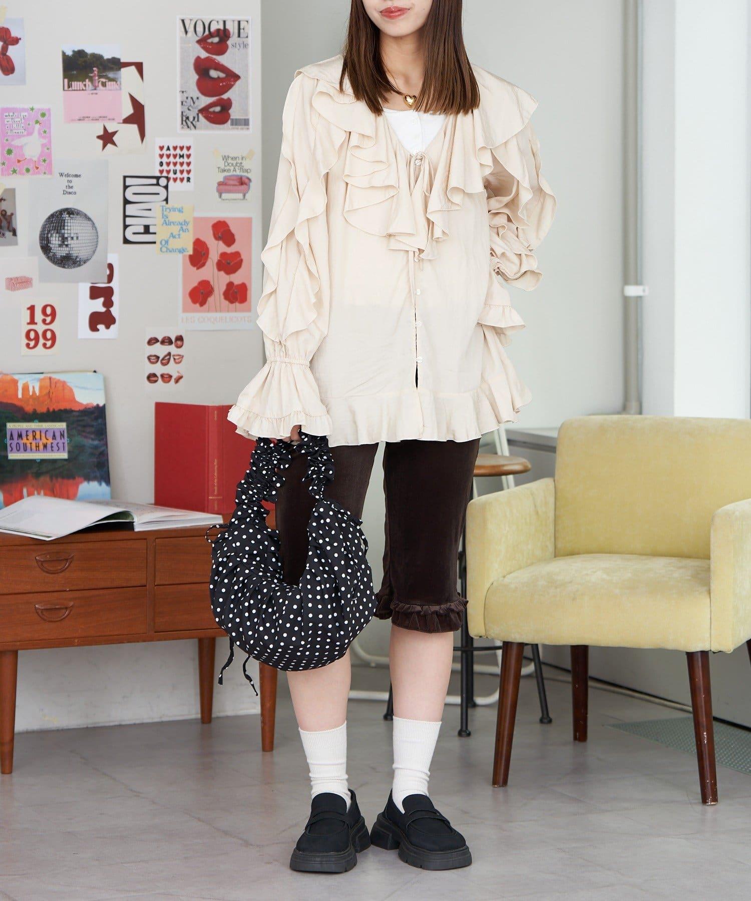 臉部周圍的荷葉邊營造出一種視覺效果,讓你看起來更小巧,手腕處的飾邊收緊了整體平衡。