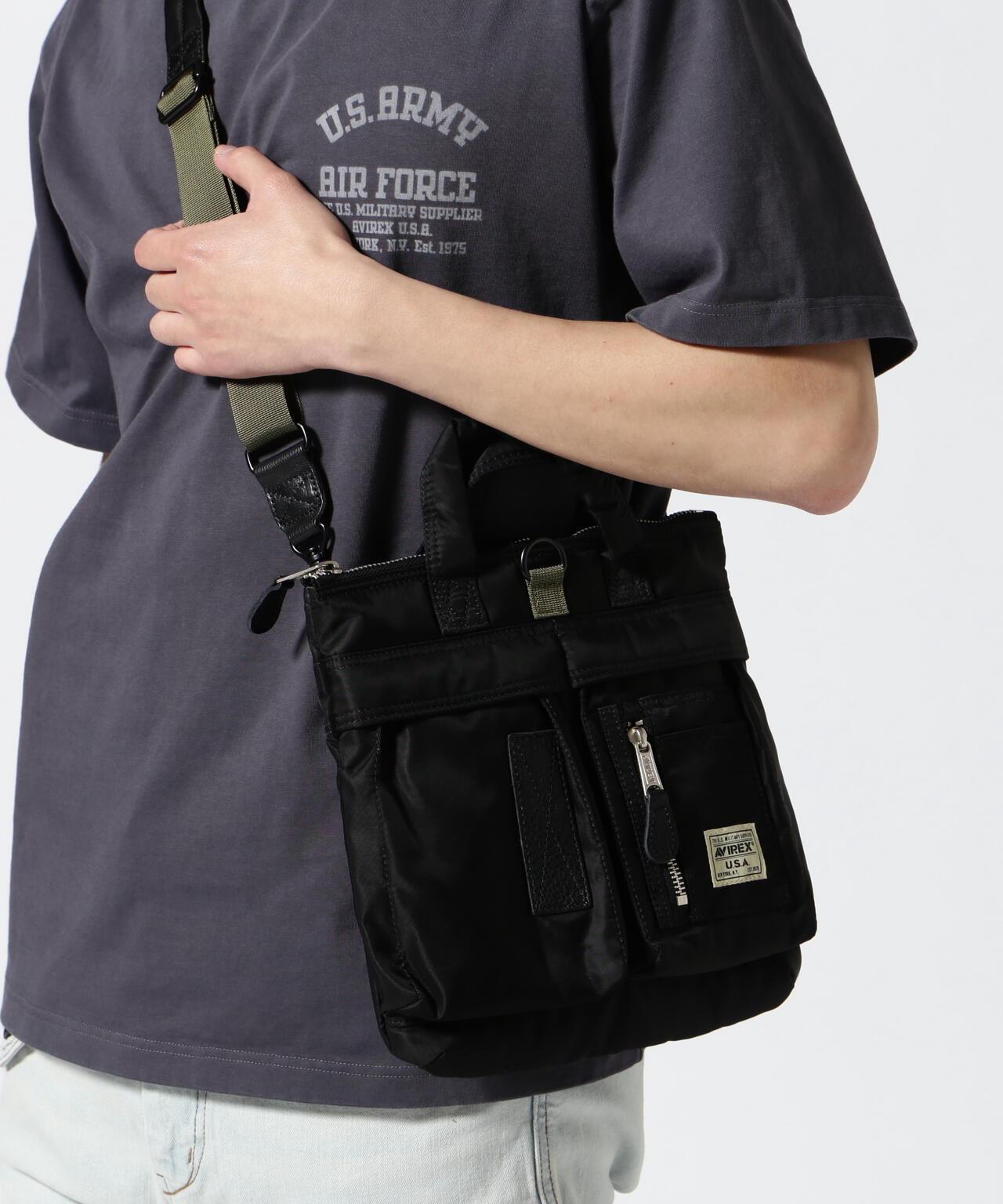 AVIREX官方商城] 產品名稱:NEW FLIGHT NYLON SMALL HELMET BAG<商品詳情> - 採用與AVIREX MA-1相同面料的尼龍包系列 - 設計融入了MA-1的雪茄袋 - 尼龍斜紋布(表層)+滌棉(中層)+襯裡(反面)。設計中融入了 MA-1 的雪茄袋。 尼龍斜紋布(表面)+ 滌綸棉布(中間層)+ 內襯(反面)的三層面料表現出 MA-1 的質感。lt;尺寸>寬:25 厘米/高:27 厘米/袼褙:4 厘米/手柄長:23 厘米/肩部:4 厘米