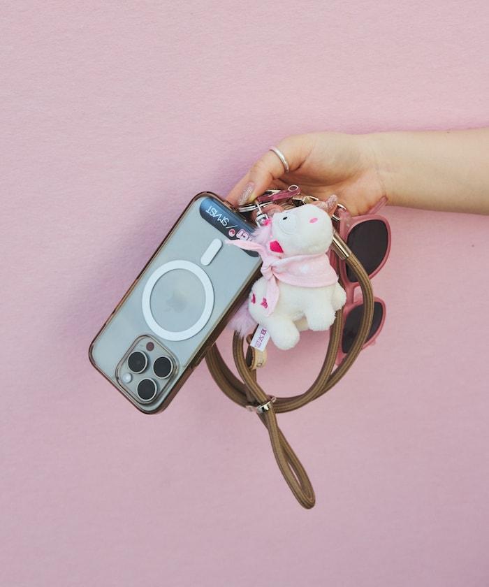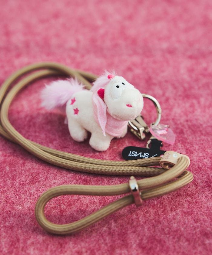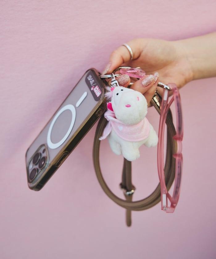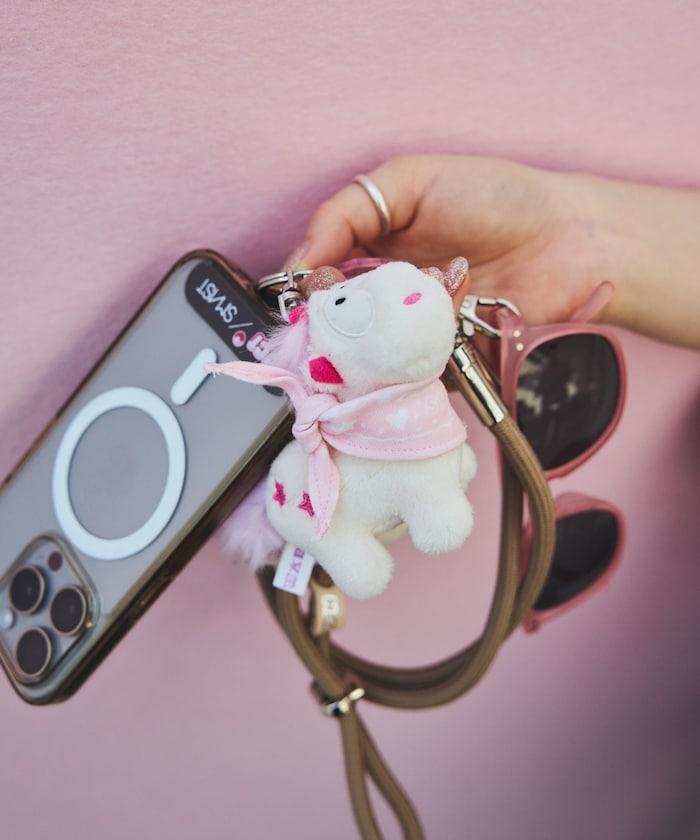 本套裝包括一個 NICI x SMAST 原創心形吊飾和附件,可掛在帶子上或作為吊飾掛在包上。