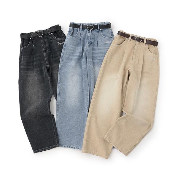 【Nico☆Petit刊載】附愛心腰帶水洗牛仔褲