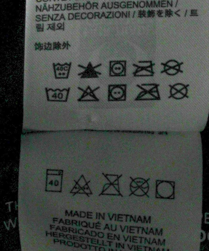 可機洗、不可漂白、不可烘乾、不可熨燙、不可乾洗