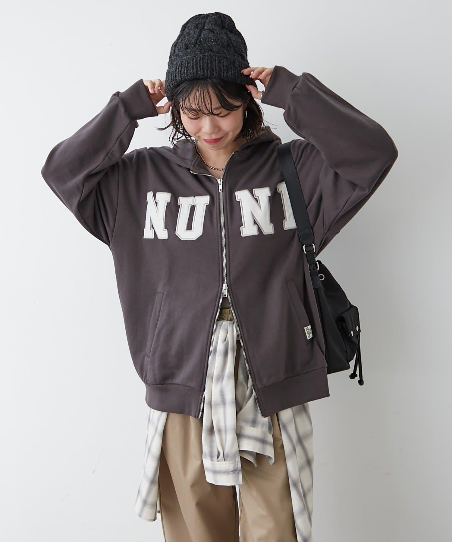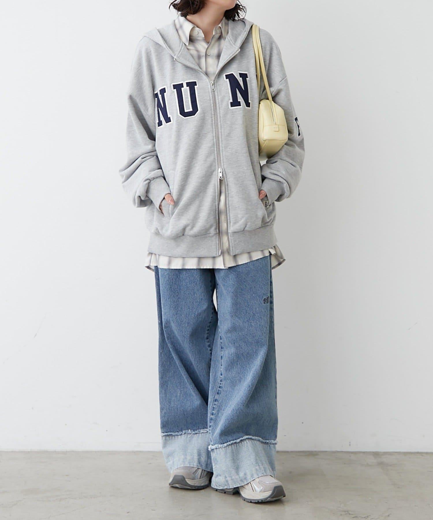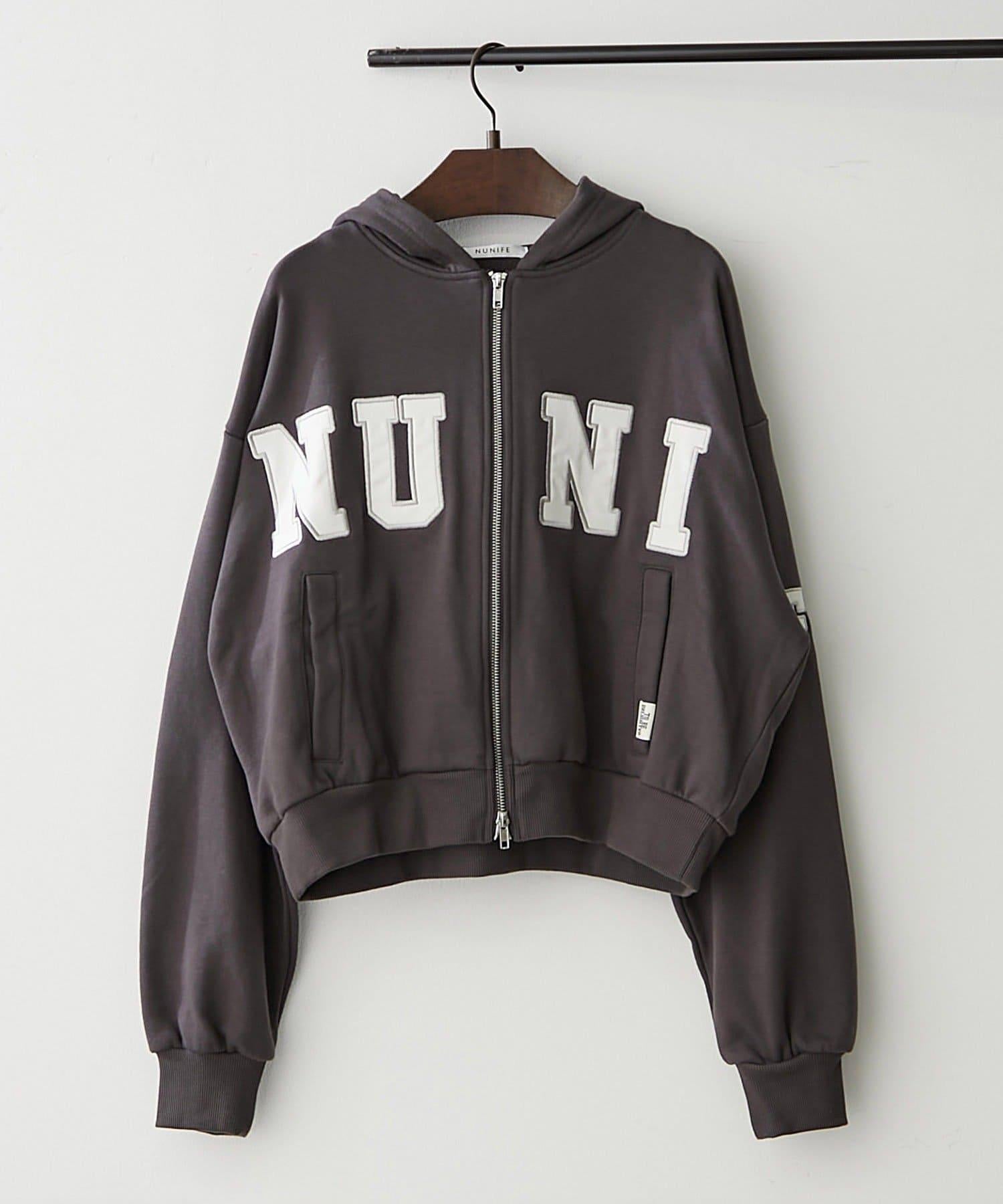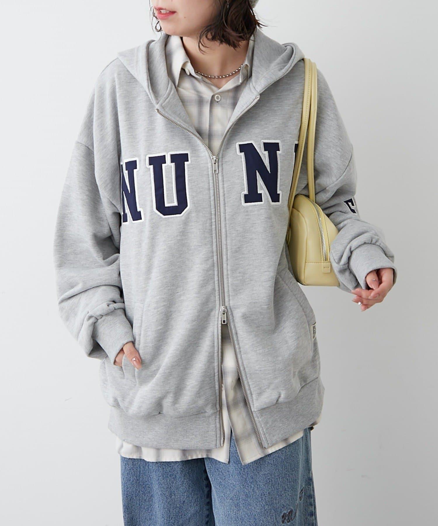 【NUNIFE】【可選2種長度】大字母印花連帽衛衣
