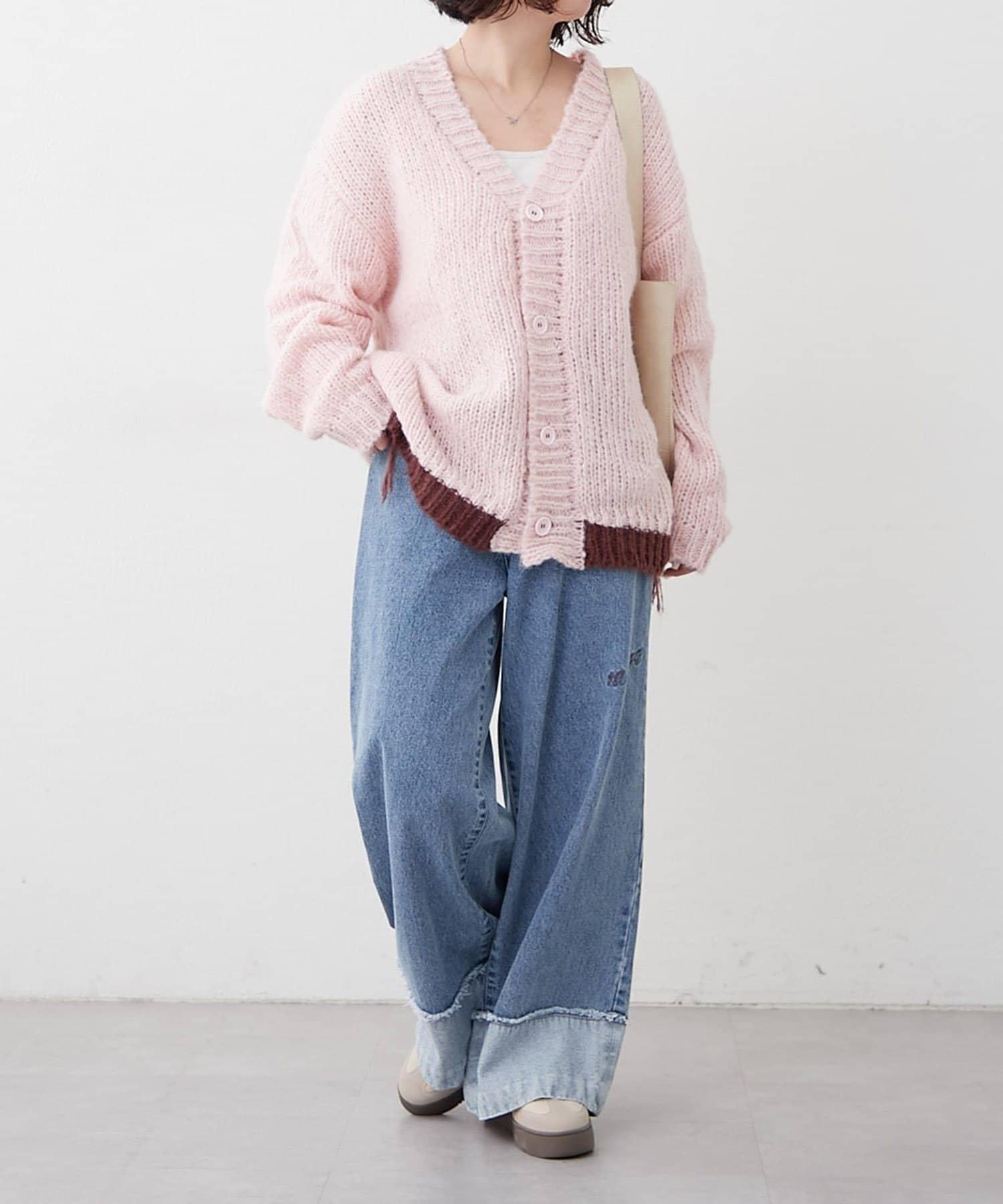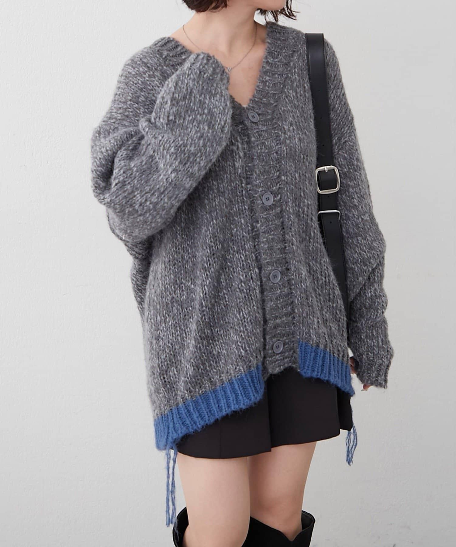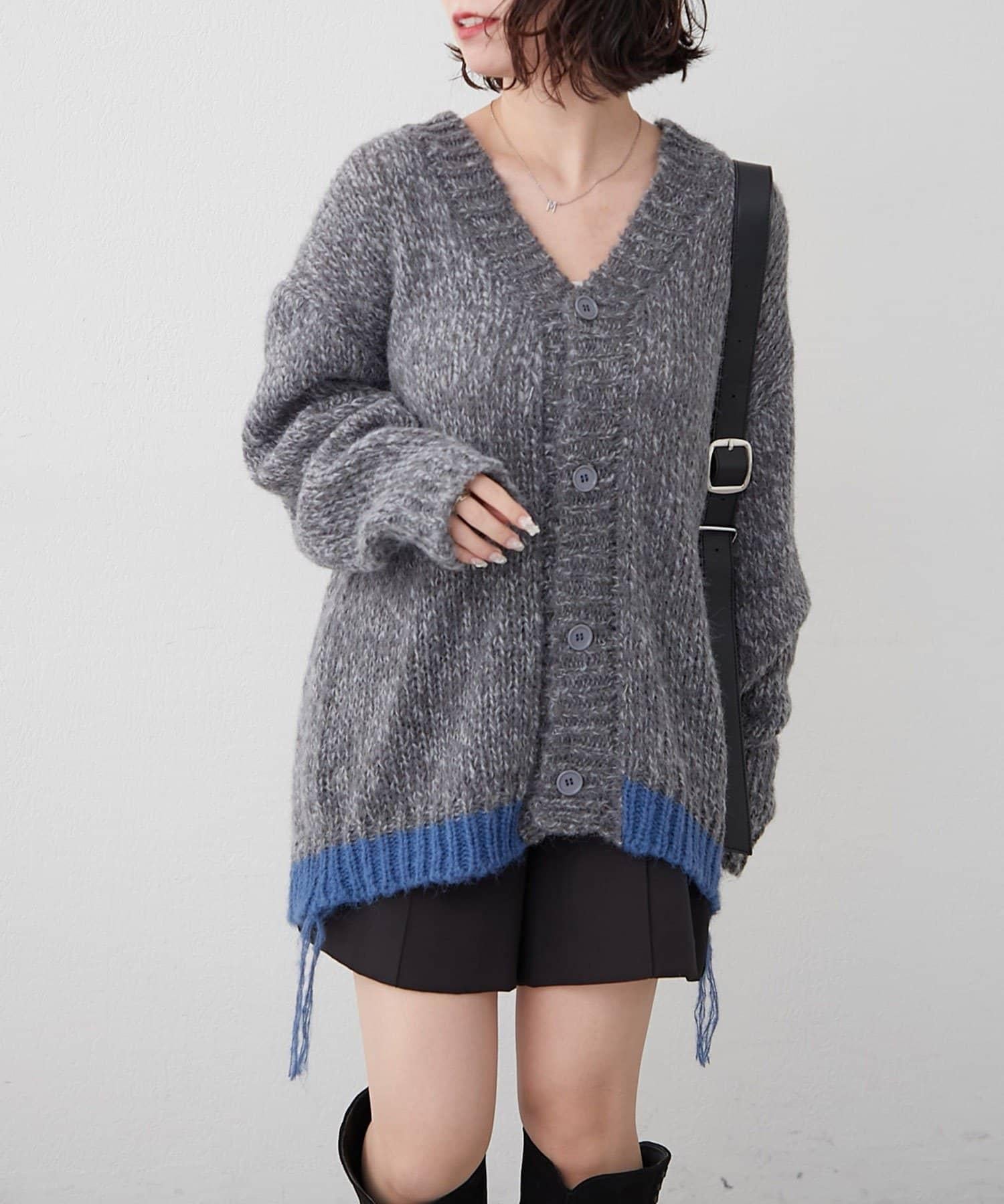 【NUNIFE】拼色下襬開衫