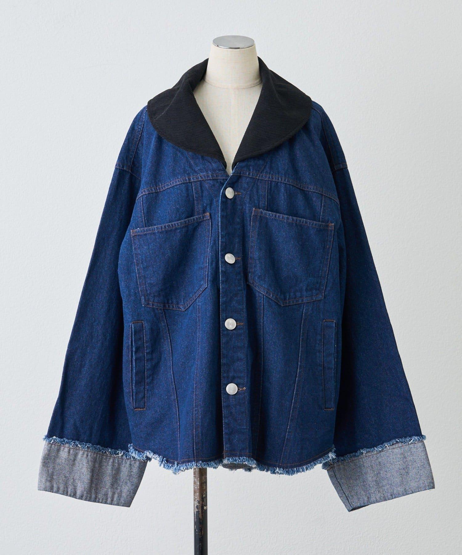 【NUNIFE】燈芯絨拼色牛仔寬鬆外套【可拆卸】