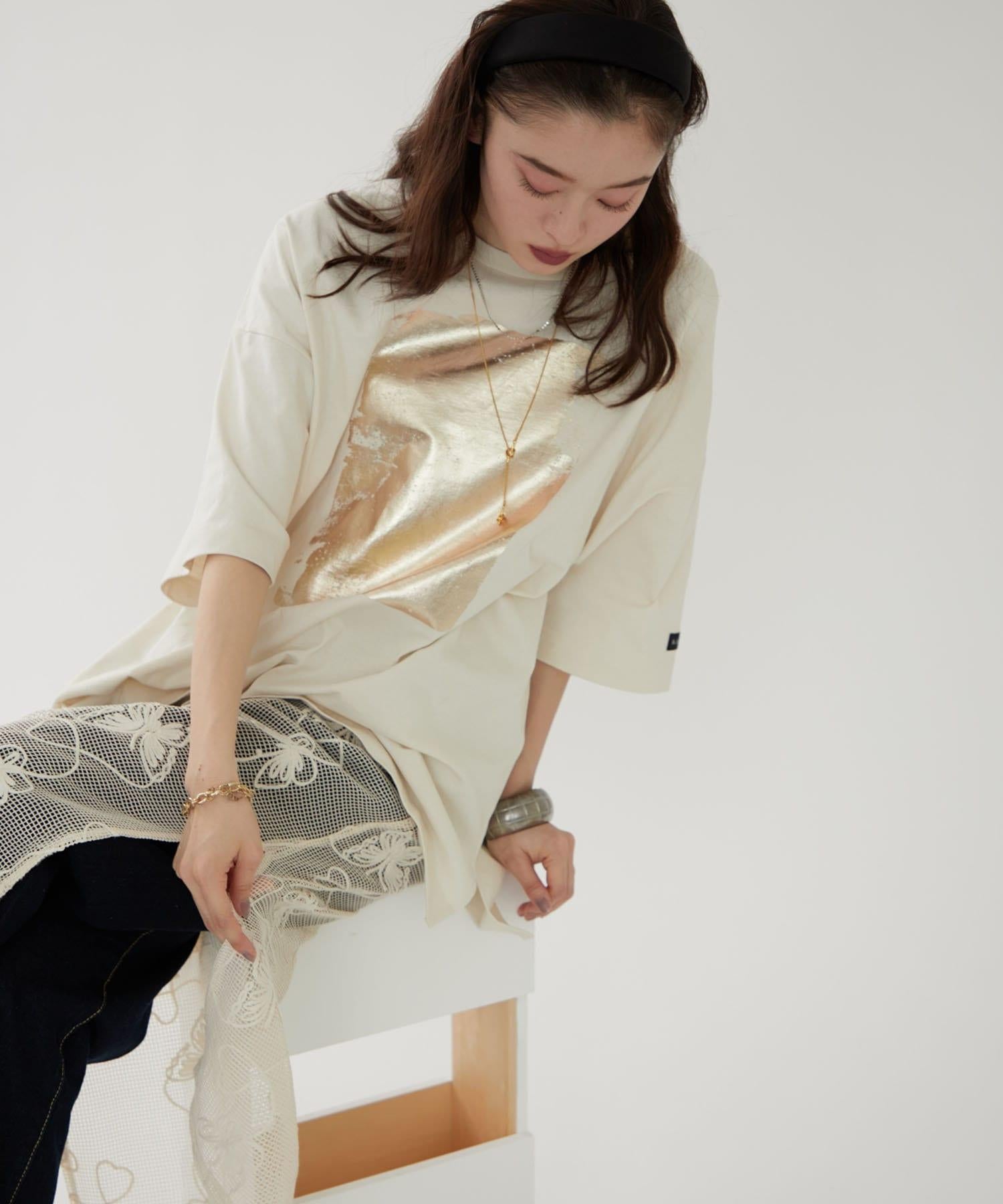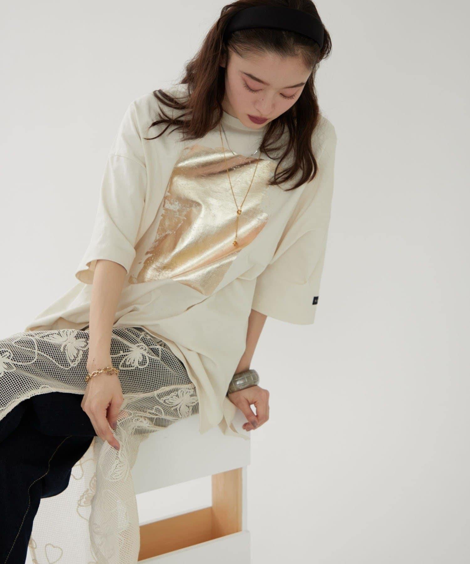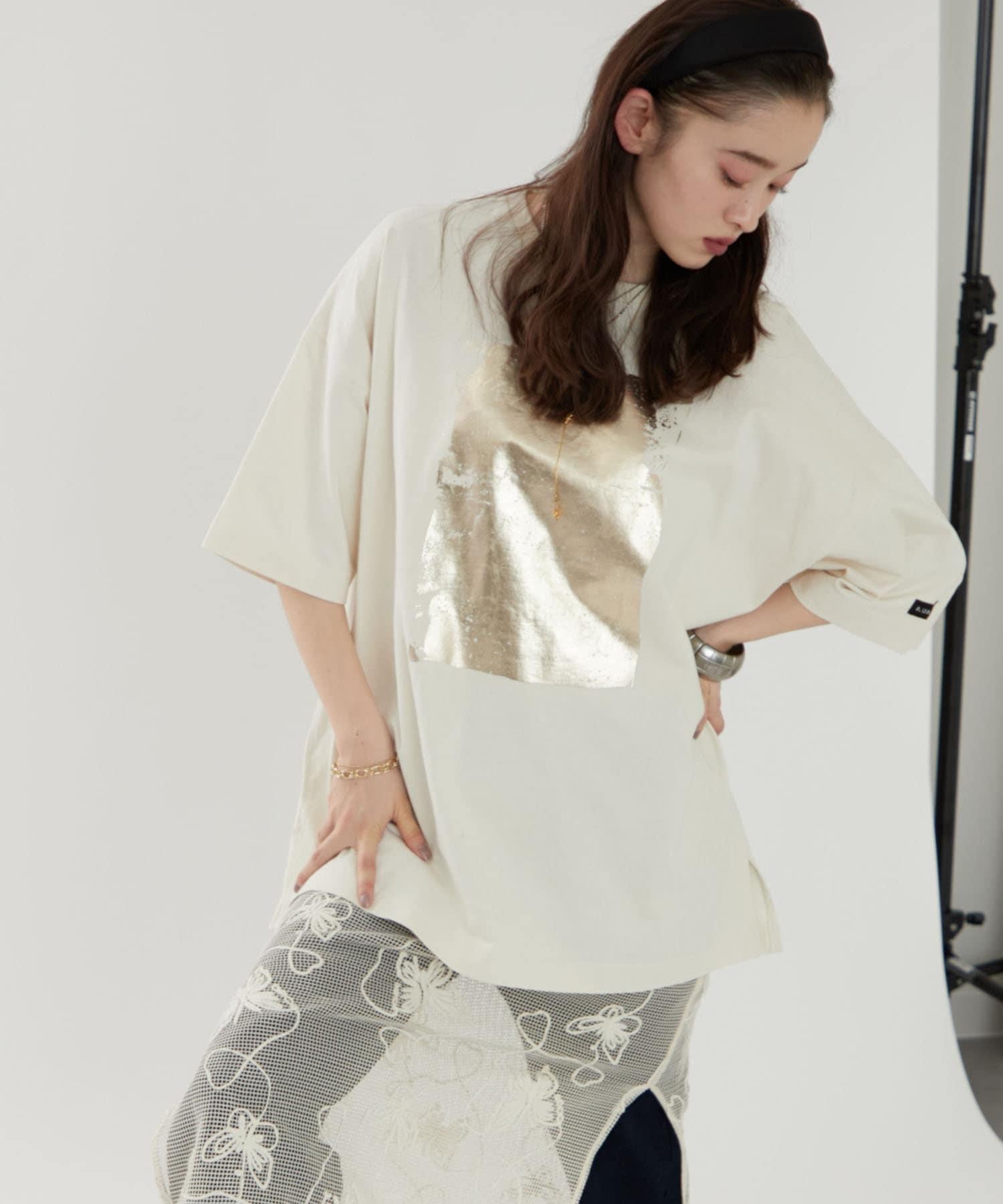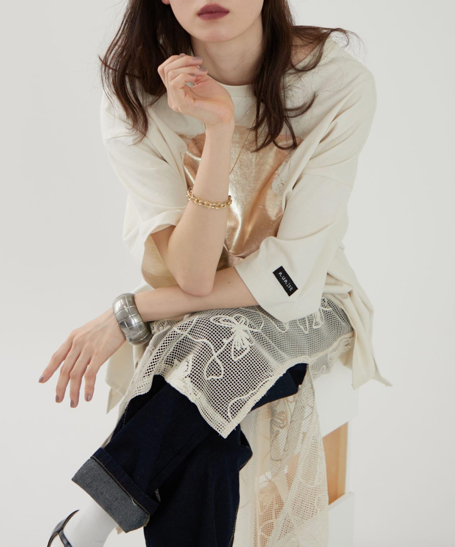 【NUNIFE/】箔印花大T-shirt