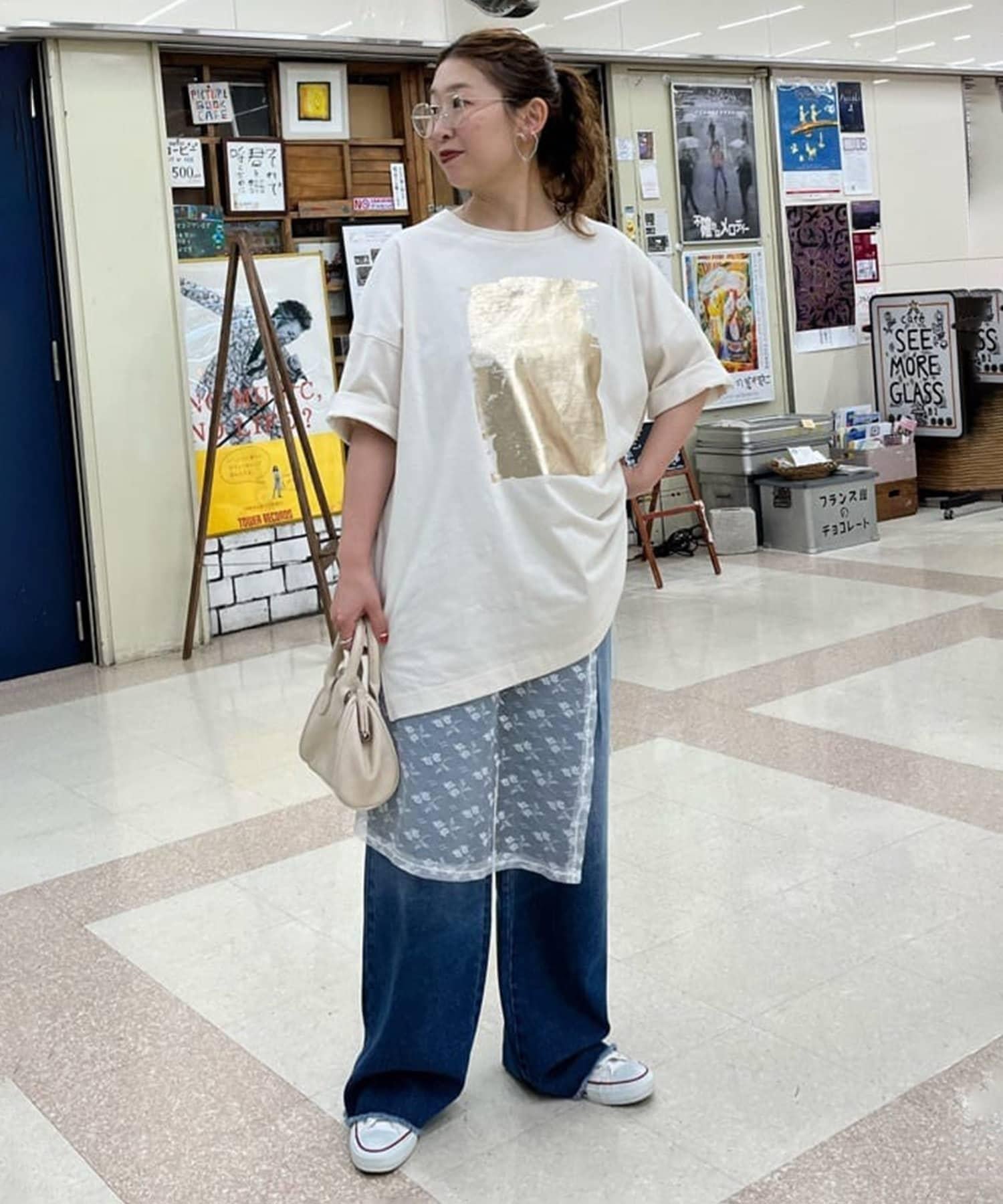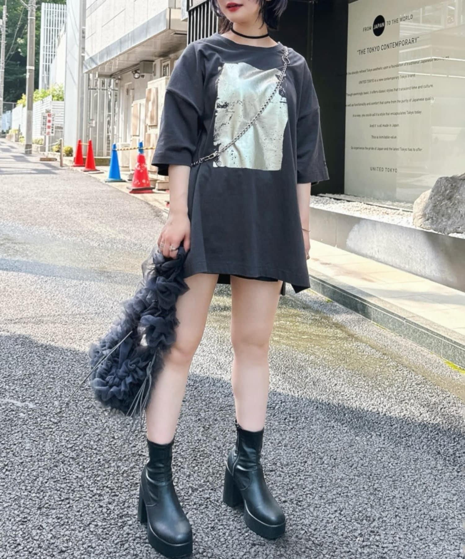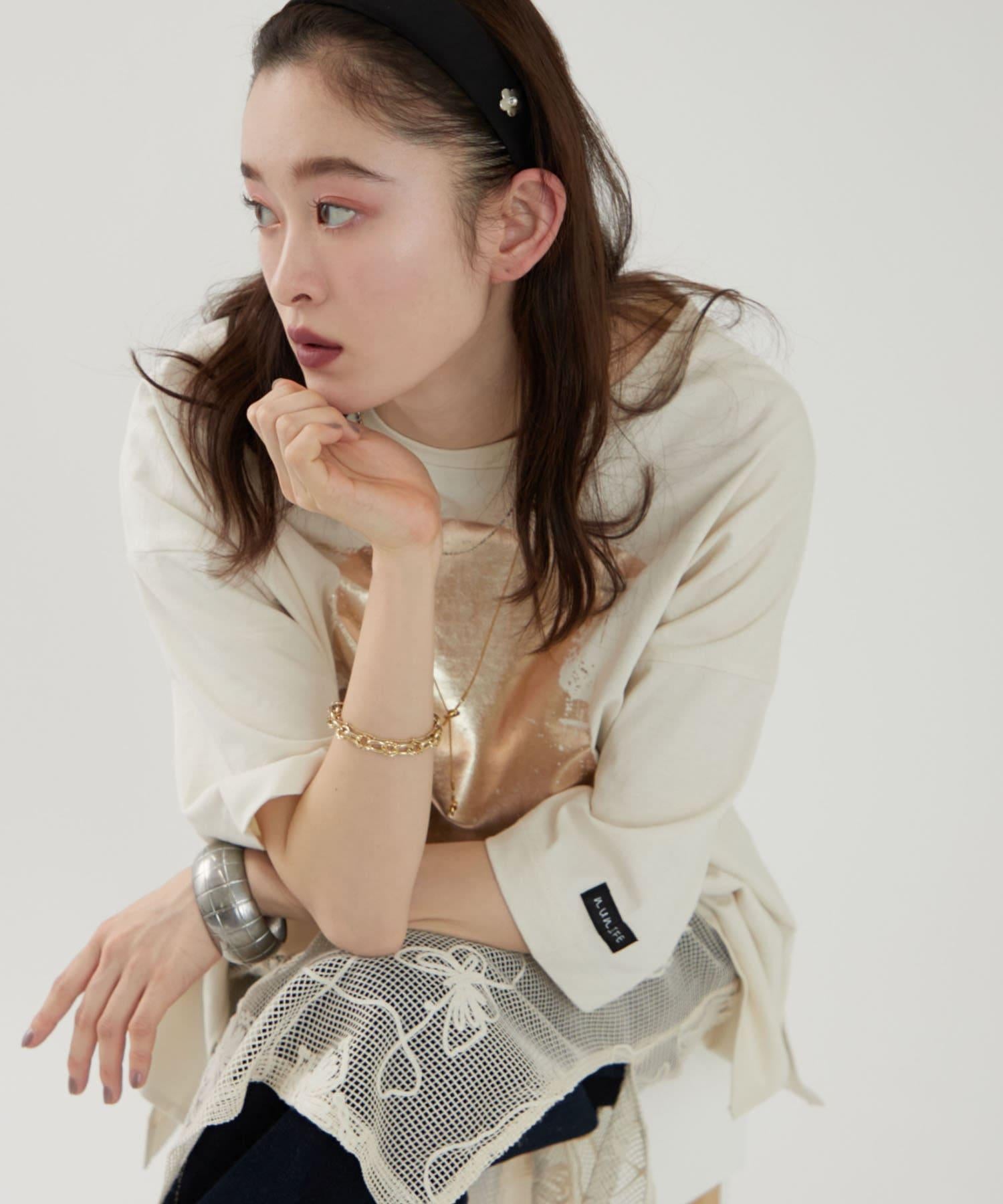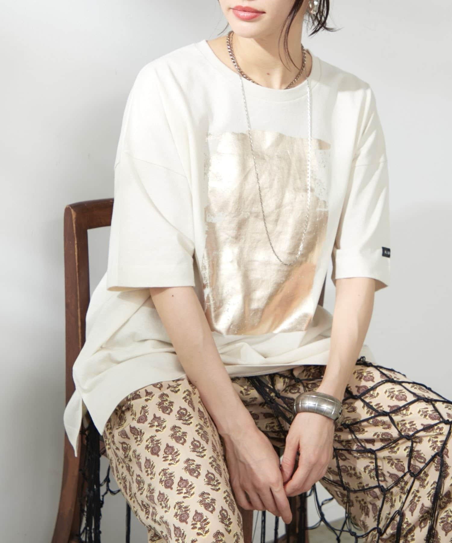 【NUNIFE/】箔印花大T-shirt