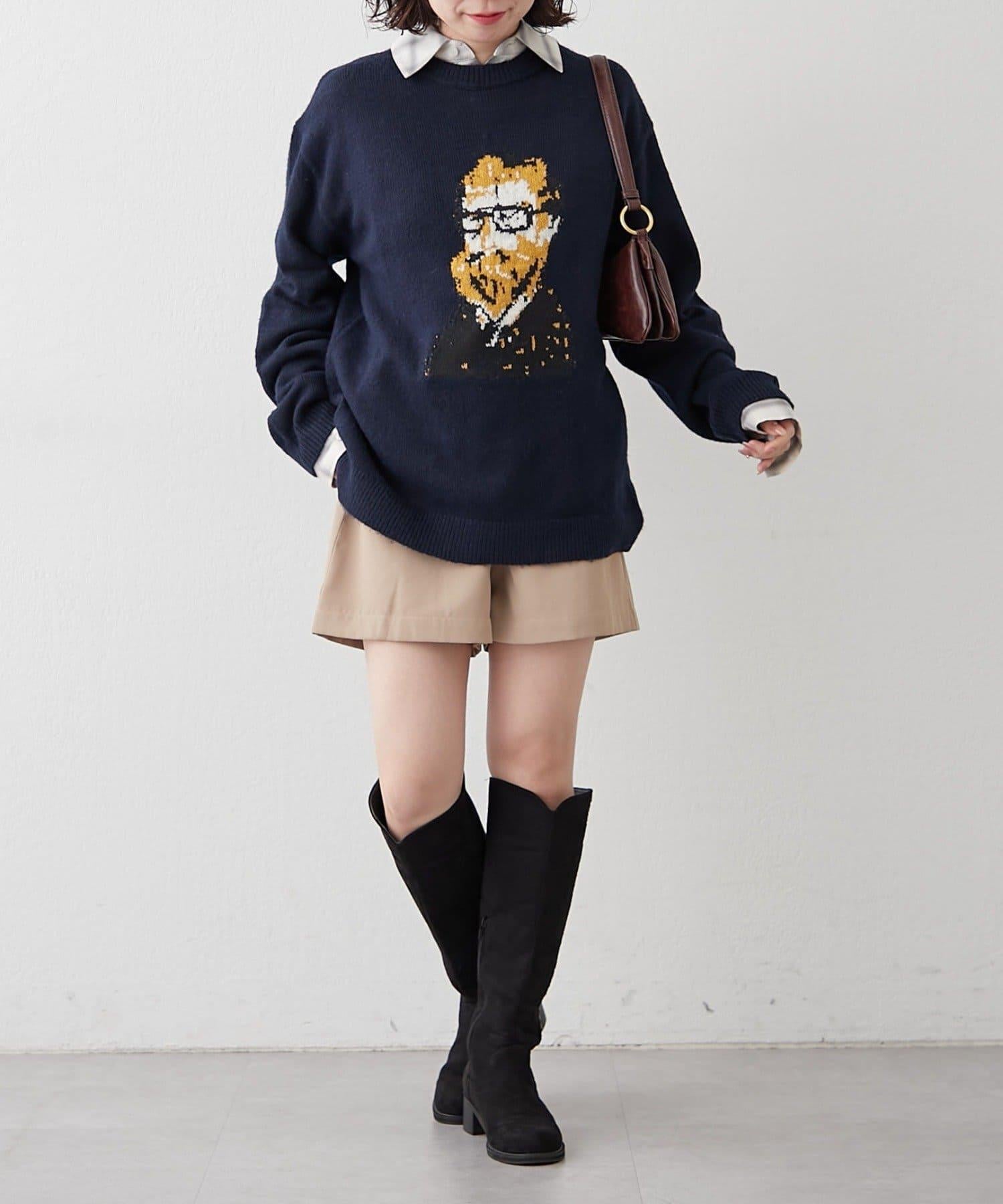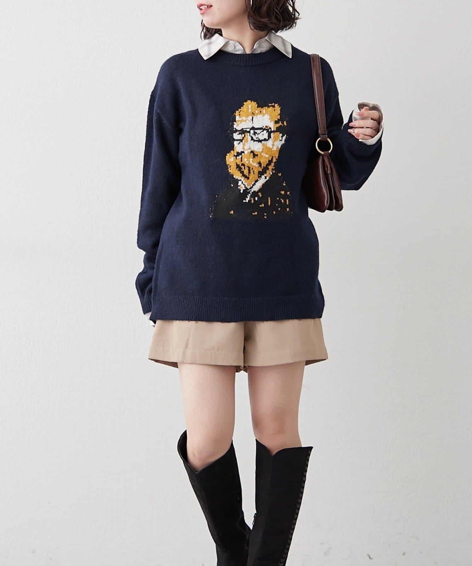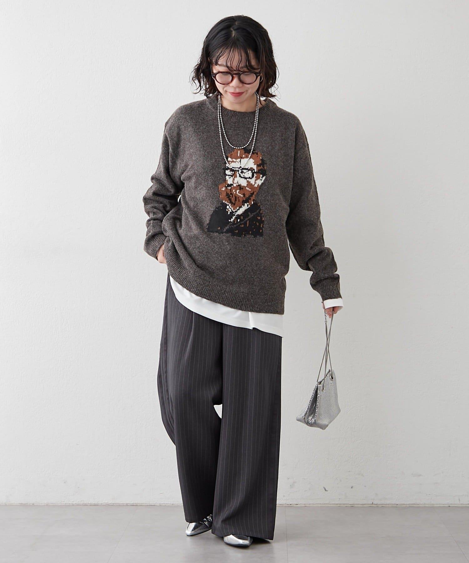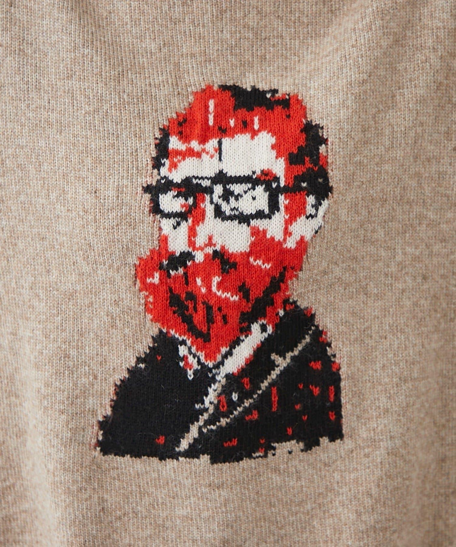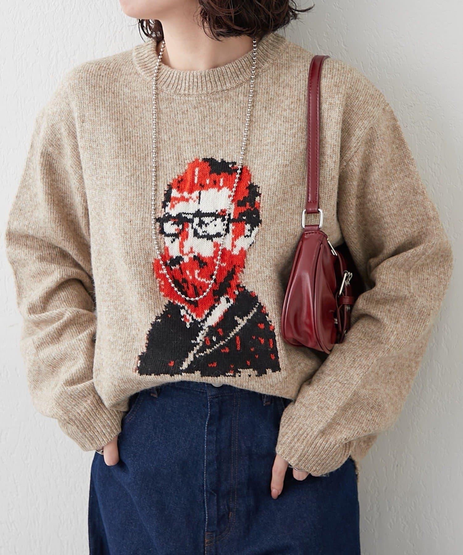 這款針織衫以幽默的肖像畫吸引眼球,充滿了成年人的俏皮精神。