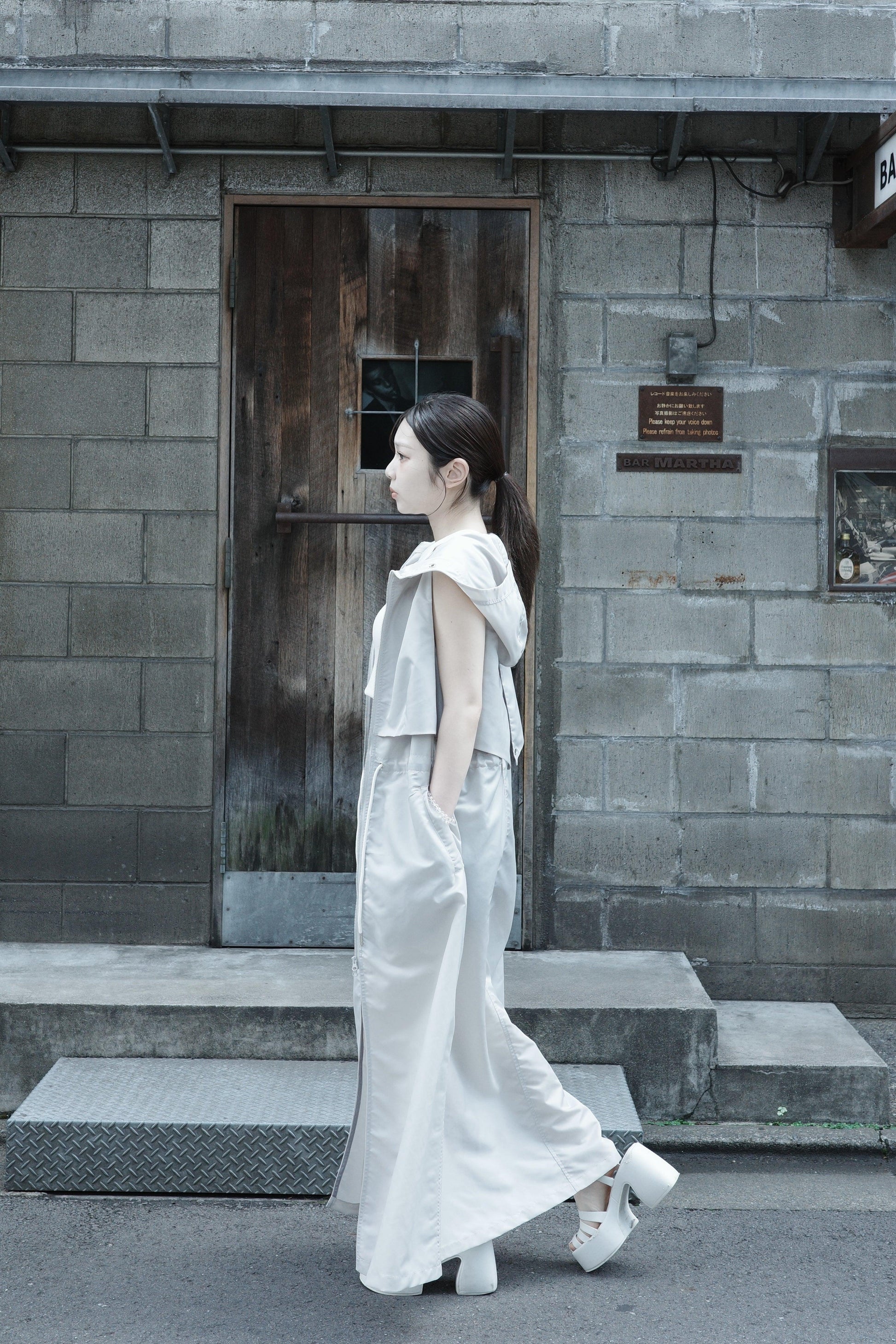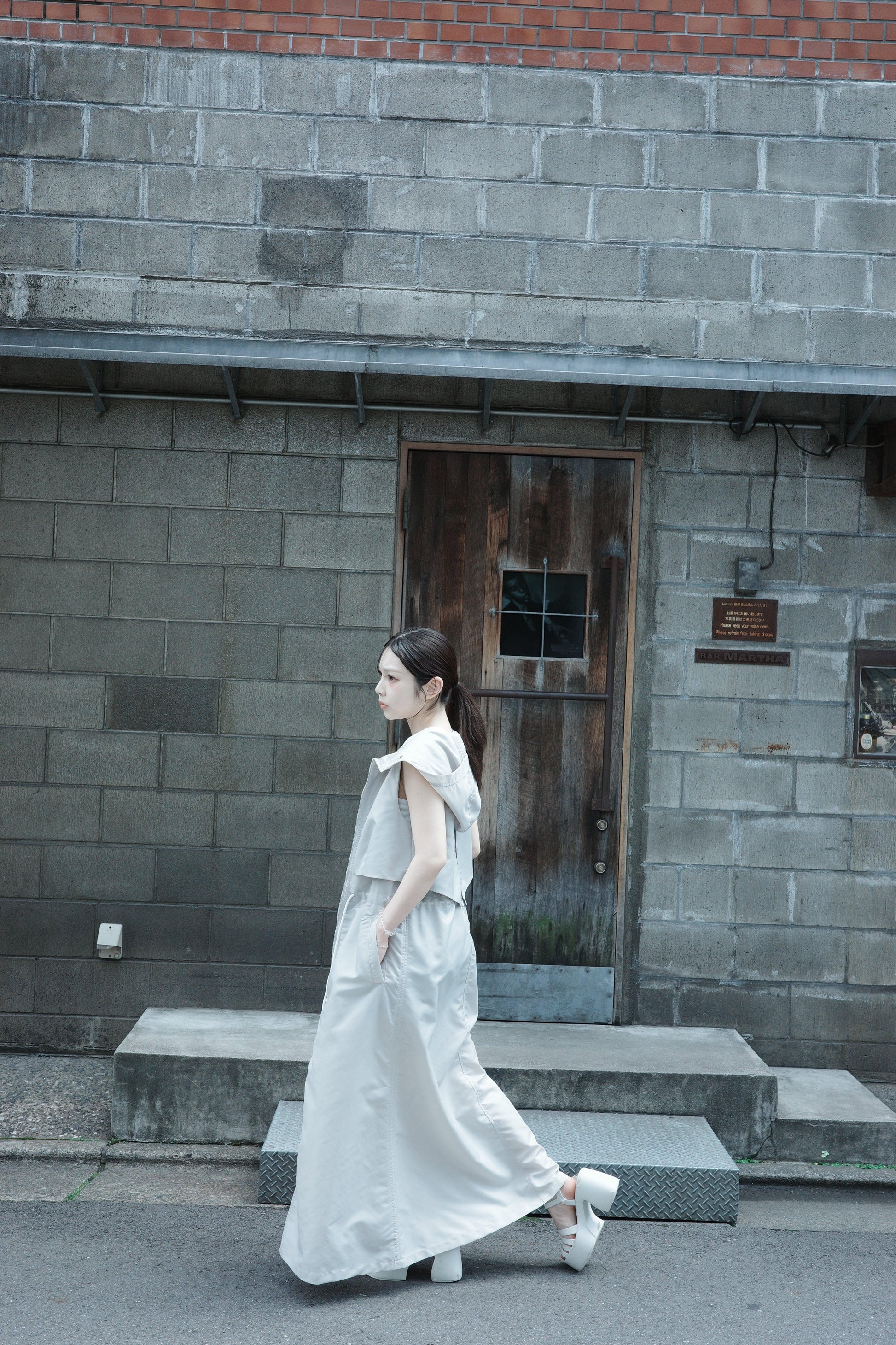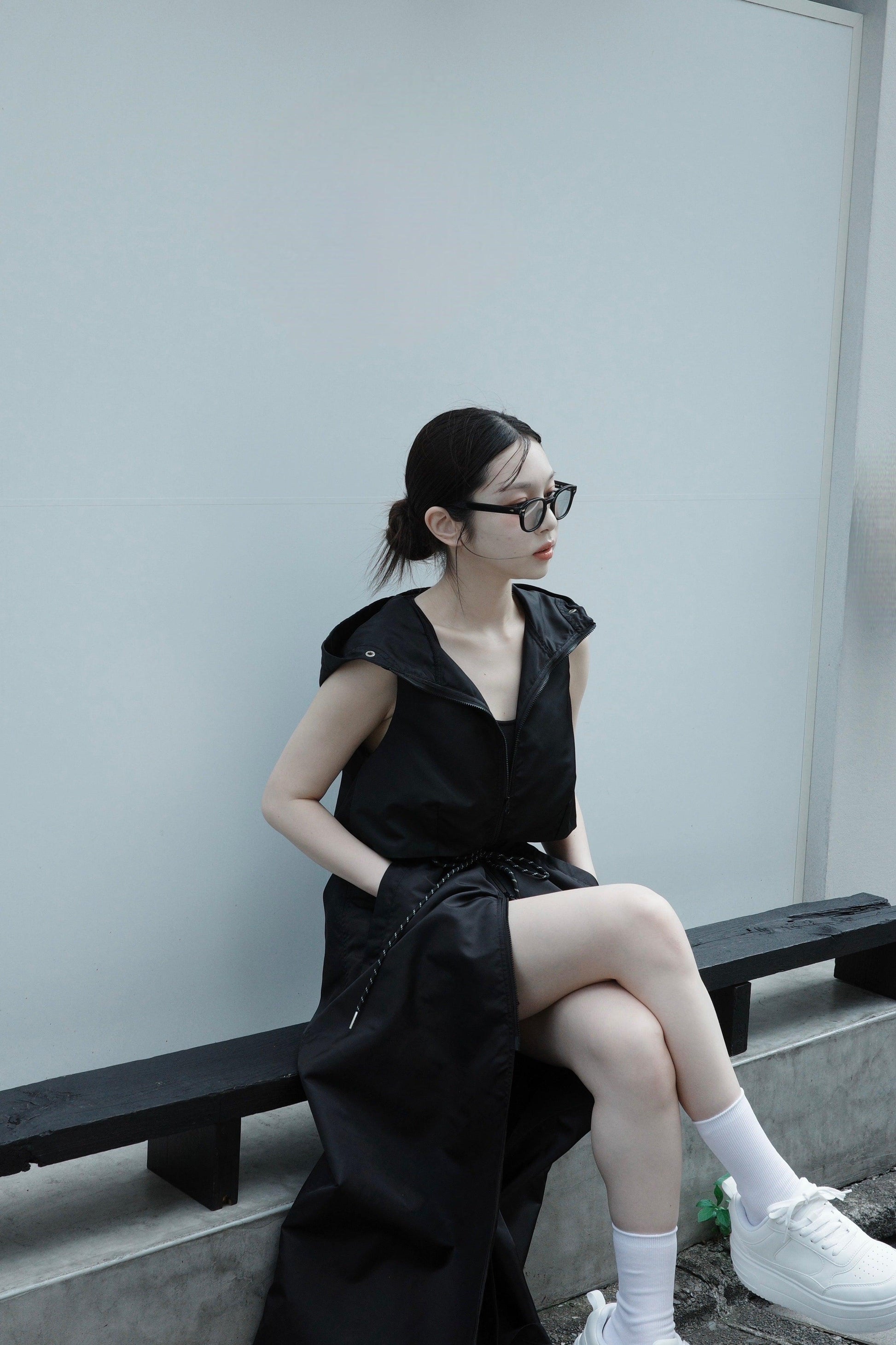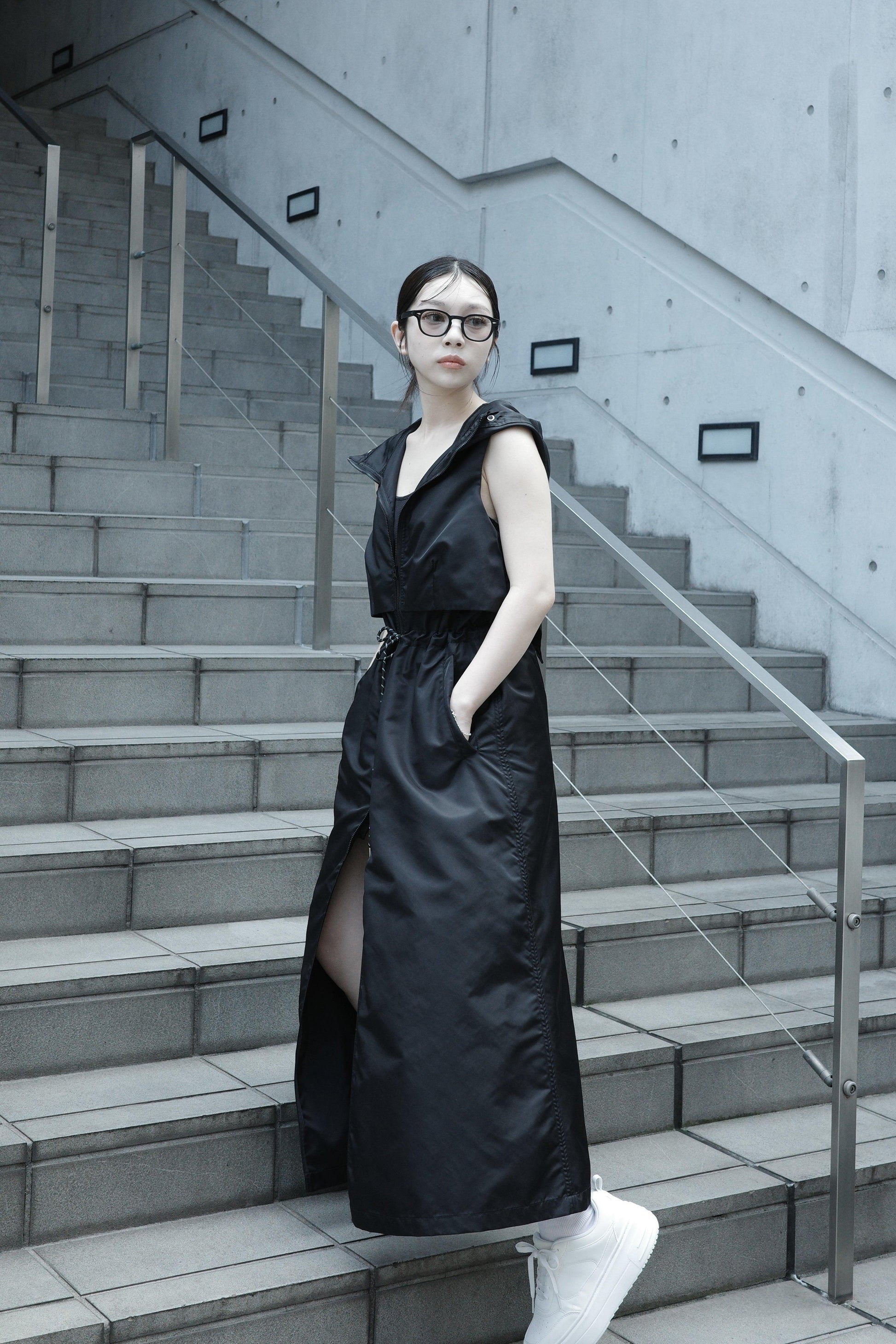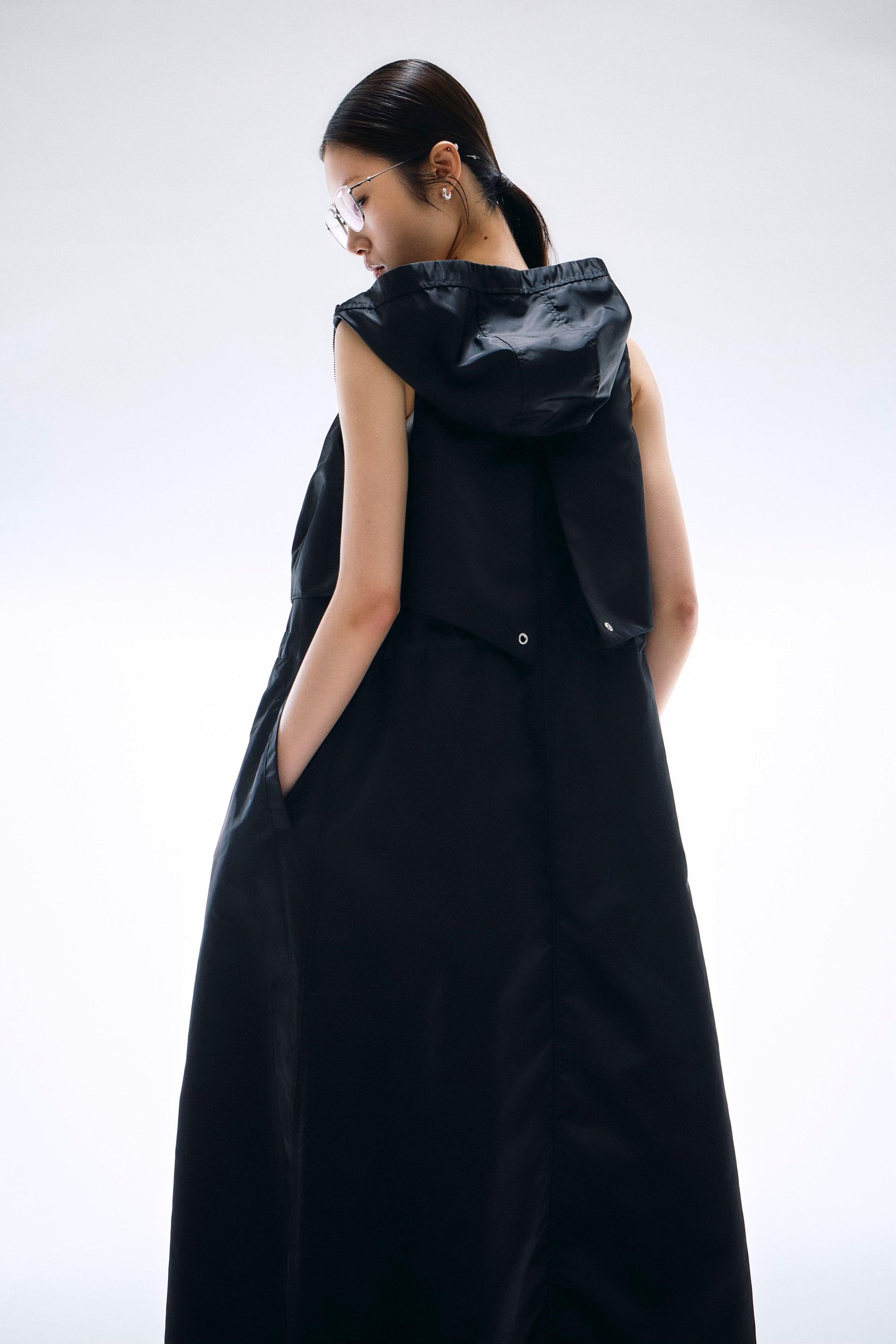 長款套頭連衣裙,採用輕質尼龍面料剪裁而成,既動感又精緻。
