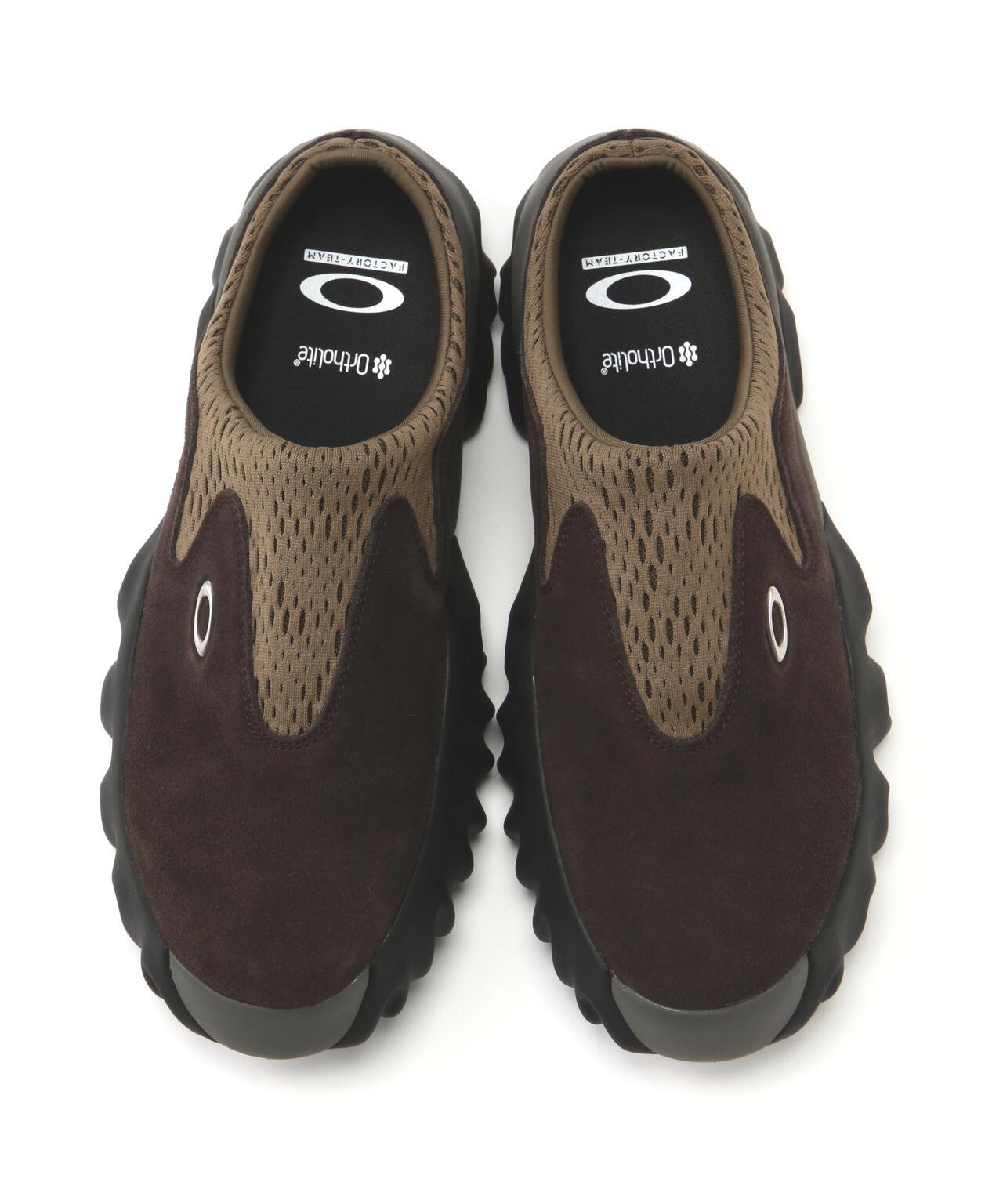 OAKLEY FACTORY TEAM Chop Saw MuleBrain Dead 和 Oakley Factory Team 是由 OAKLEY 設計師團隊組成的智囊團。奧克利工廠團隊。這款更新款式基於奧克利👍初的 Chop Saw,是通過使用不同材料慶祝進化的騾子版本。Chop Saw 騾子鞋擁有與原設計相同的醒目外觀,且無後跟,是輕鬆無壓力的鞋履縮影。獨特的帶襯墊氯丁橡膠鞋口,可根據腳型進行不均勻拉伸,奢華材質