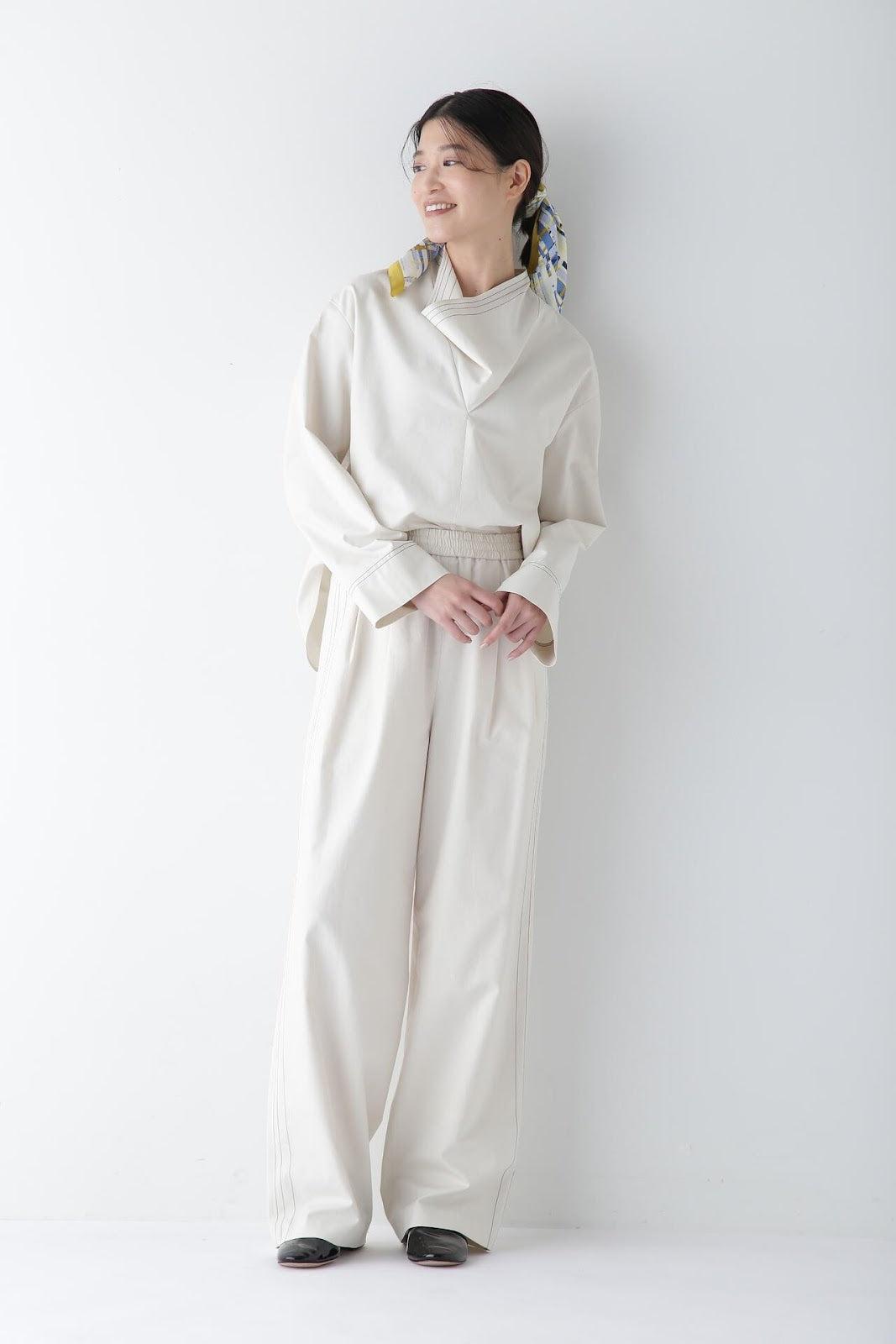 寬鬆套頭衫,清新的頸部設計吸引眼球 [設計要點] 這款寬鬆套頭衫採用垂墜、細緻的頸部設計和色彩協調的縫線。面料由杯紡紗和有機棉紗混紡而成,表面美觀,絨毛少,豐滿度高,手感柔軟,有墜感。這是一款工作和休閒兩相宜的設計上衣,只需一件就能穿出不同的風格。此外,還建議與同種面料的長褲搭配使用。