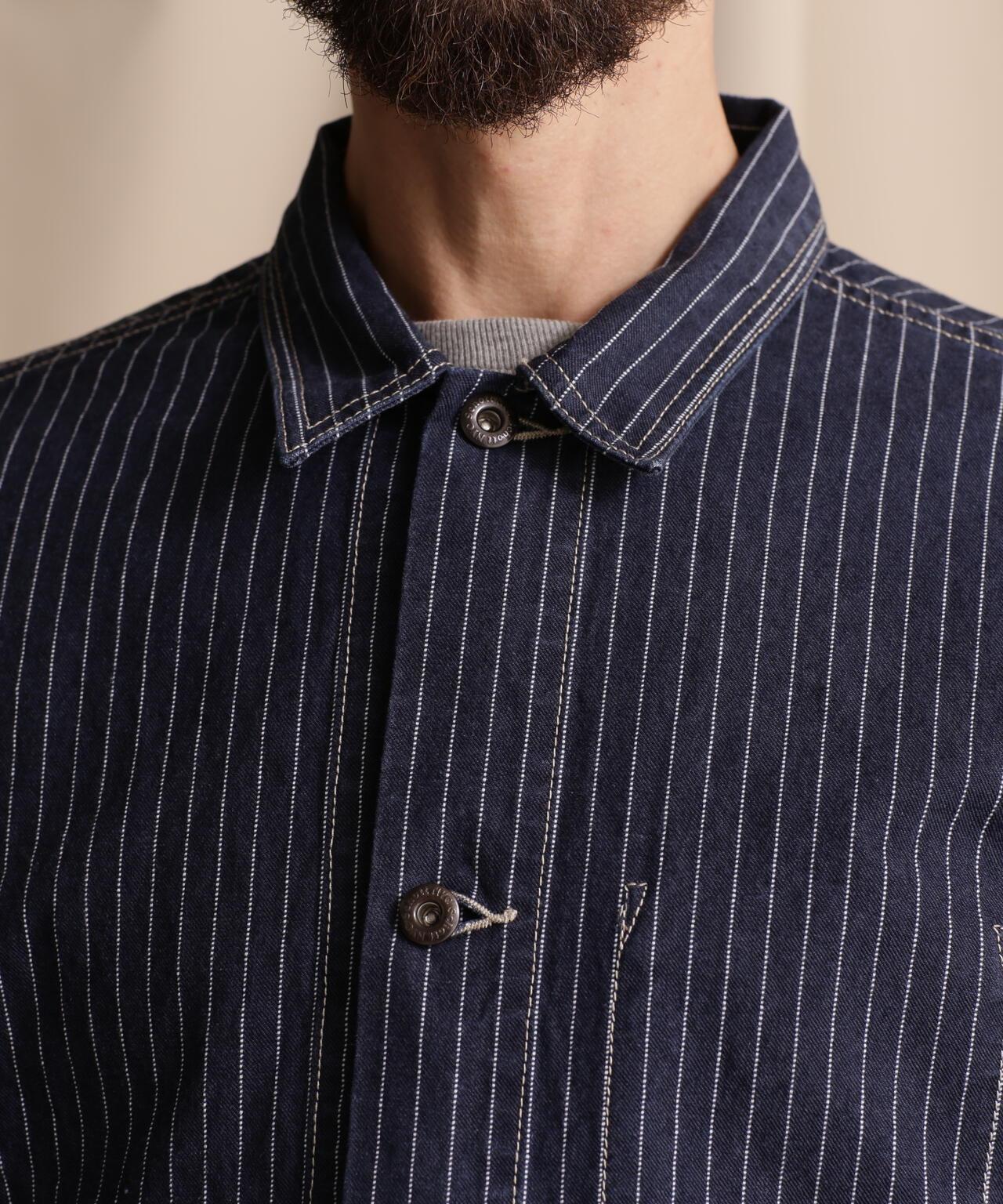 採用細條紋山胡桃木牛仔布製成,這是肖特公司獨創的面料。條紋是通過編織而非印花表現出來的。它越染越舊,越穿越老。長度短、寬度寬,剪裁注重美國典型的尺寸平衡。BLACK 採用硫化染料,ONE WASH INDIGO 採用靛藍染料,並加入弱加工,以產生擾動效果。肖特是騎手夾克的代名詞,其歷史始於 1913 年,由歐文-肖特和傑克-肖特兄弟在紐約創立。 👍初,它只是一家生產雨衣的工廠,但在 1928 年,它成為世界上👍家生產前拉鍊夾克的工廠。