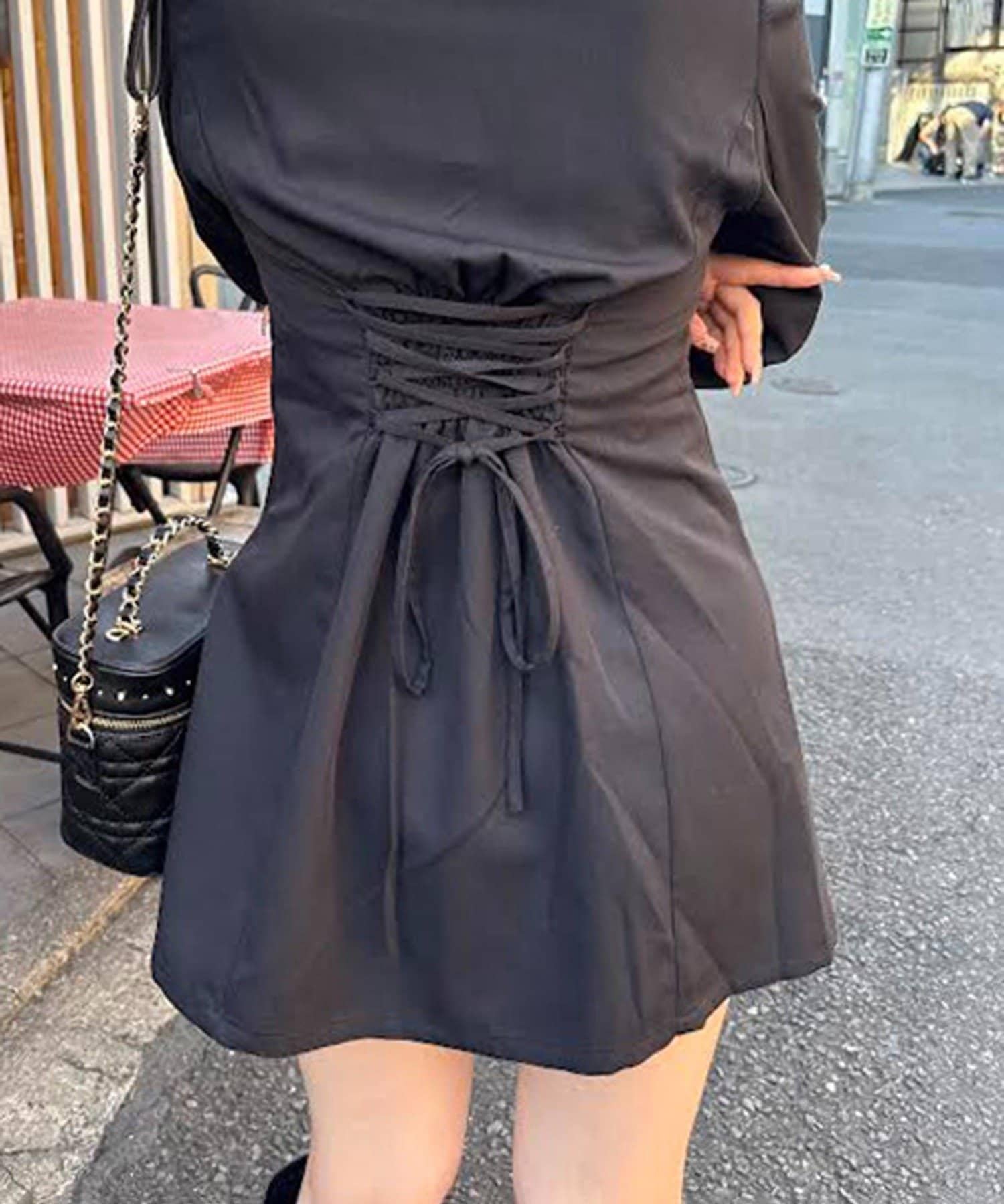 【omiyu企畫】背部繫帶襯衫連衣裙