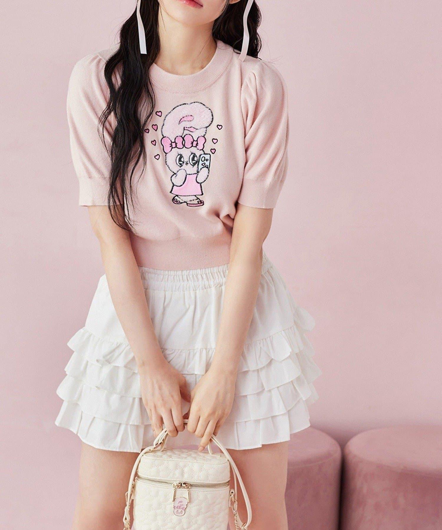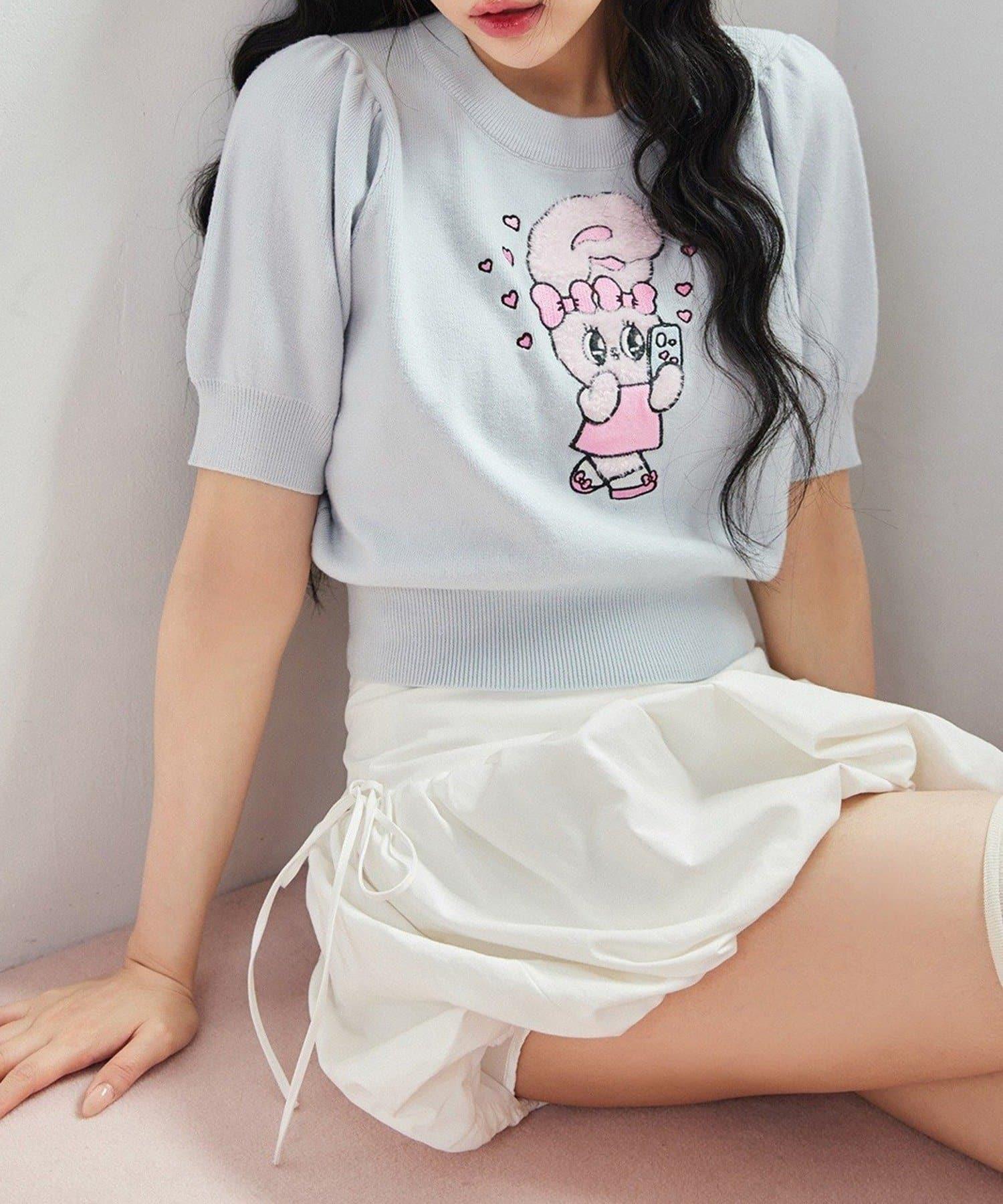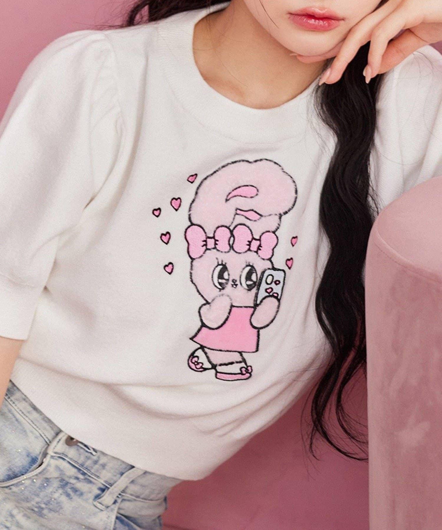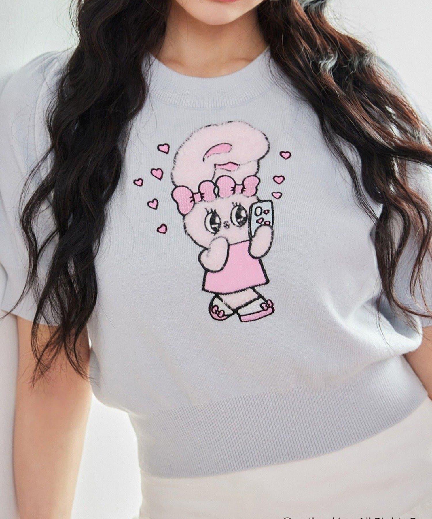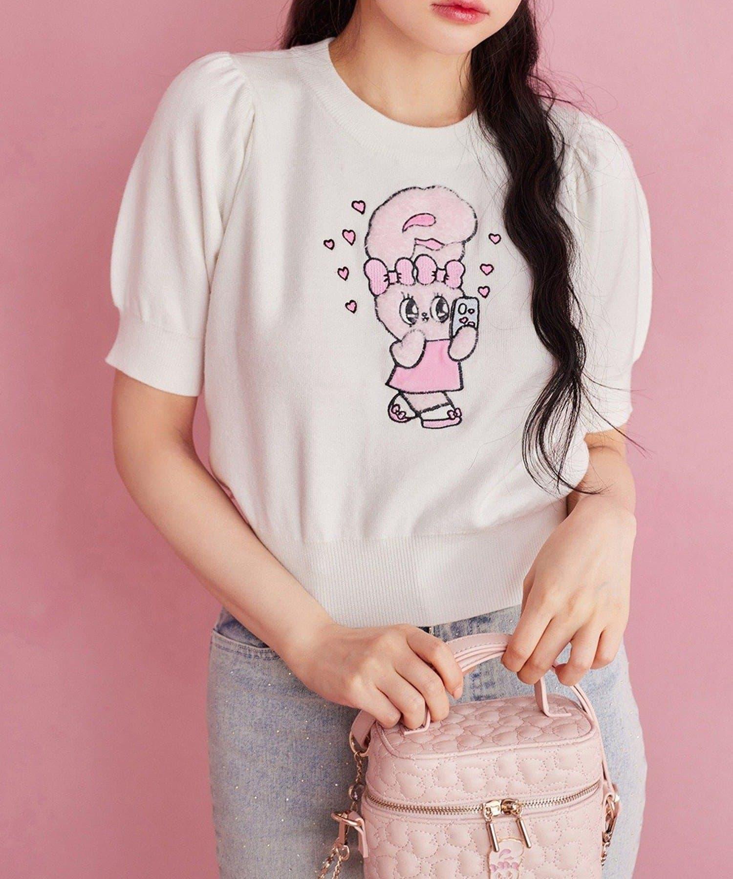 短袖針織衫,以緞帶兔子貼花為設計點。