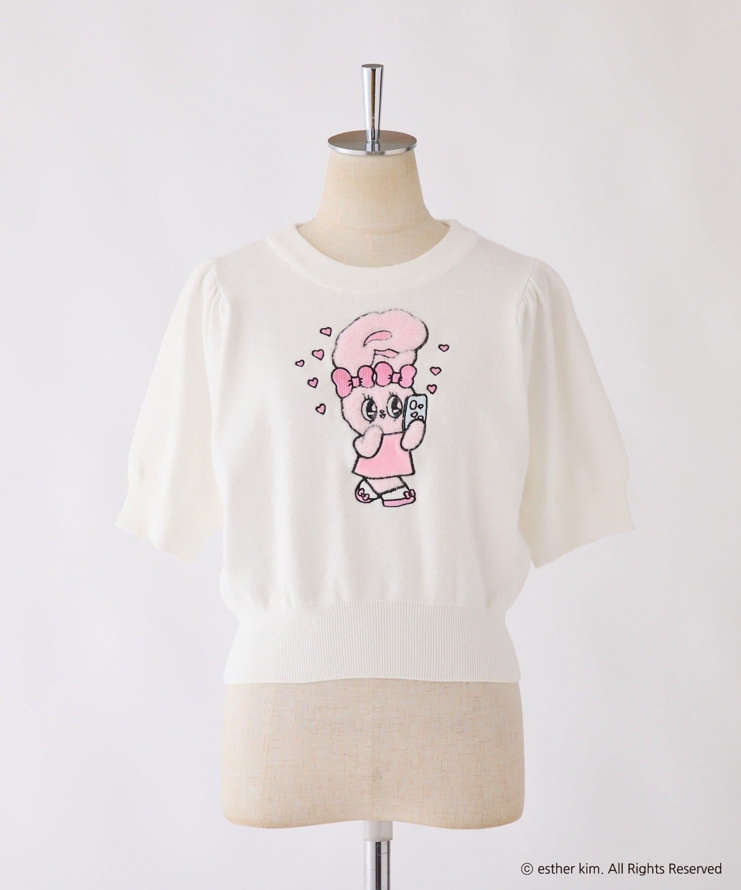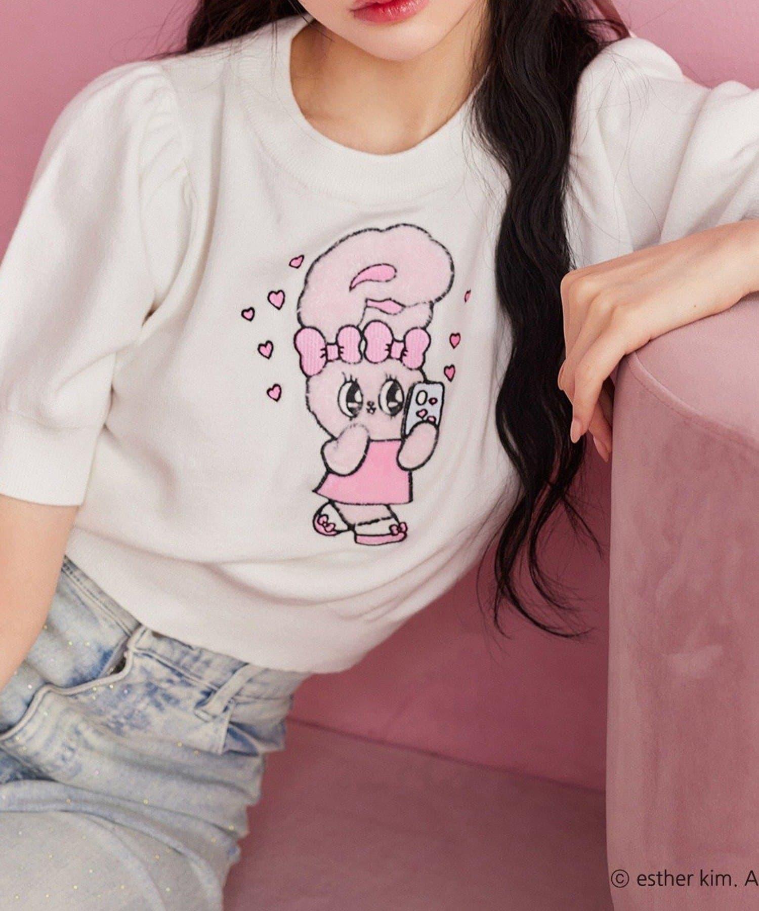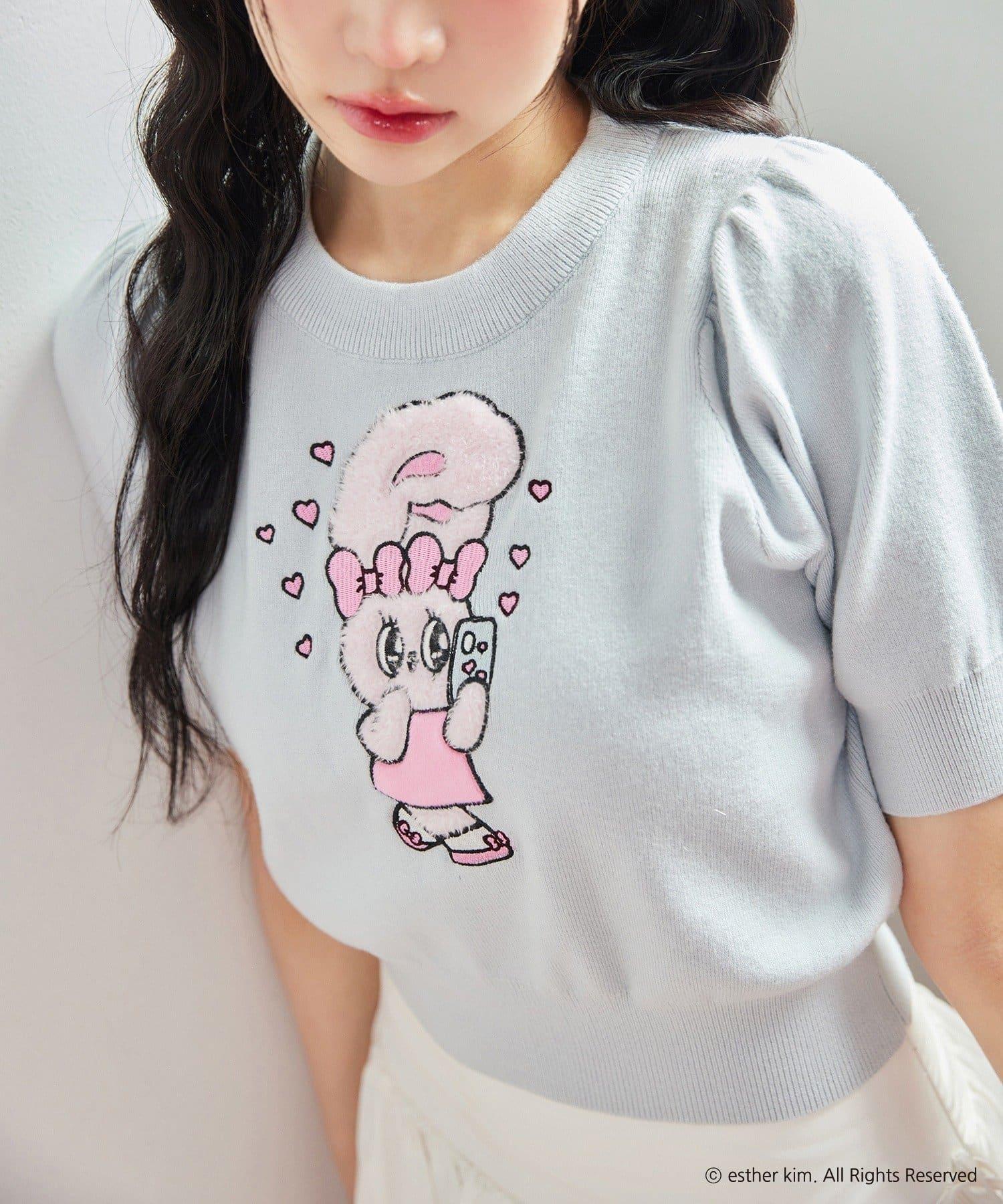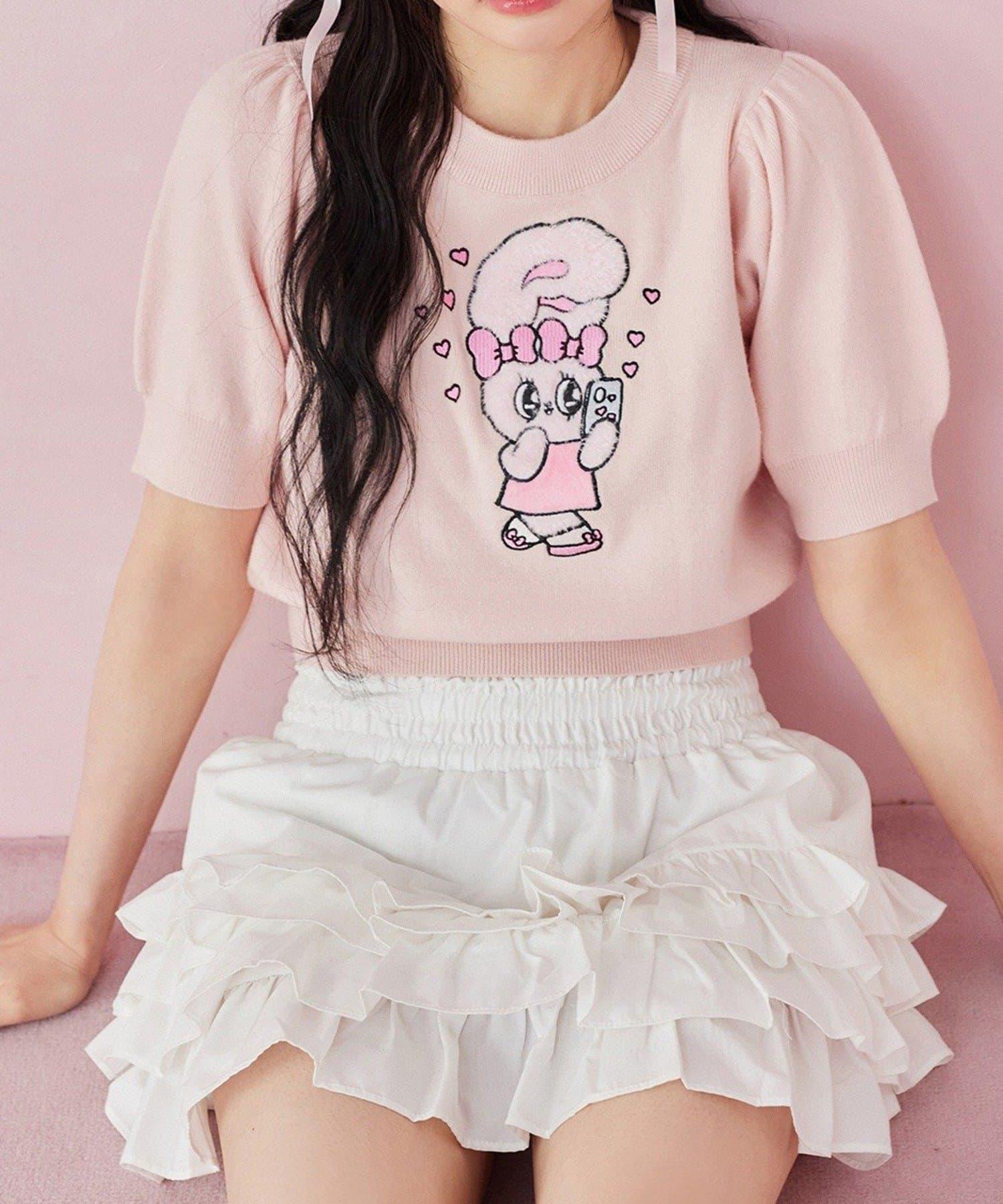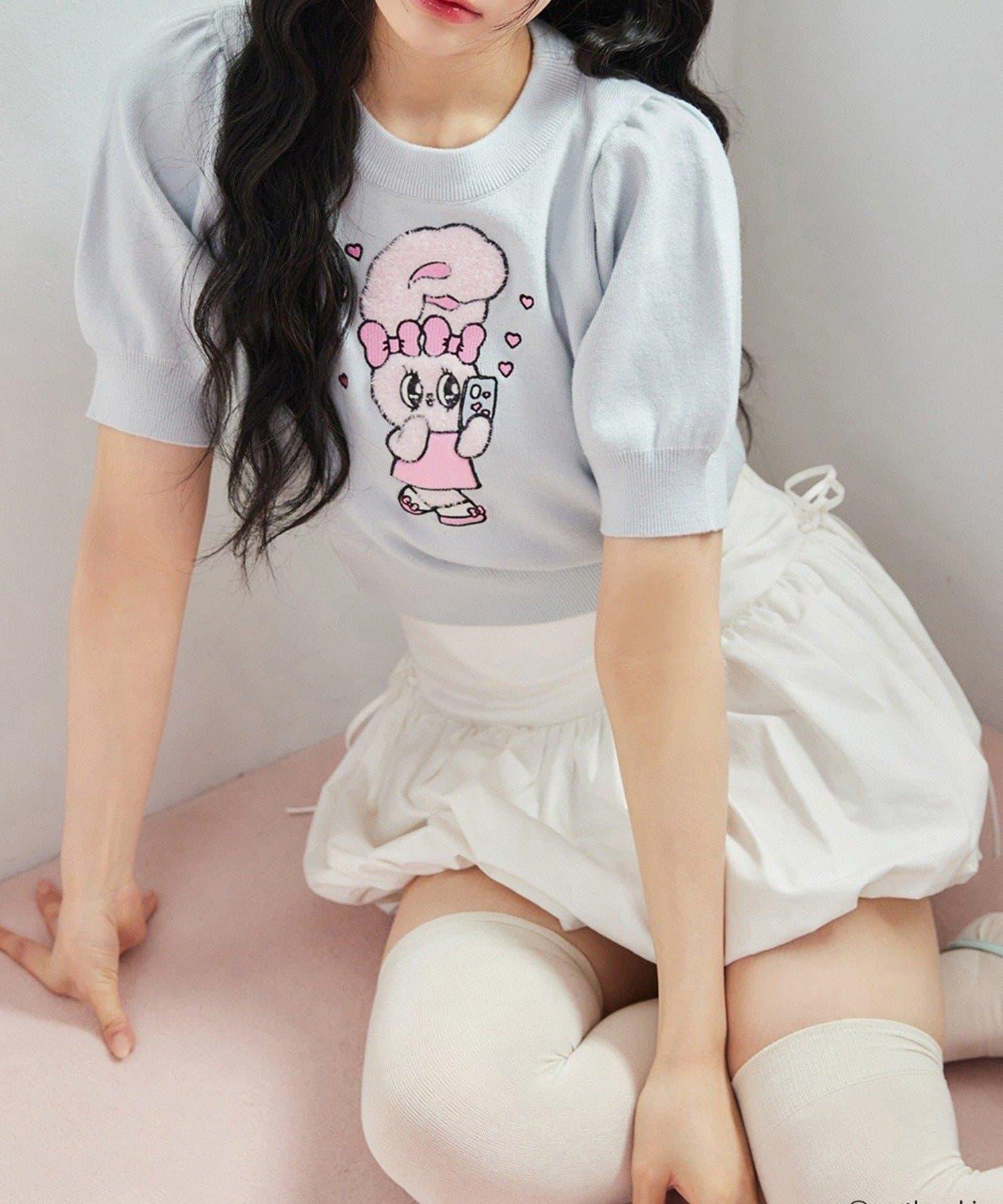 短袖針織衫,以緞帶兔子貼花為設計點。