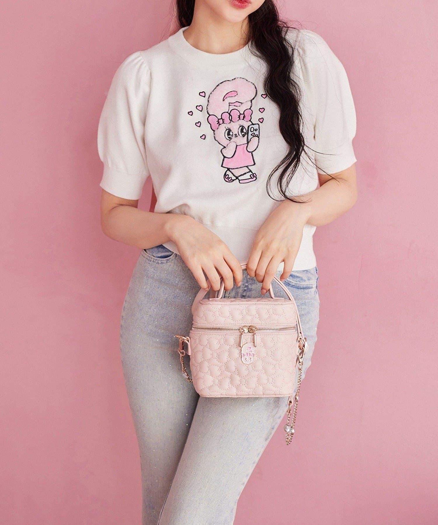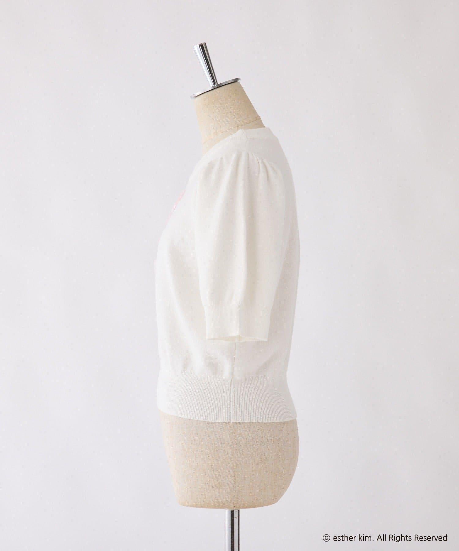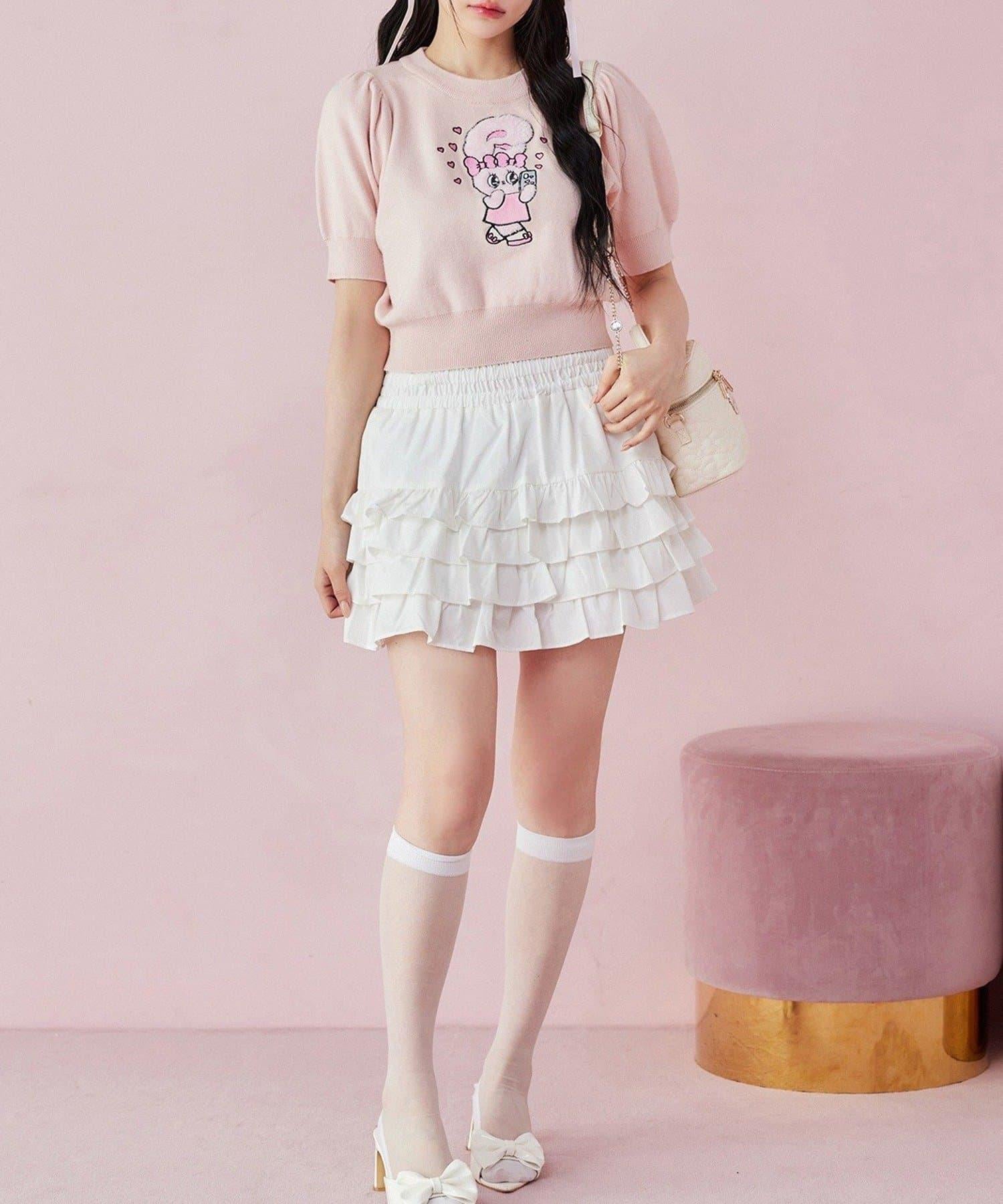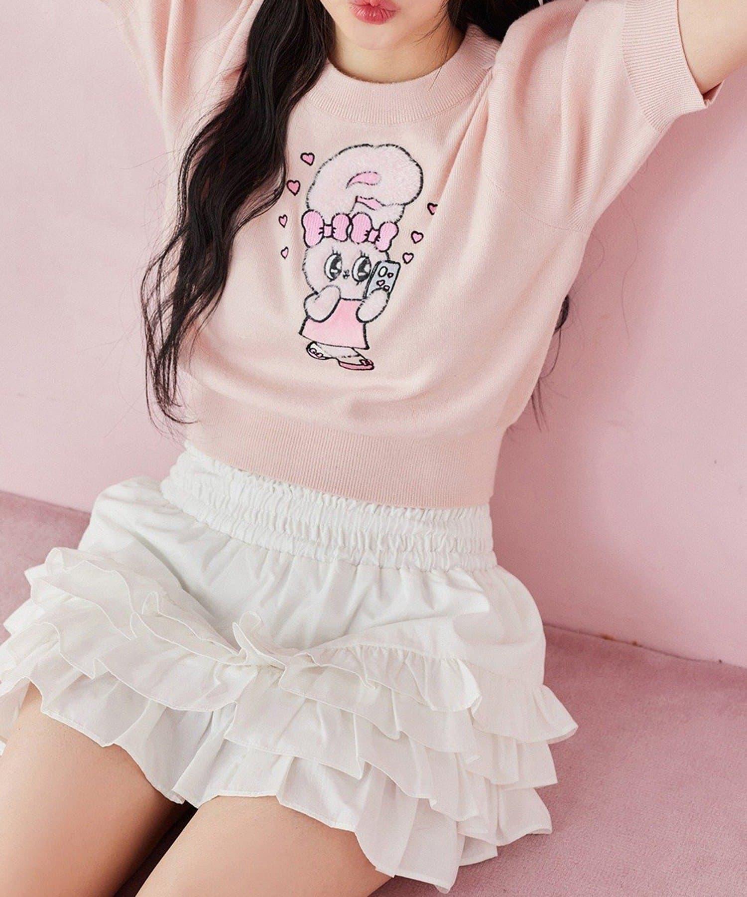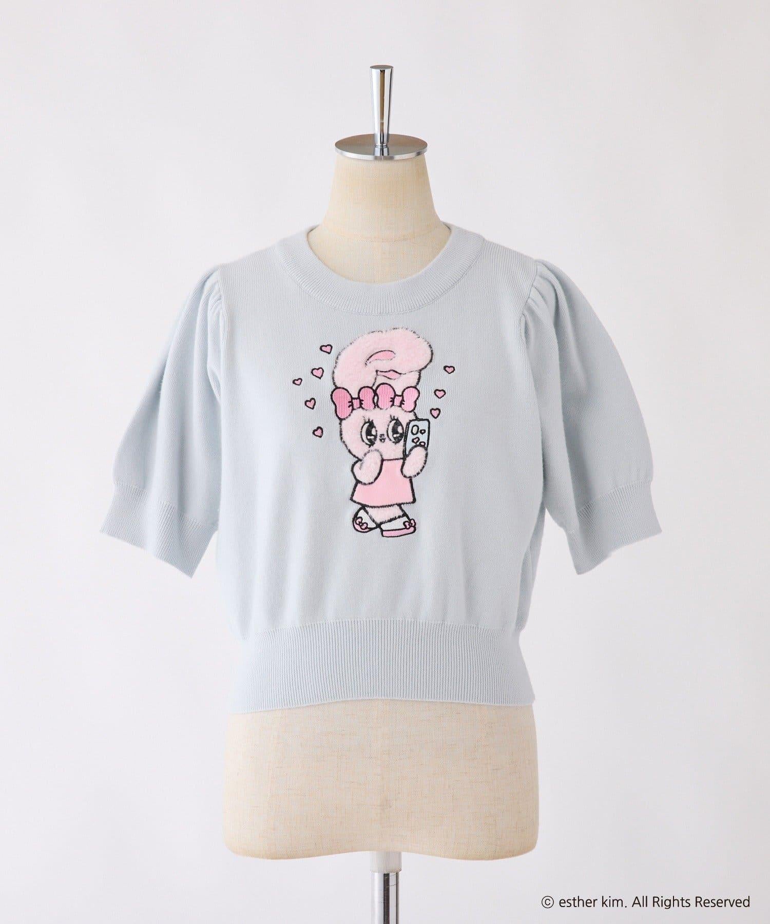 短袖針織衫,以緞帶兔子貼花為設計點。