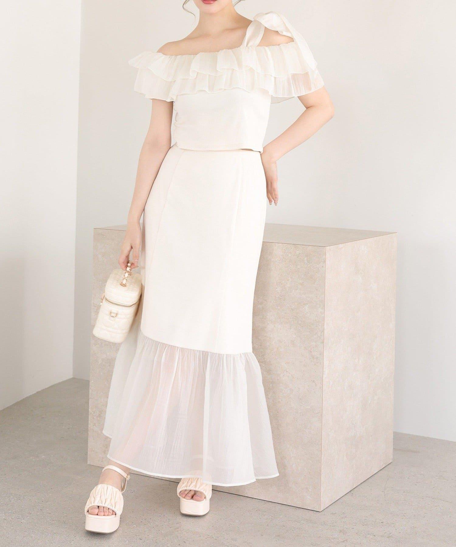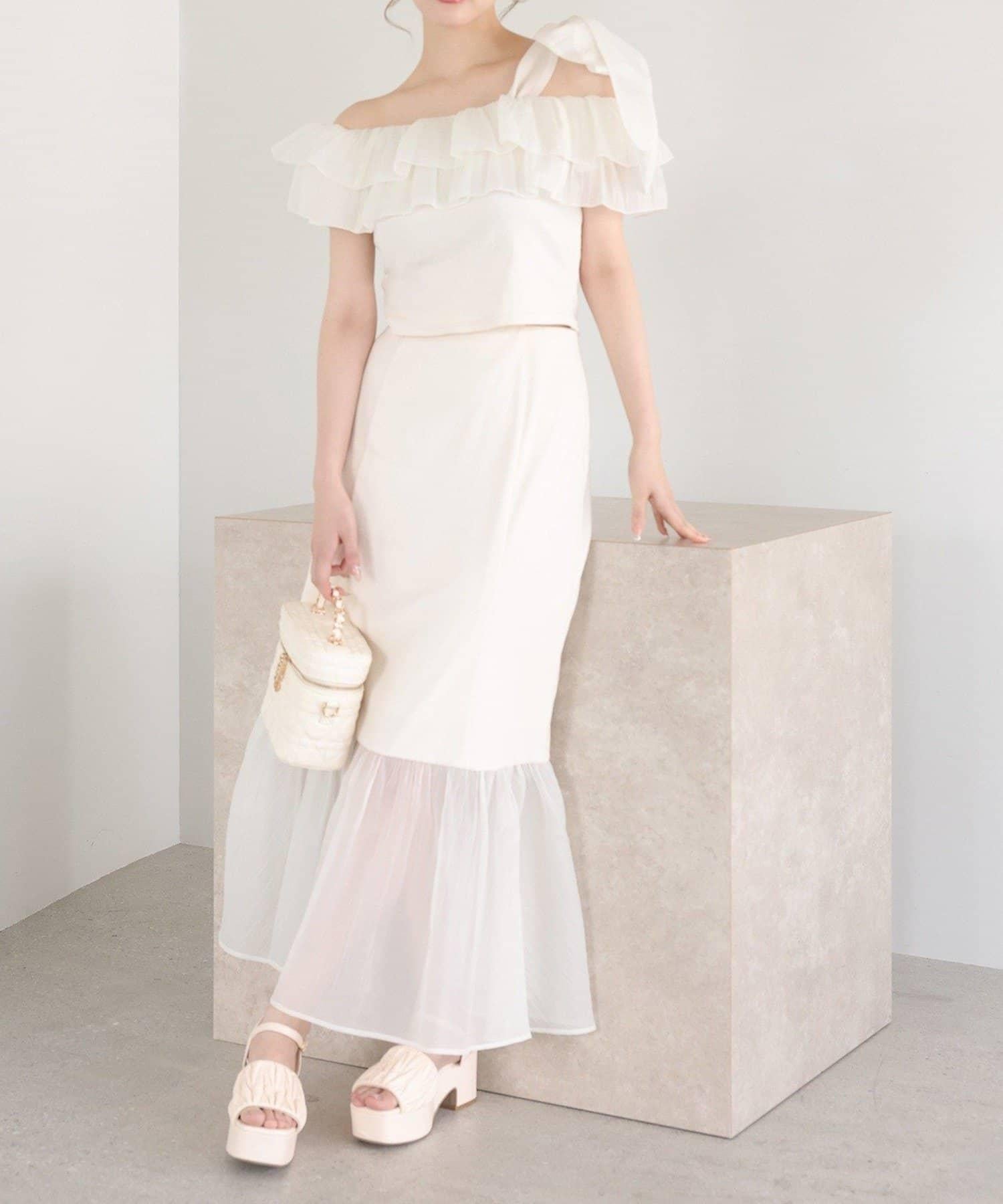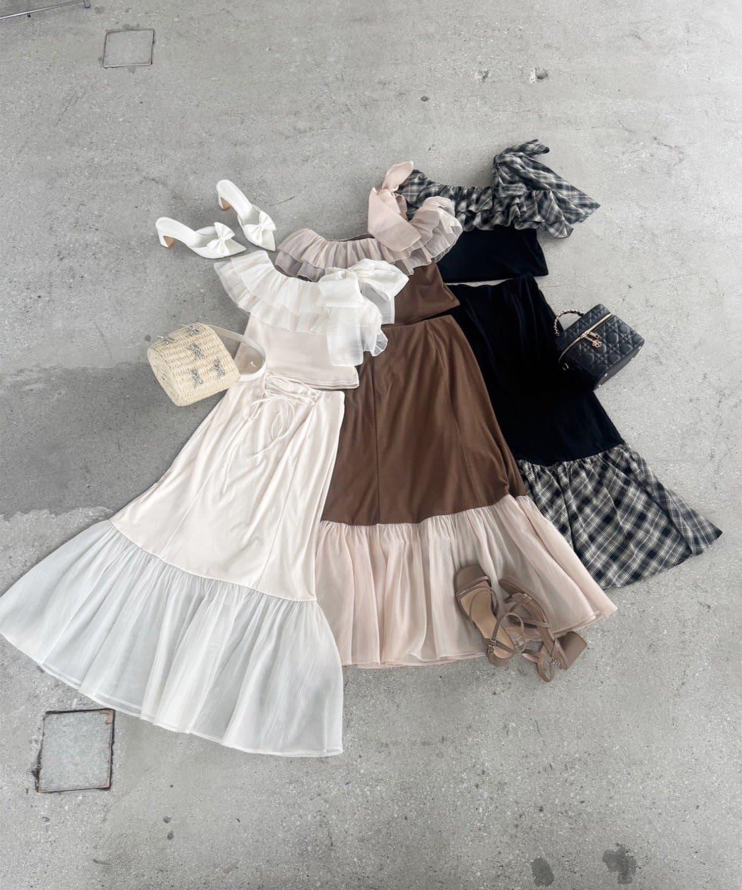 下襬部分由不同的材料製成,蓬鬆度高,給人輕盈柔美的印象。