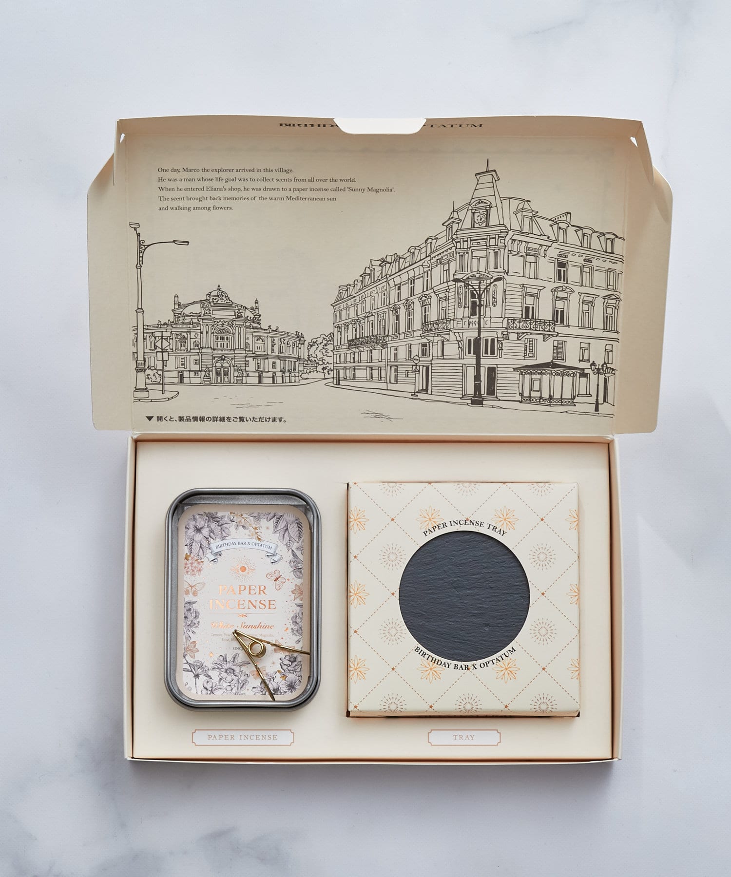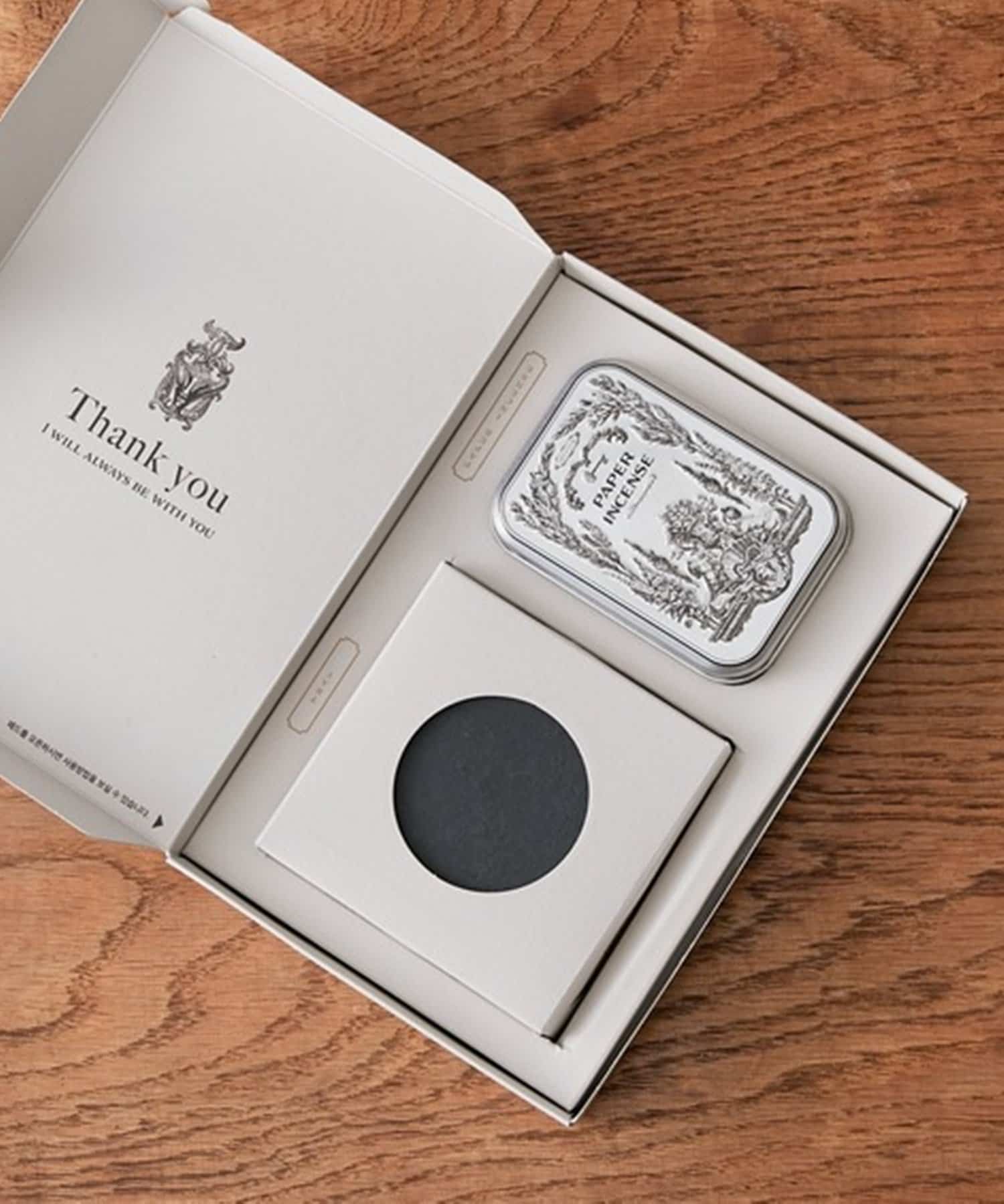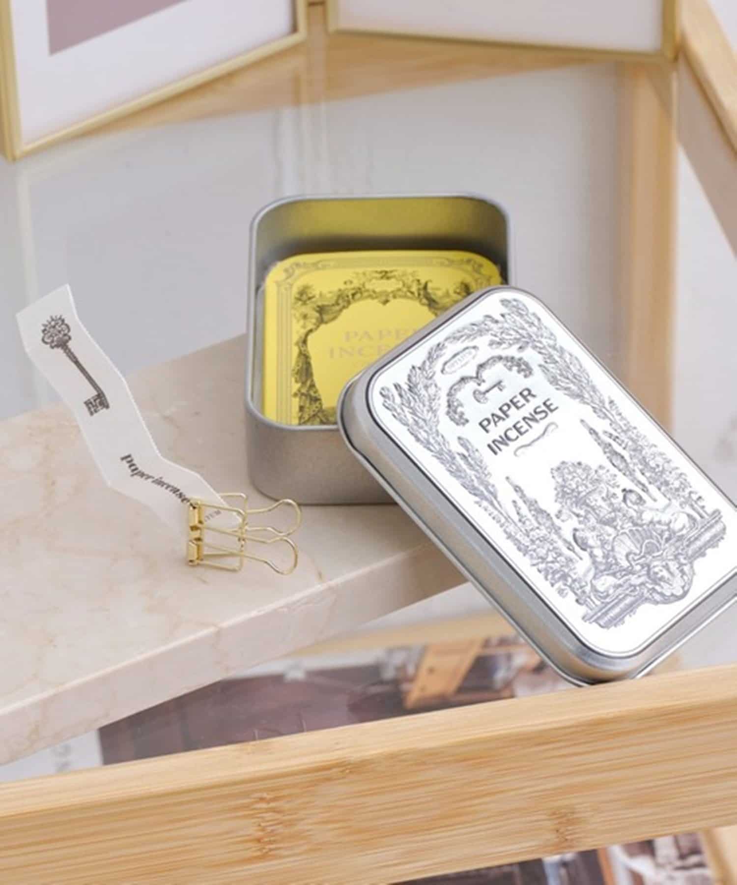套裝包括:錫盒 + 鑷子 + 紙香(48 種香味) + 托盤(天然石)。