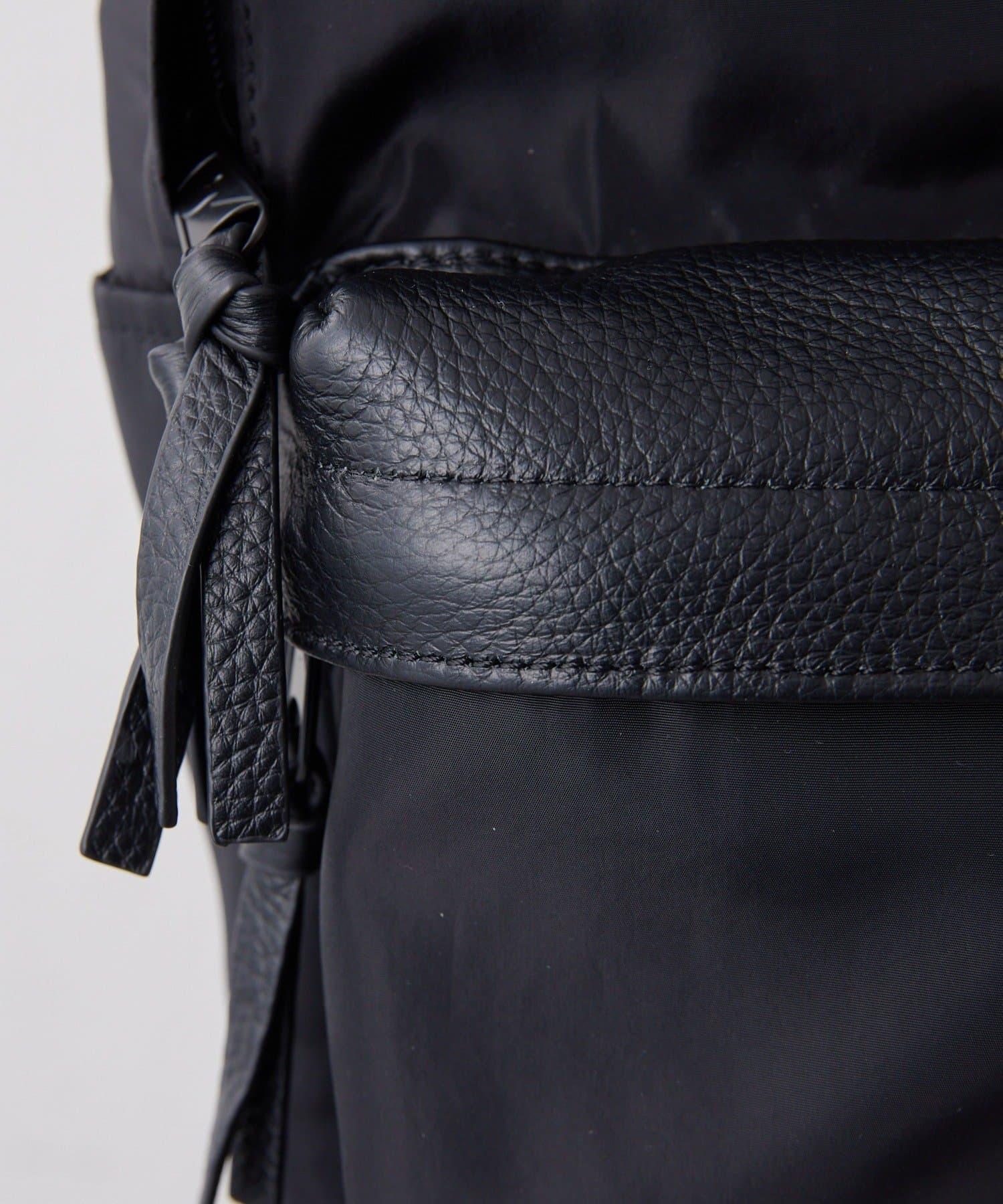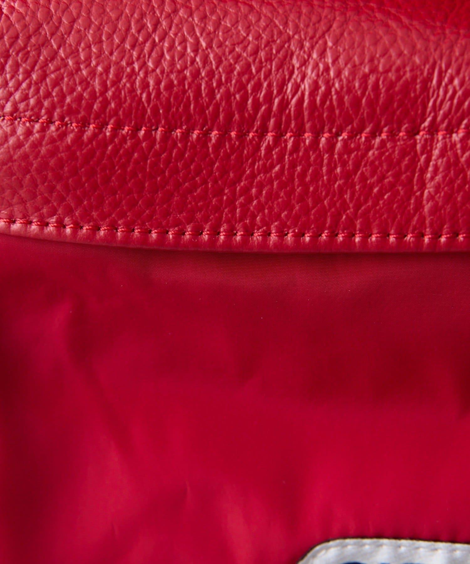 正面的拉手和立體口袋採用真皮材質,增添了奢華感。