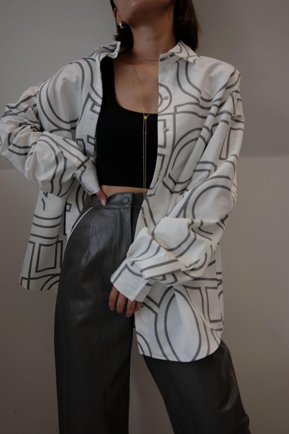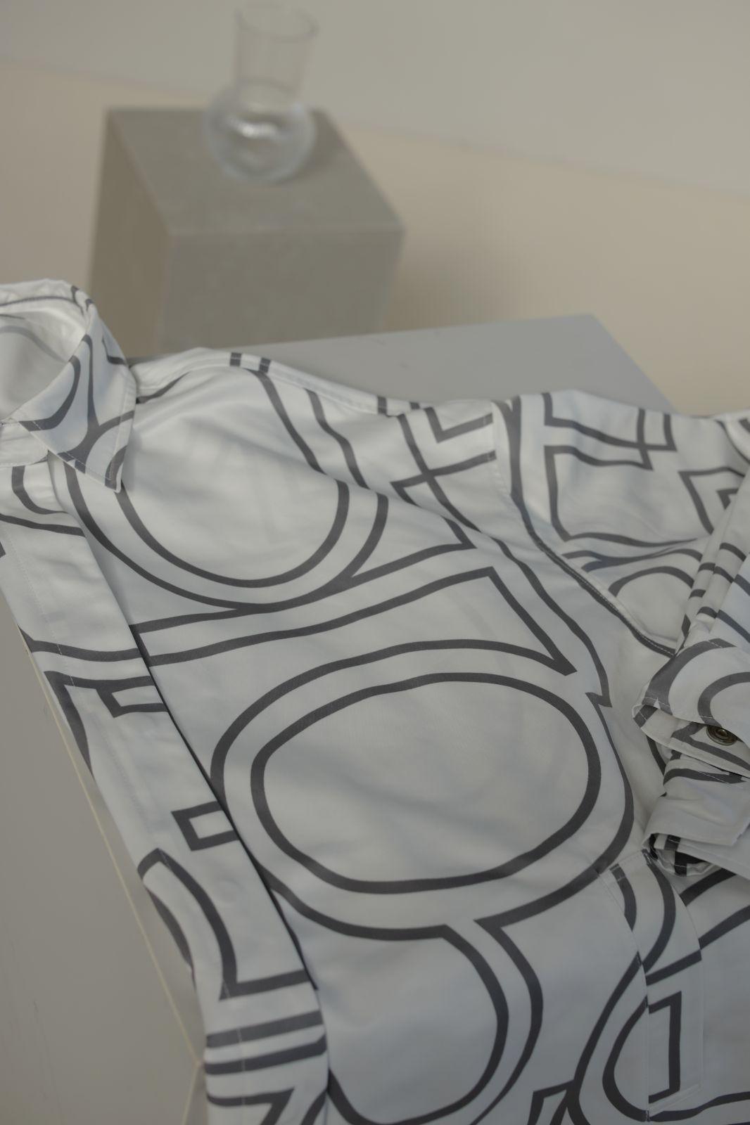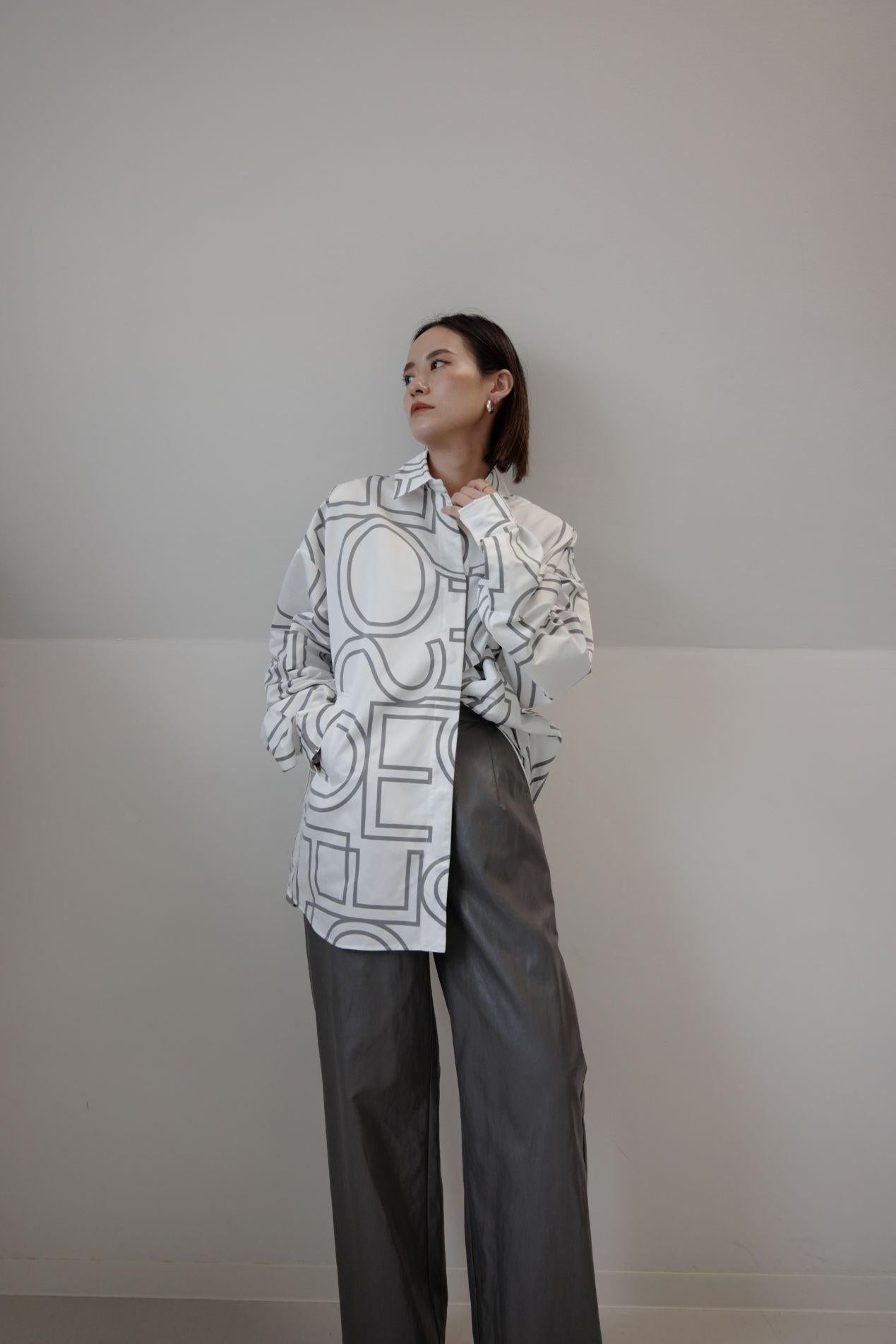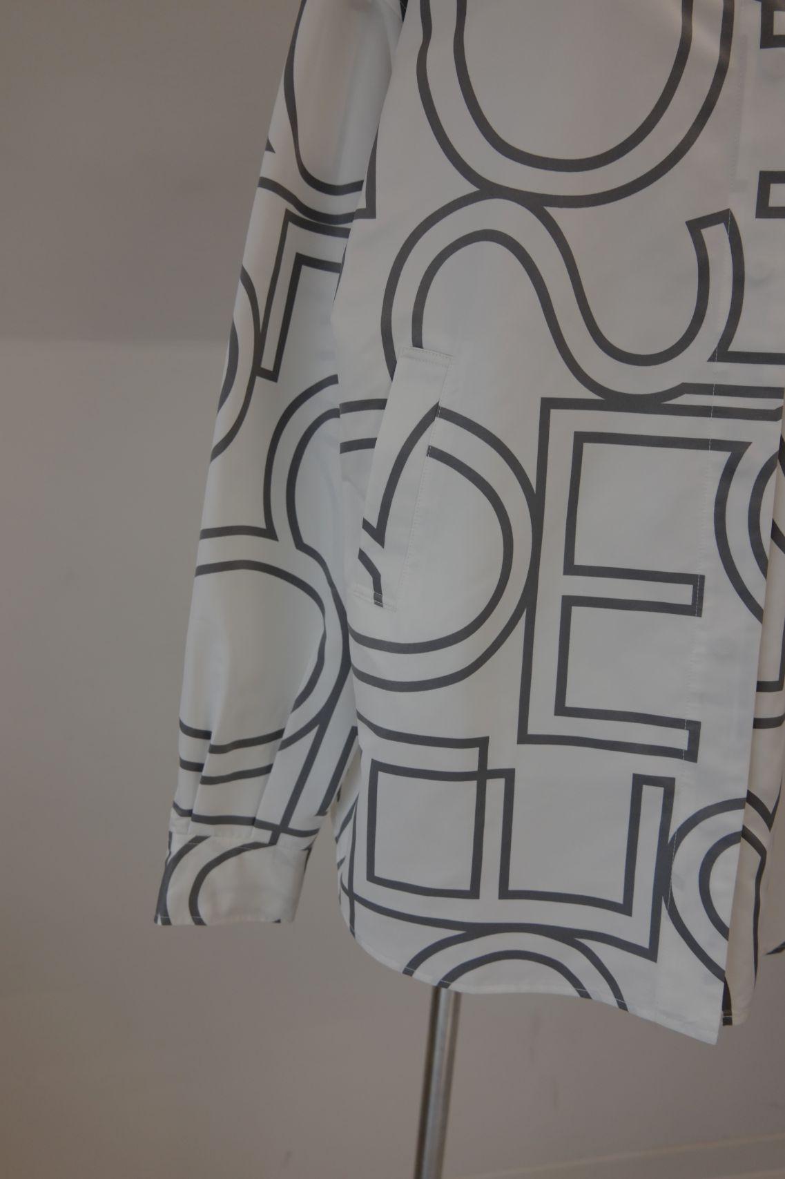 尼龍材質的大廓形襯衫外套,可作為上衣穿,也可在初秋時節作為編織物穿。