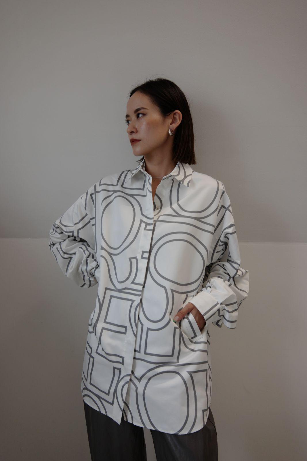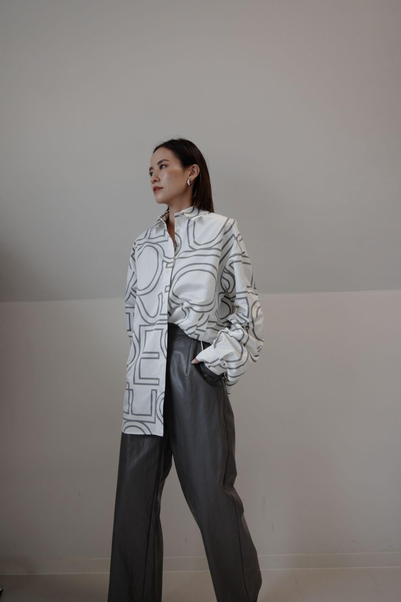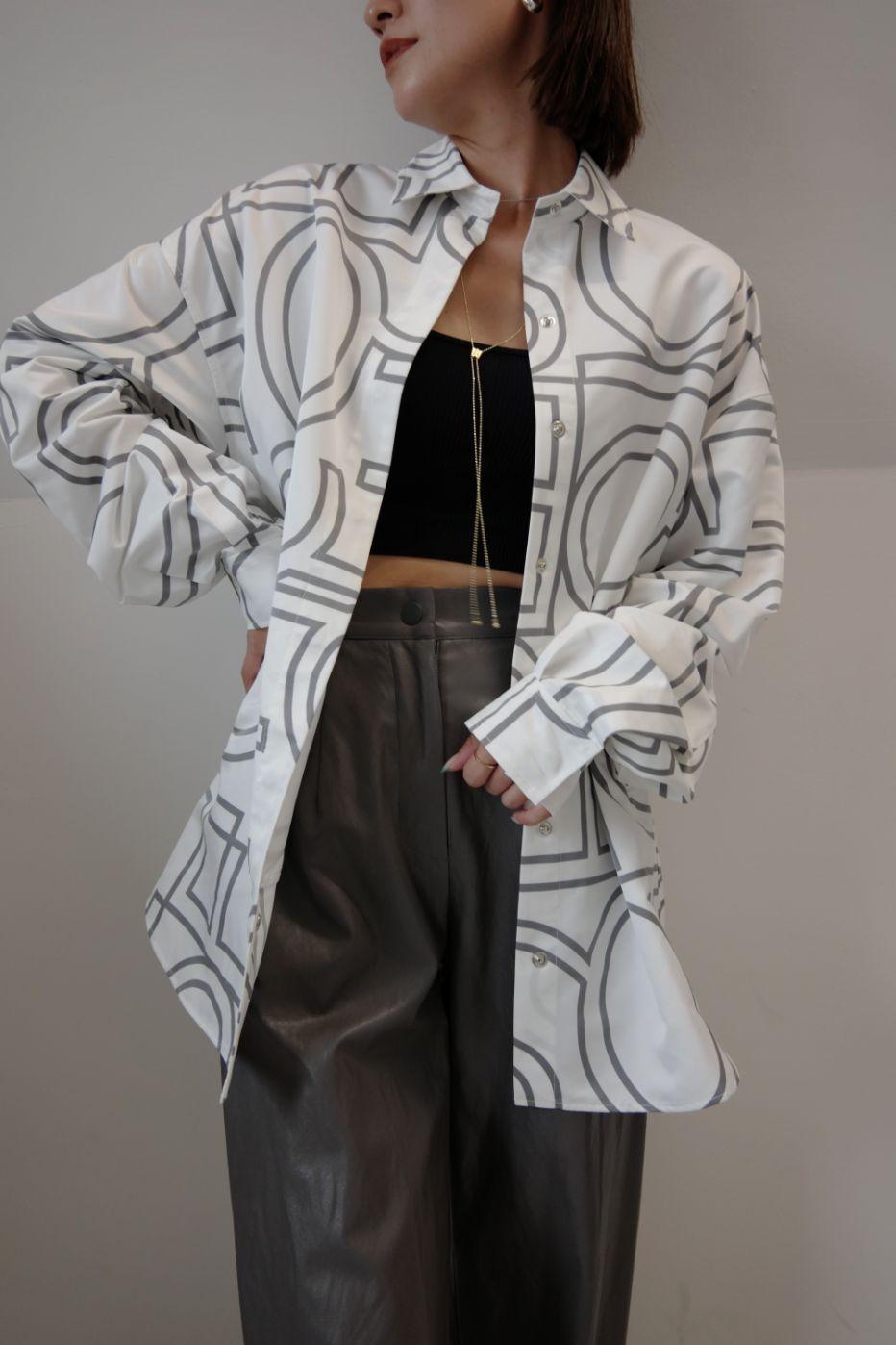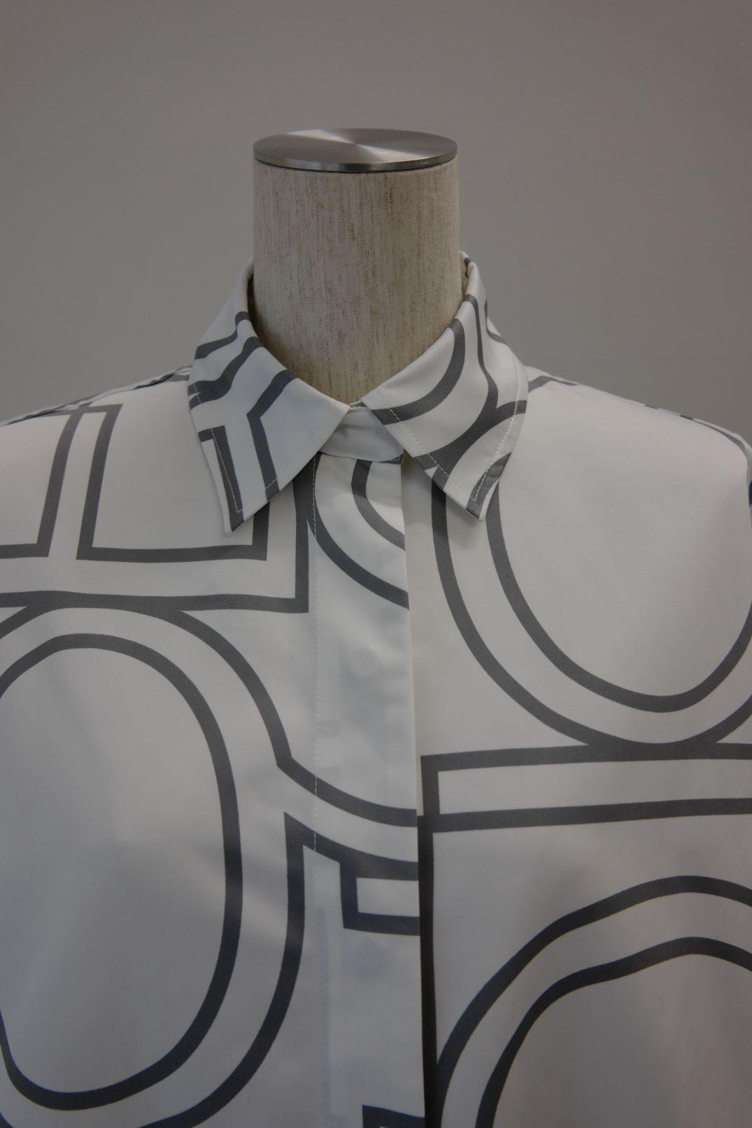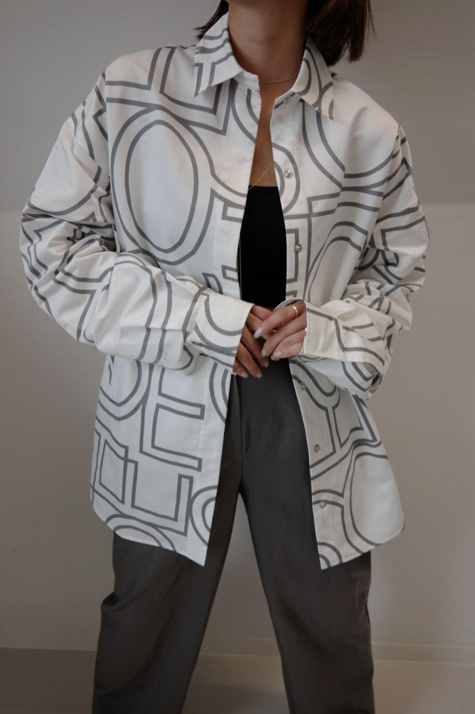 尼龍材質的大廓形襯衫外套,可作為上衣穿,也可在初秋時節作為編織物穿。
