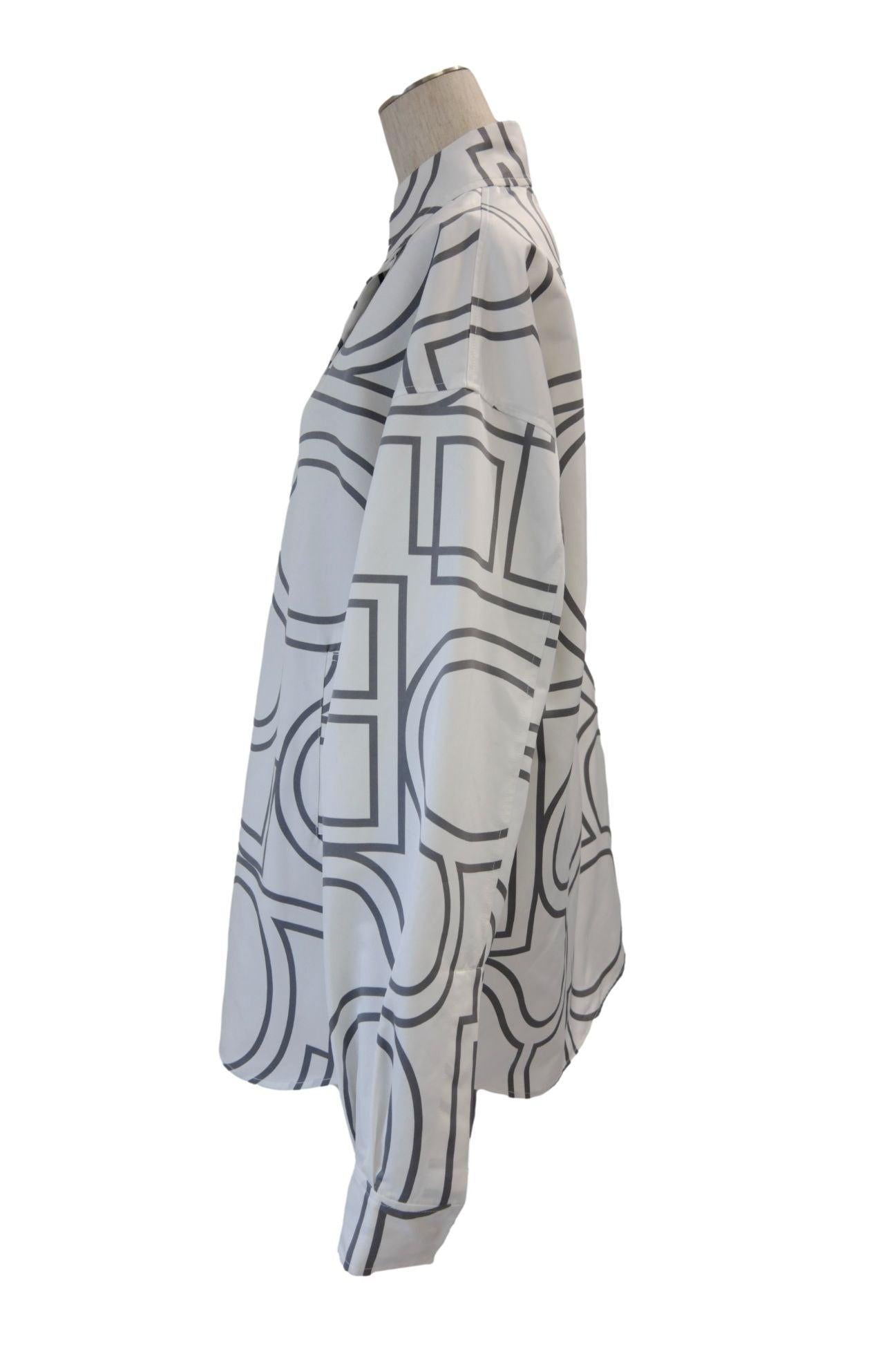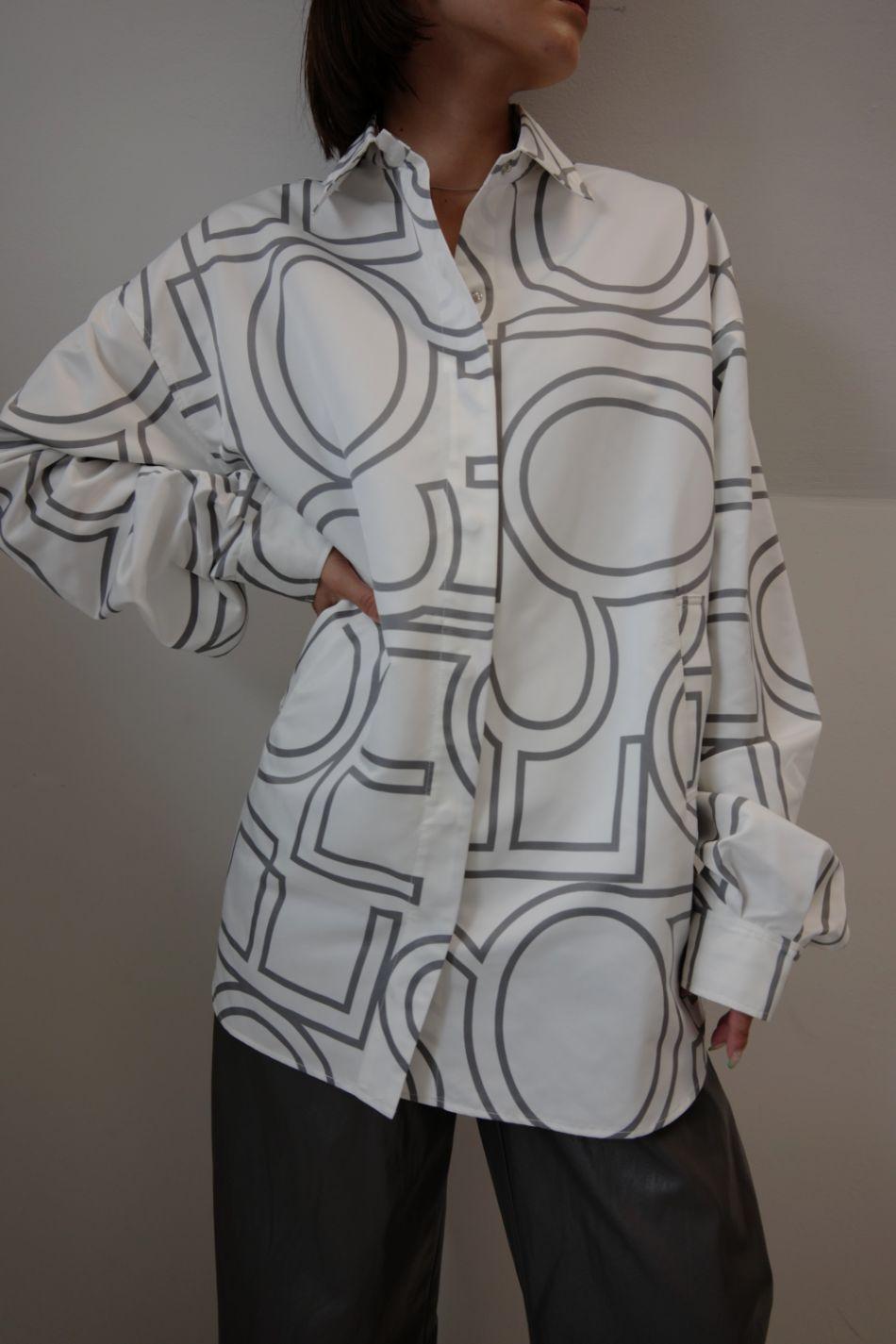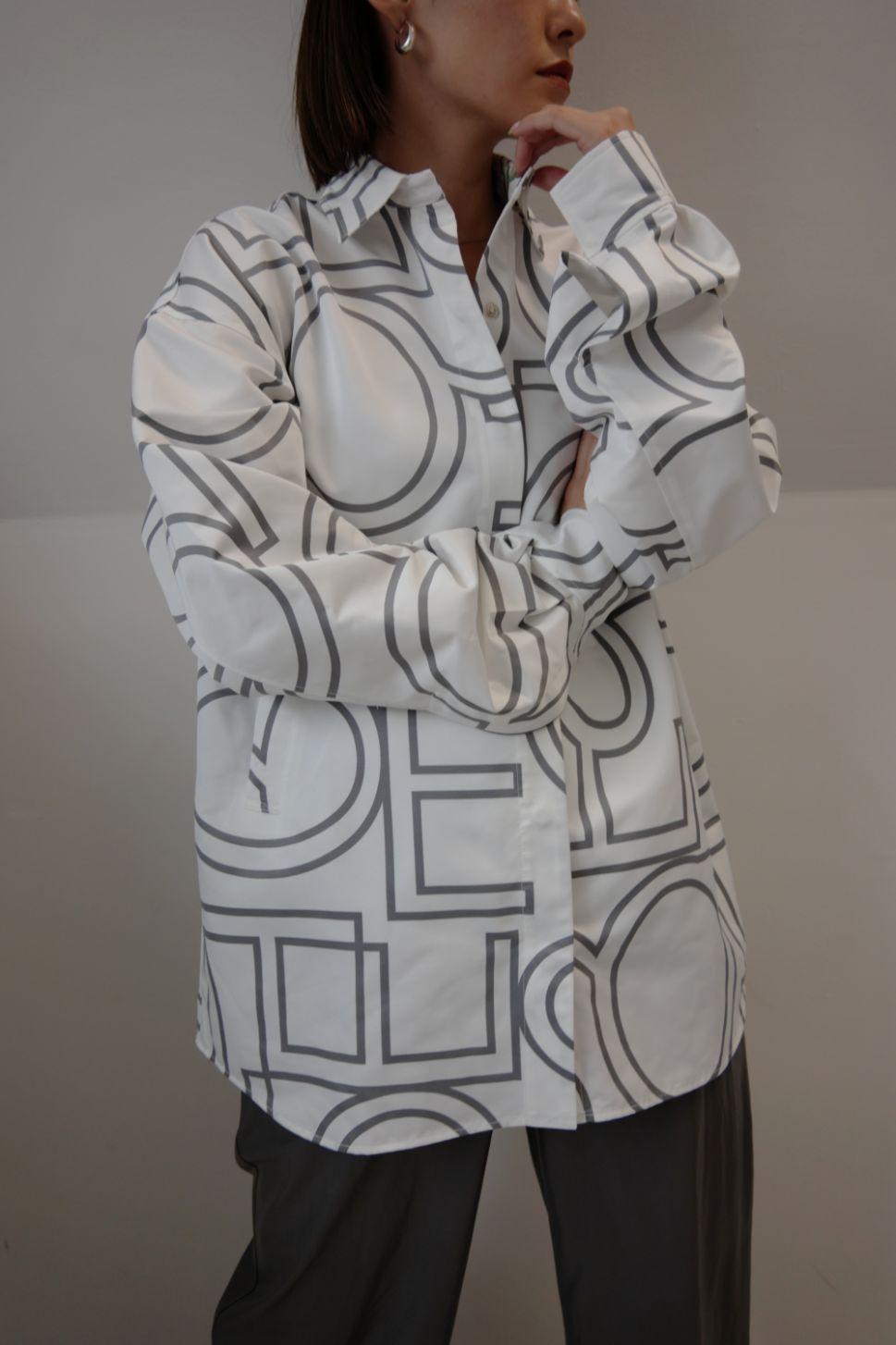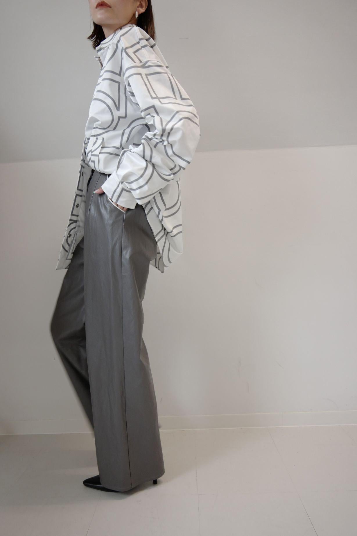 尼龍材質的大廓形襯衫外套,可作為上衣穿,也可在初秋時節作為編織物穿。