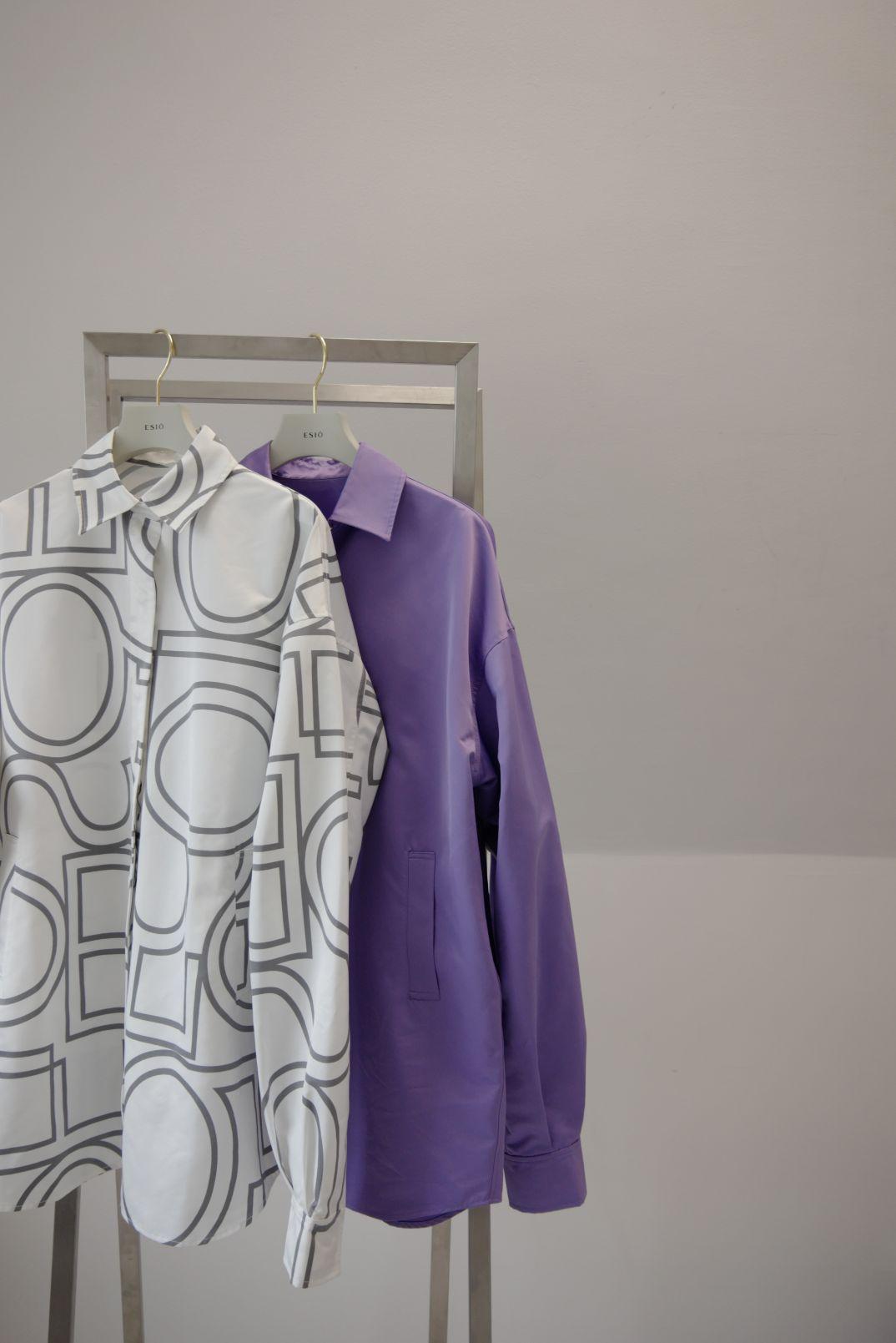 PURPLE 採用本公司的原色染色,色澤細膩。 MIX 是根據 ESIÓ 品牌標誌設計的幾何圖案,既是一件獨特的服裝,又具有強烈的存在感。