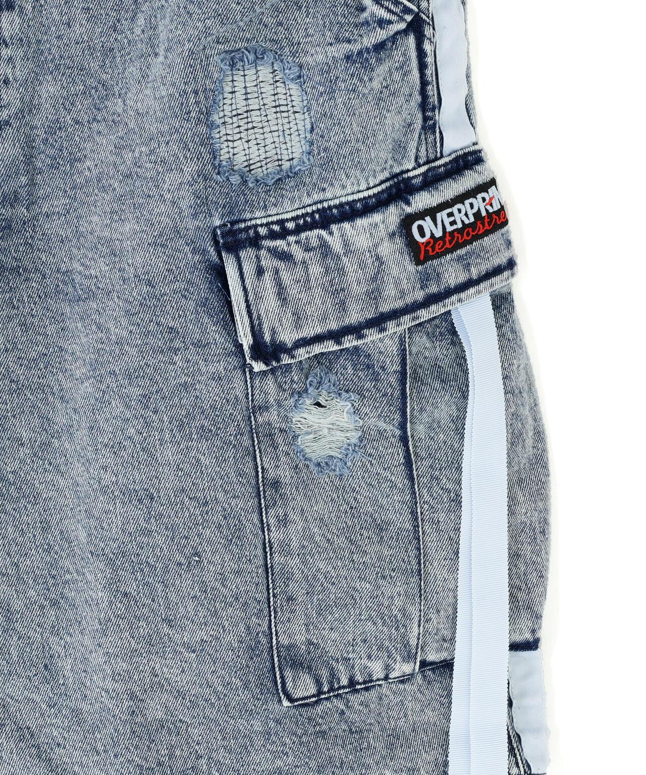 半截褲,飾有套印側帶。側帶的靈感來自止血帶(止血帶)和整個損傷處理,並昇華為現代軍事風格。綁帶的兩端可以打結和排列。兩側的翻蓋口袋功能突出。寬大的廓形寬鬆舒適,男女均可穿著。Overprint】Overprint 是來自日本的時尚品牌,也被稱為 SNS 服裝品牌,因為它在以 Instagram 等社交媒體為主流的 Z 世代中擁有很高的人氣。該品牌使用👍插畫家 Tsumi Furutou 和 ZERO ZERO HERO 的插圖。