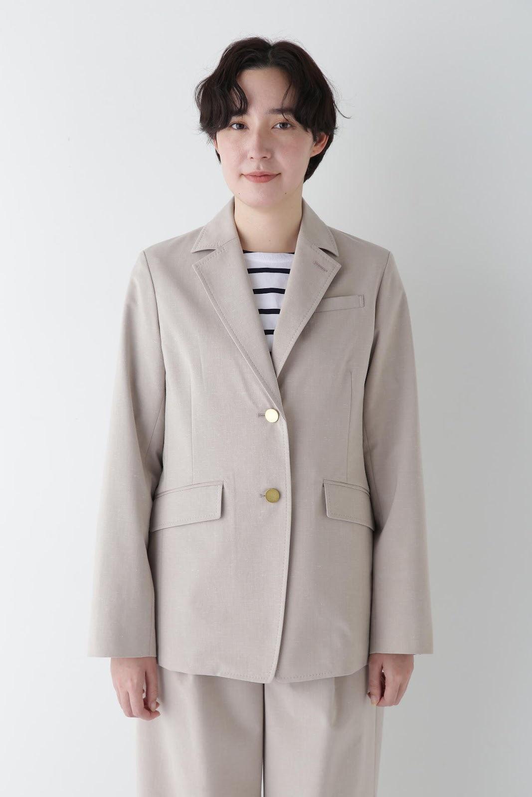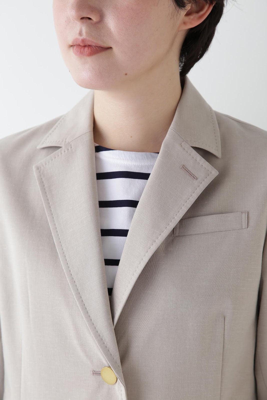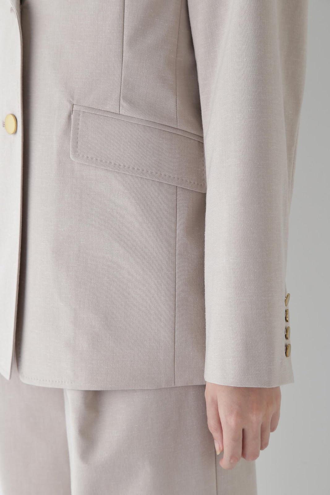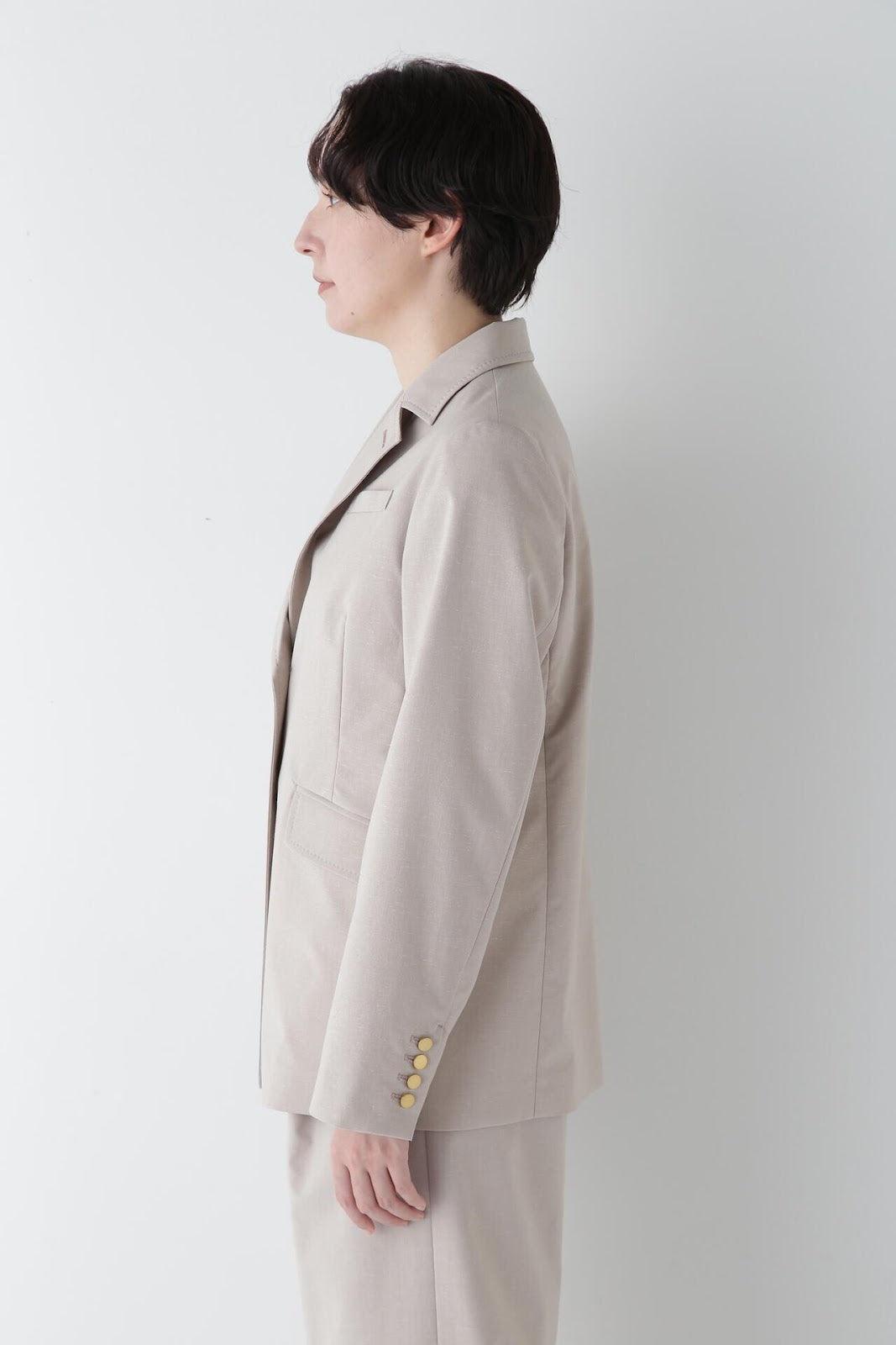 P絲麻拼棉平紋修身西裝外套