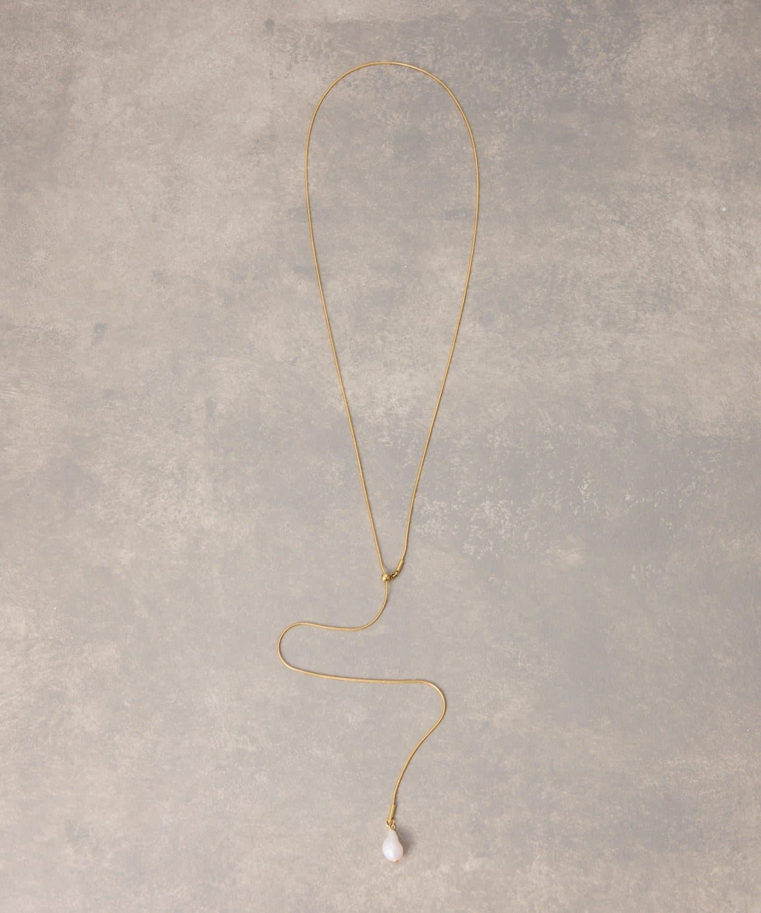 引人注目的 Y 形項鍊,配有不鏽鋼鏈條和水滴形頂端。