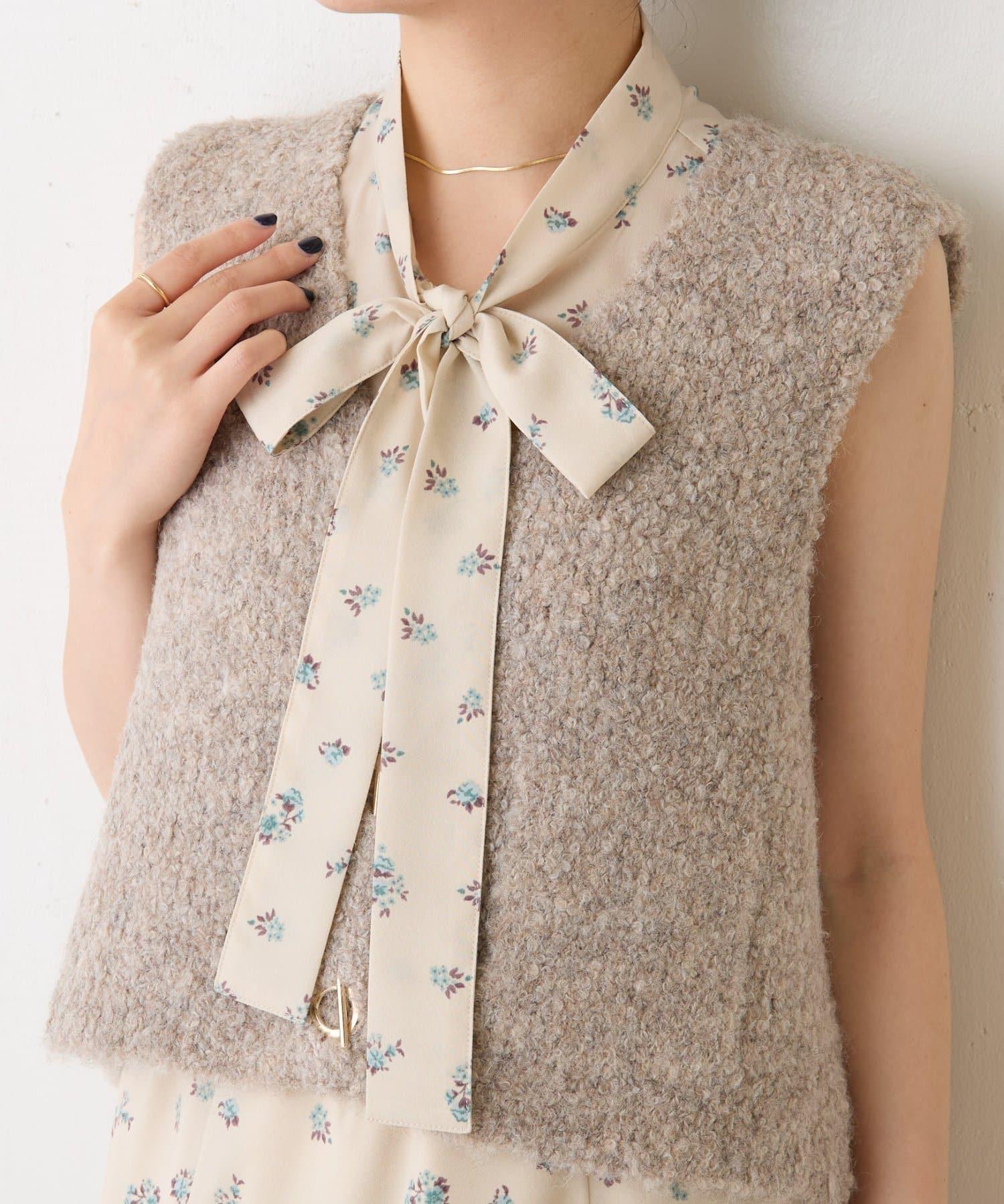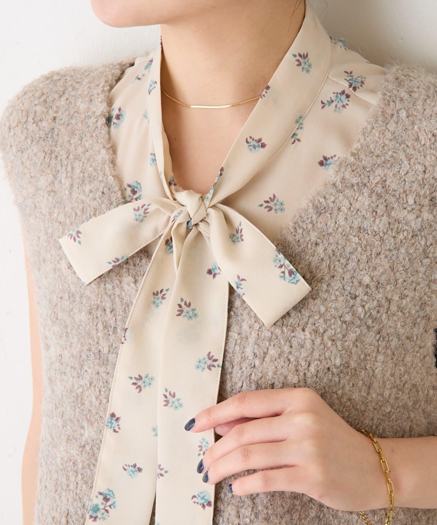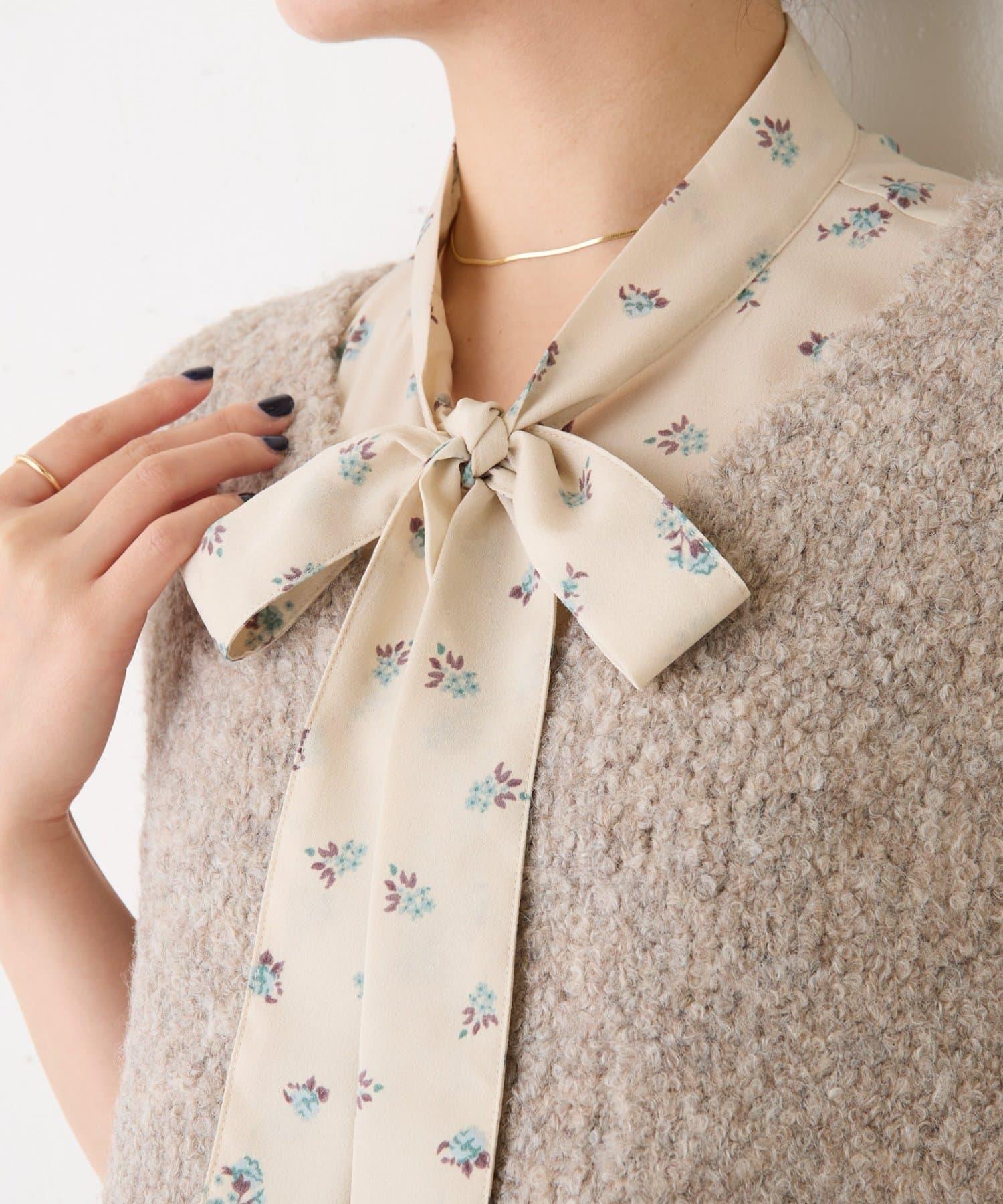 【PAPILLONNER/パピヨネ】小花圖案可拆卸蝴蝶結領