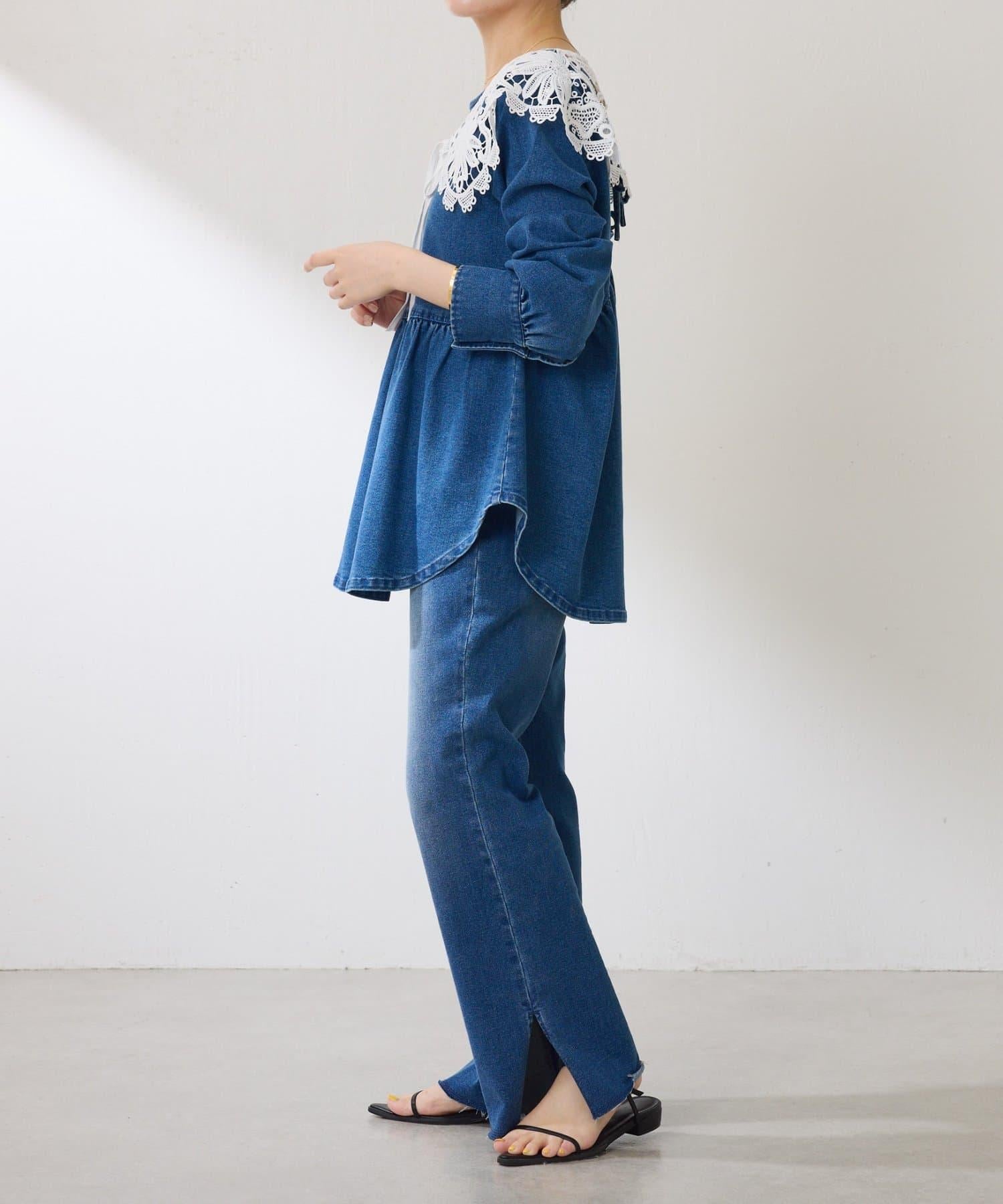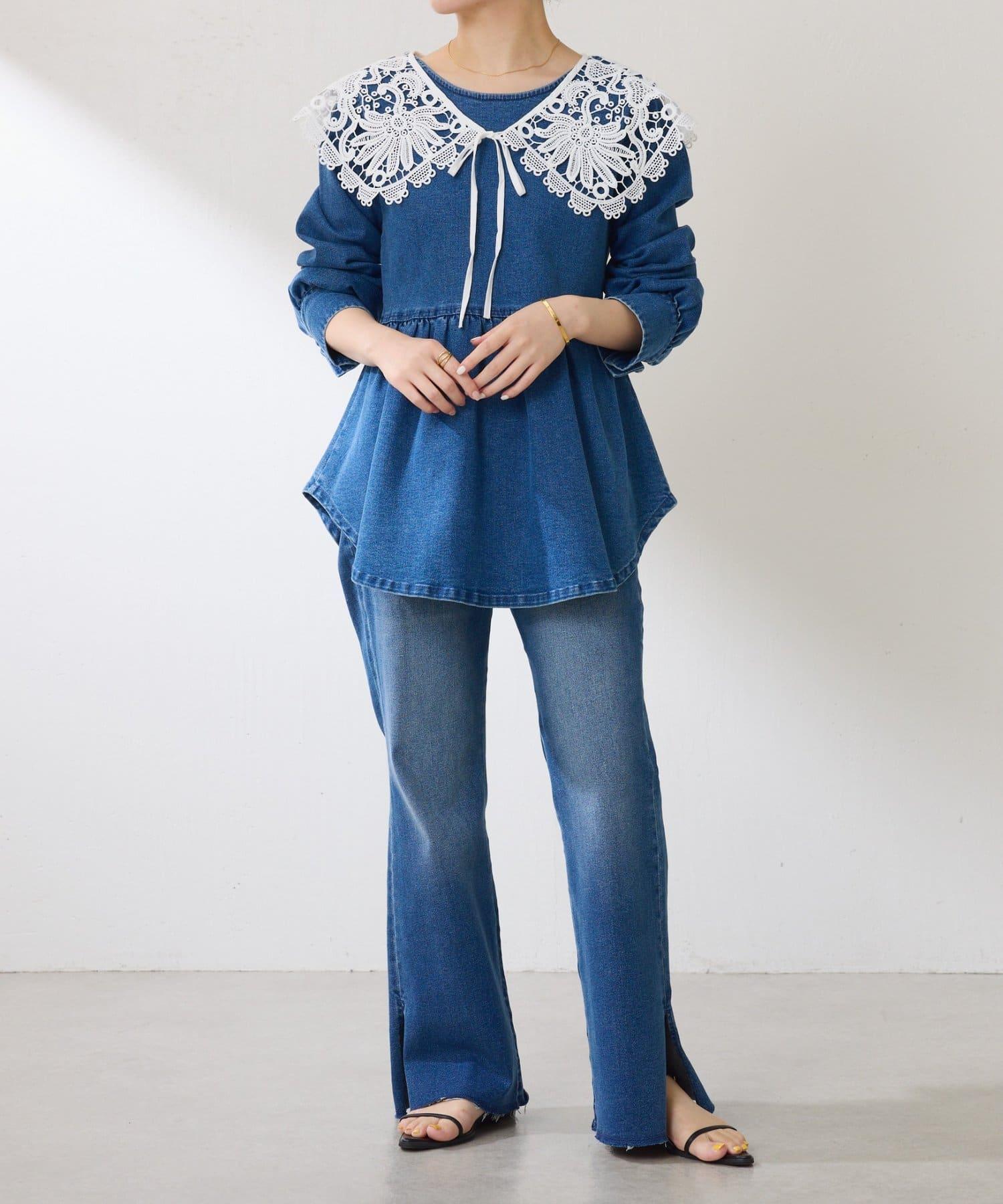 蕾絲還能很好地包裹腰部,讓蕾絲從上衣下襬露出來。