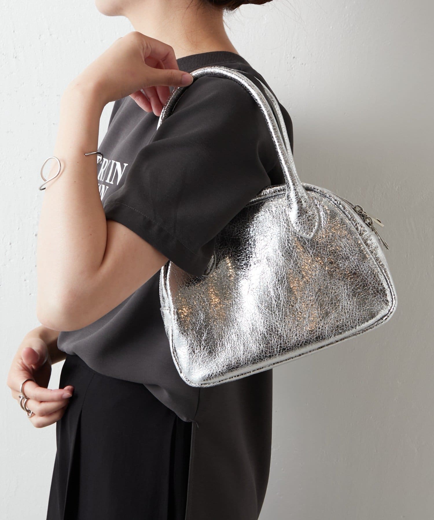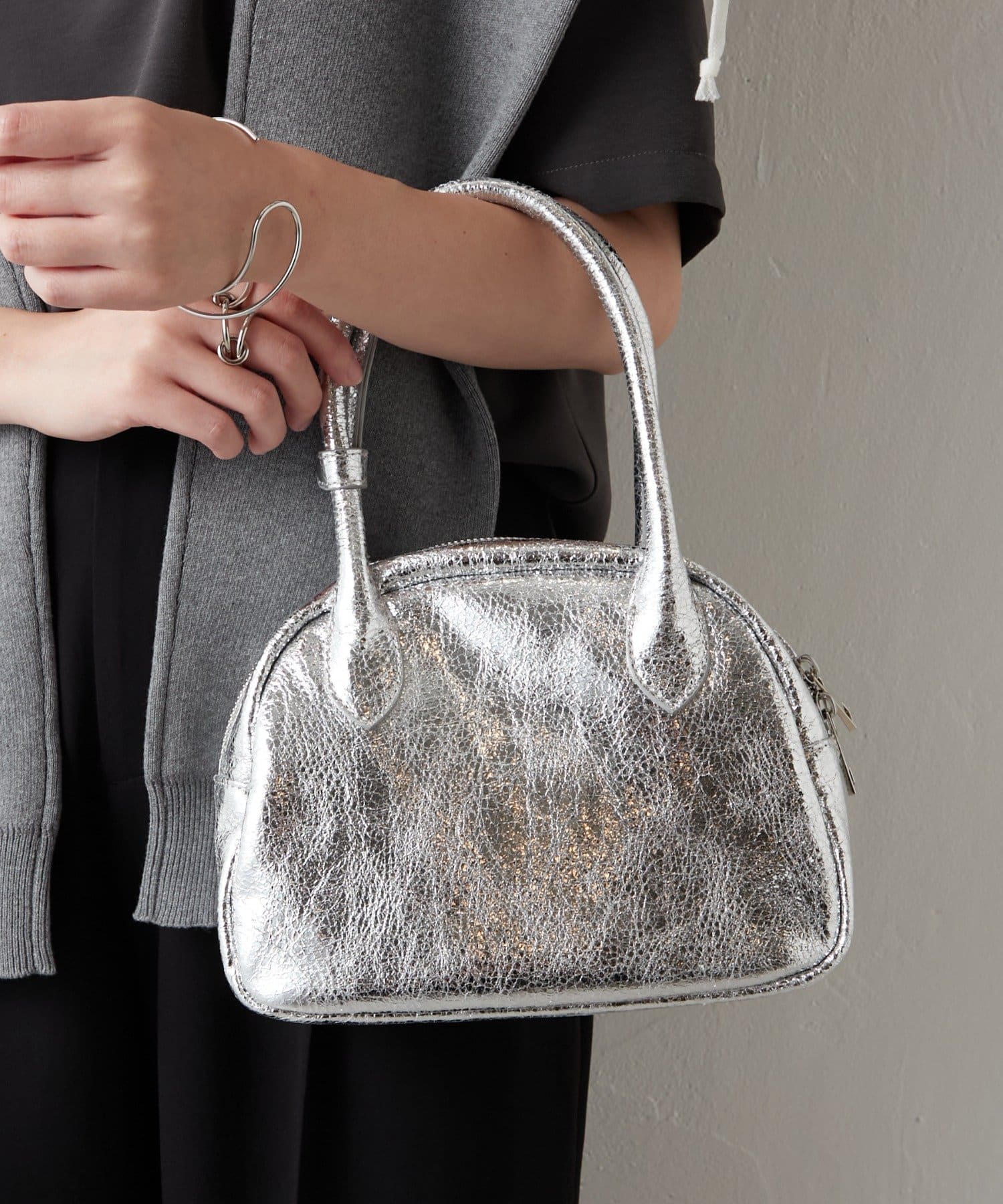 這款手袋設計簡約,但閃亮的銀色和絨面革材質提升了本季的格調,使您的著裝更加協調。