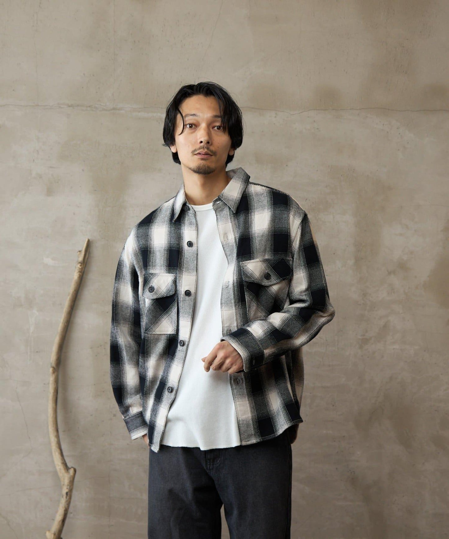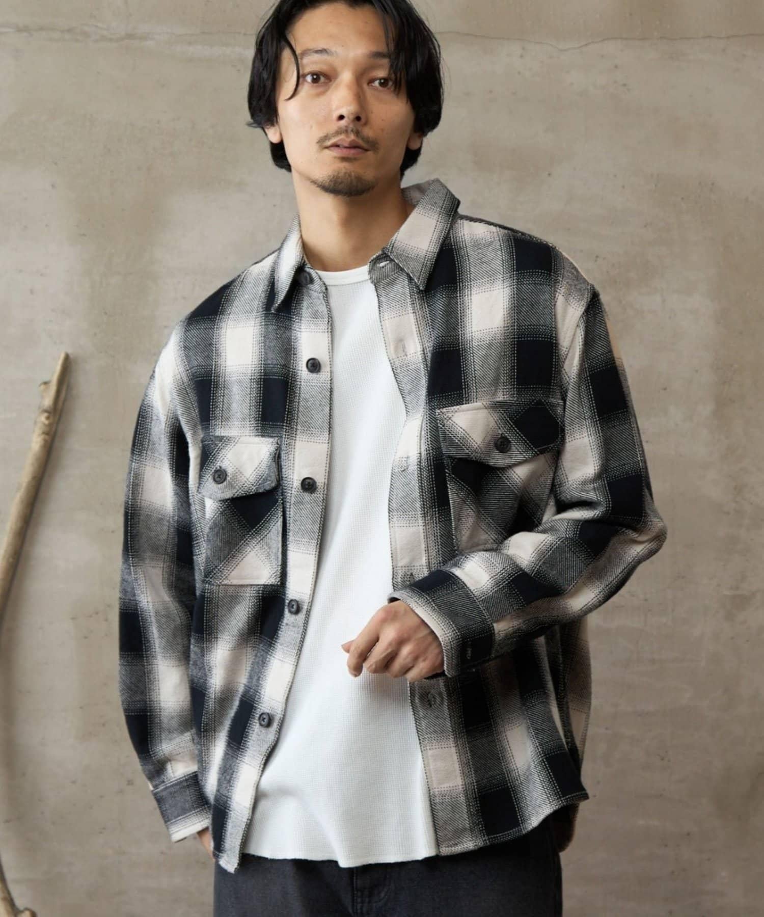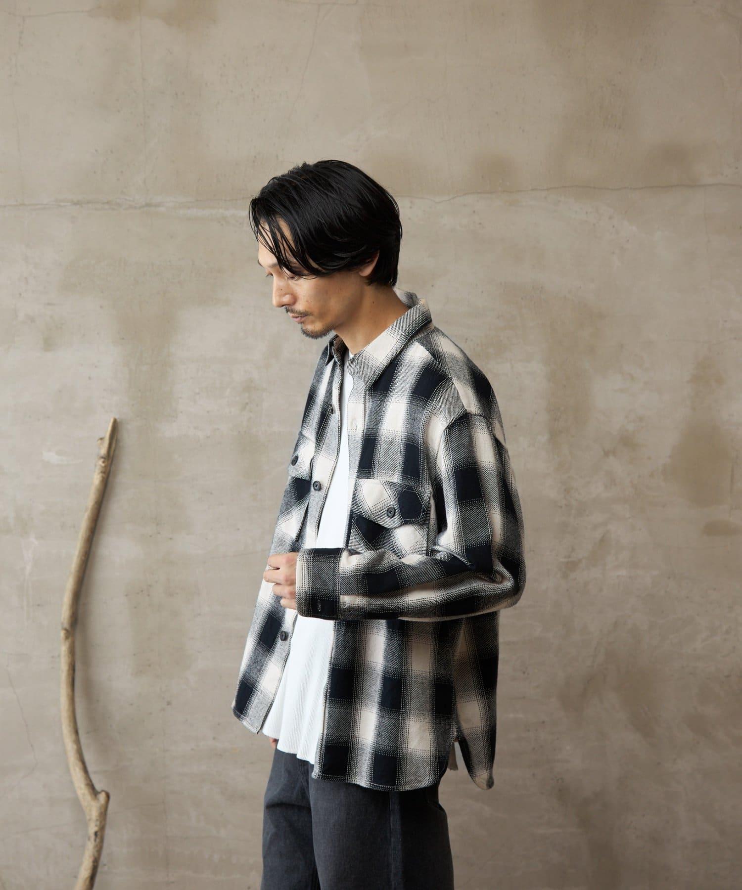【paradigm】先染起毛漸變格子法蘭絨襯衫