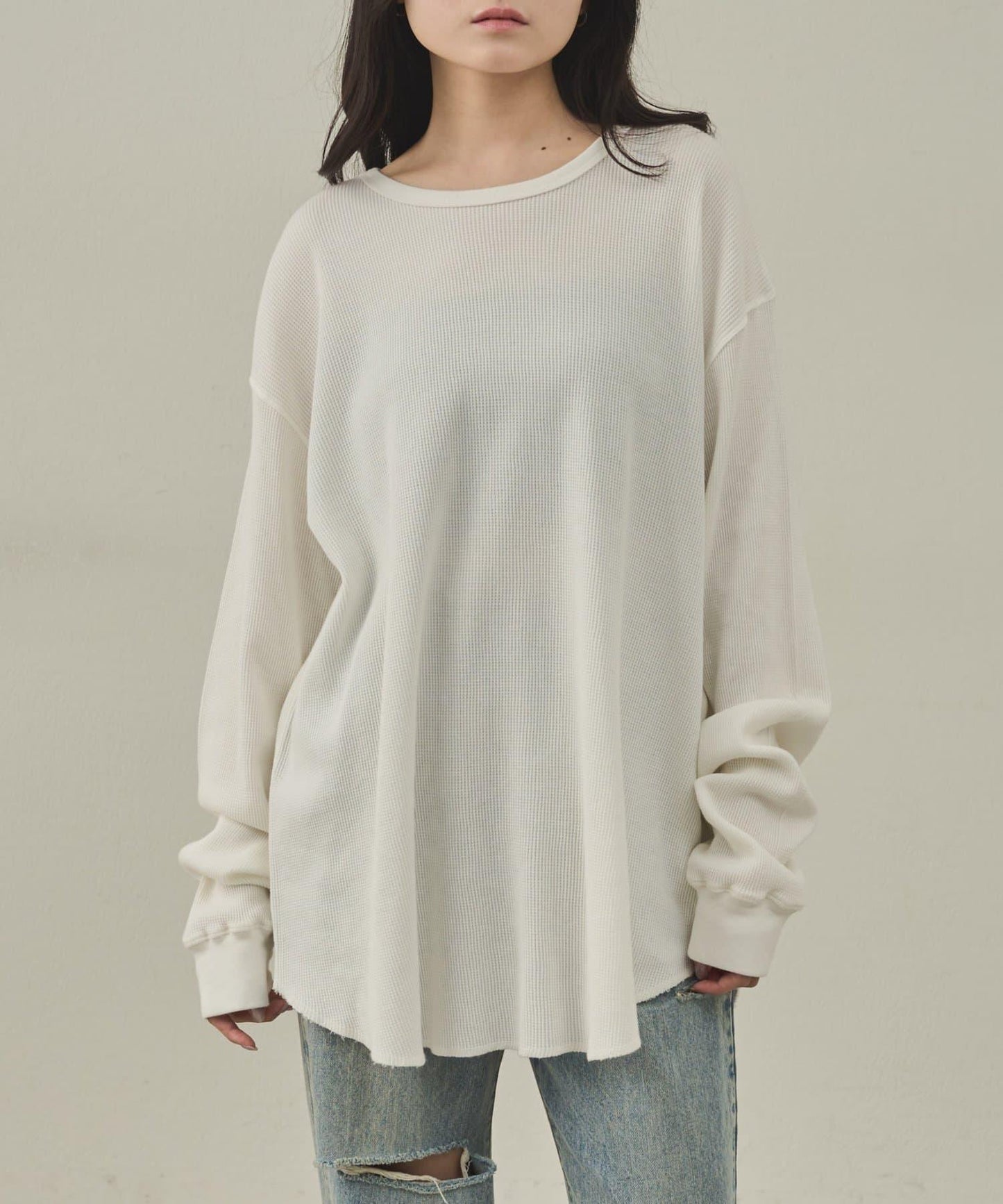 簡潔的圓領設計顯出臉部輪廓,便於作為內搭或單穿。